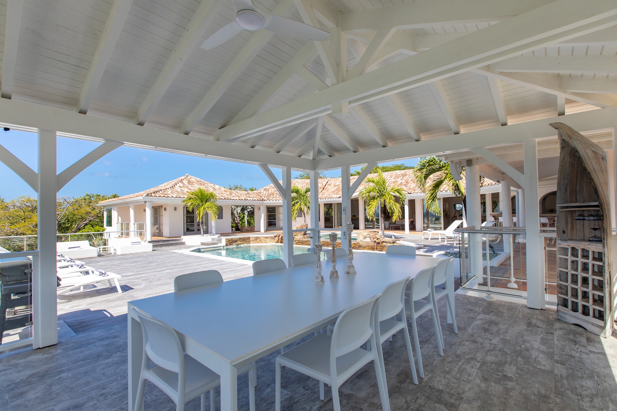 Whether watching vibrant sunsets, lounging by the pool, or dining in the gazebo, Villa Belle Fontaine provides a perfect setting for a memorable vacation in St. Martin. The villa is available as a four or five-bedroom option, offering flexibility for various group sizes and preferences.