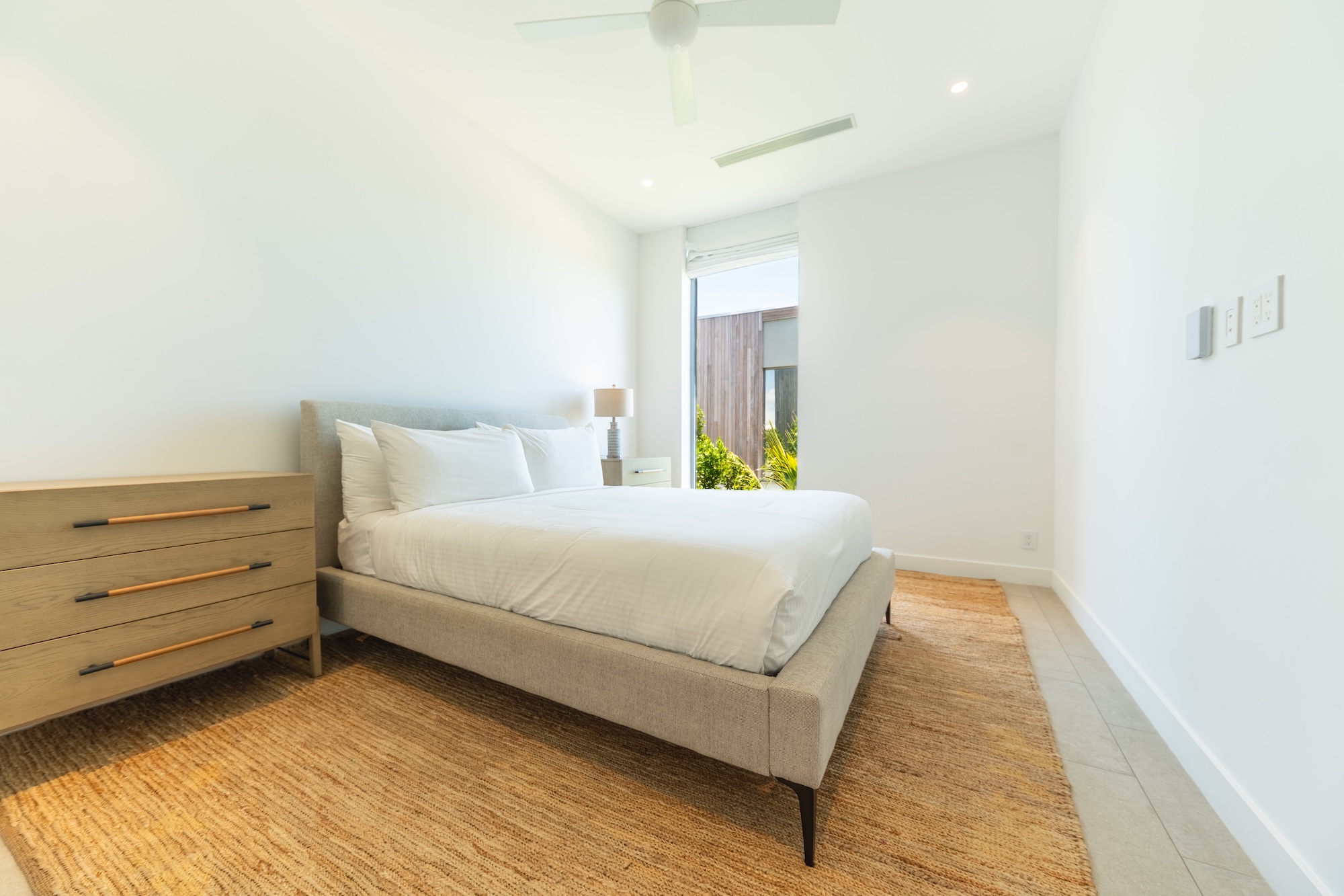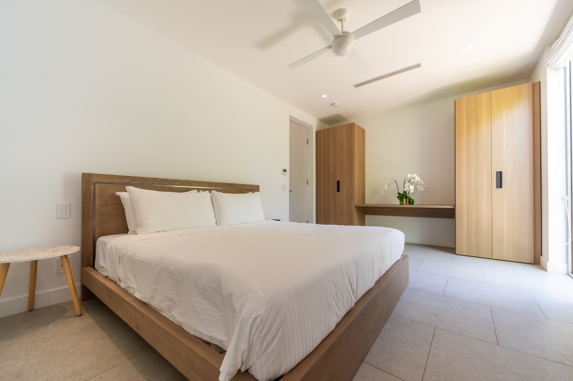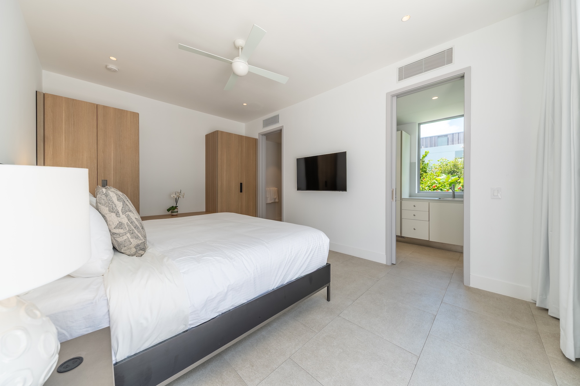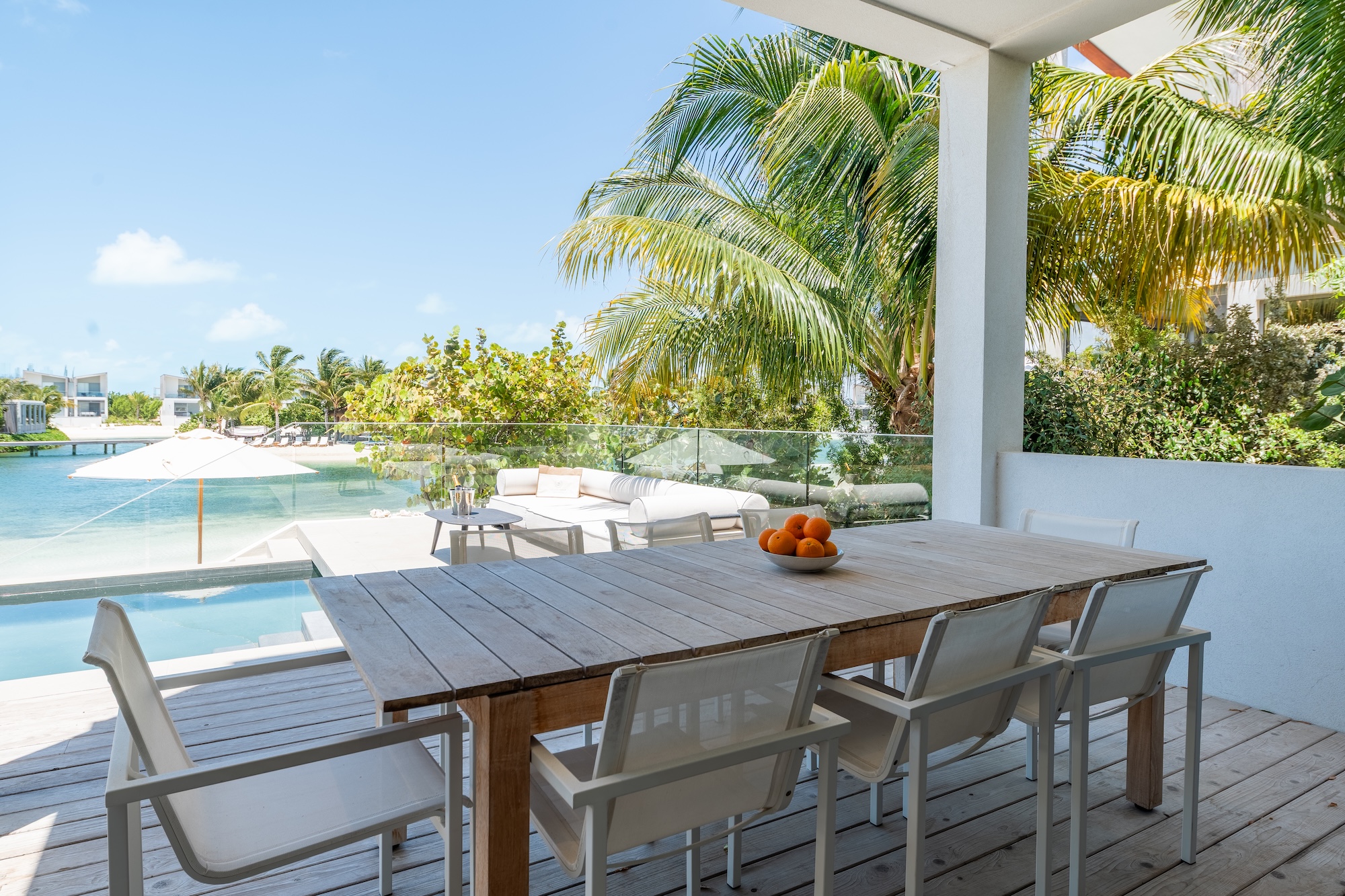 The six-bedroom Lagoon Villa boasts breathtaking views, a private pool, and six king bedrooms, including a standalone guesthouse. With 5.5 bathrooms, the villa offers seamless indoor–outdoor living, a fully equipped kitchen, and direct backyard access to the lagoon with complimentary non-motorized watersports. The standalone studio-style guesthouse includes a king bed, a private ensuite with a shower, and a convenient kitchenette.
