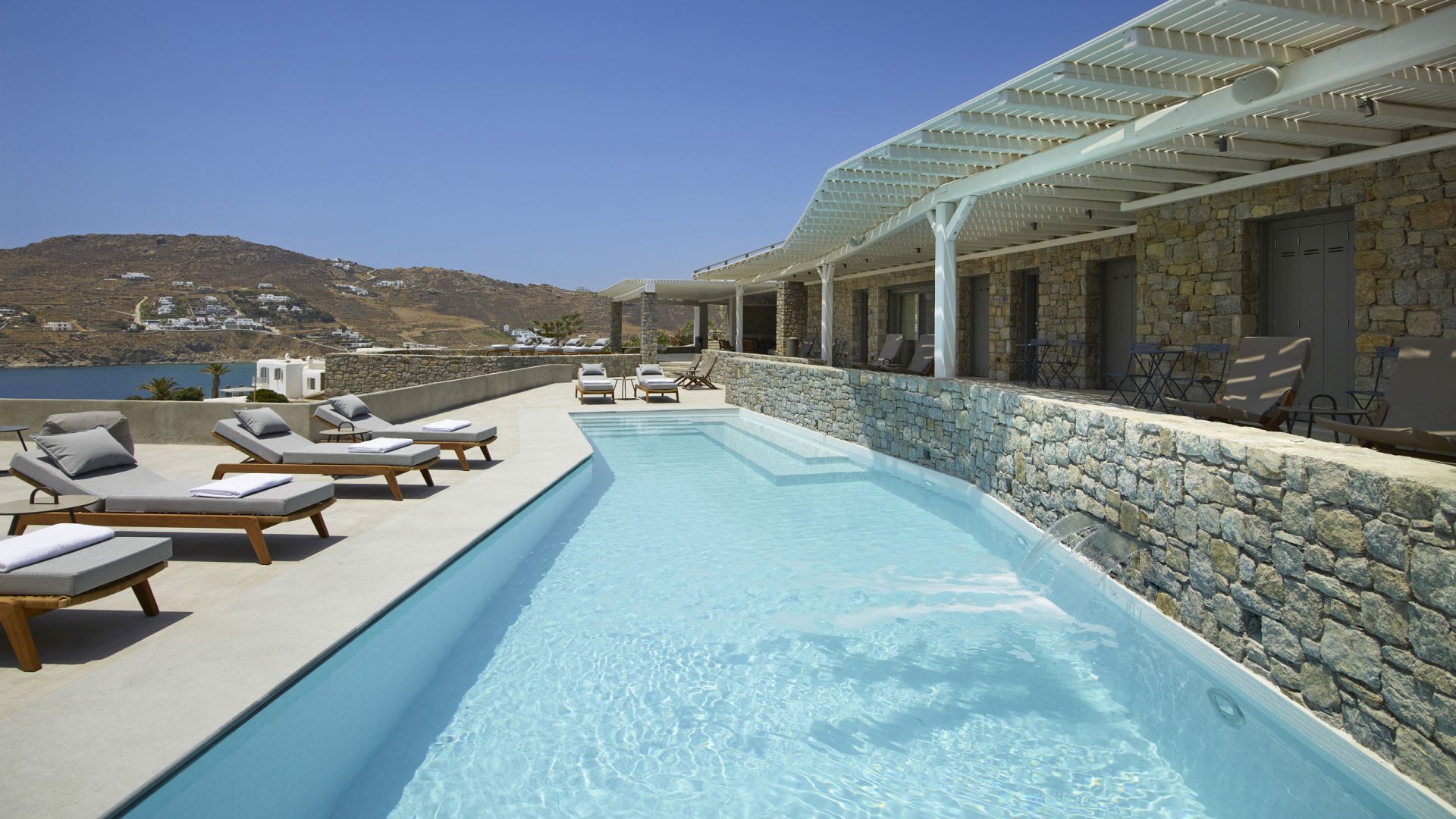 Ideal for accommodating large groups seeking comfort near Mykonos’s finest beaches, Aegean Sapphire also serves as an excellent venue for significant events or celebrations when rented alongside the neighboring villas, offering exceptional combined capacity.