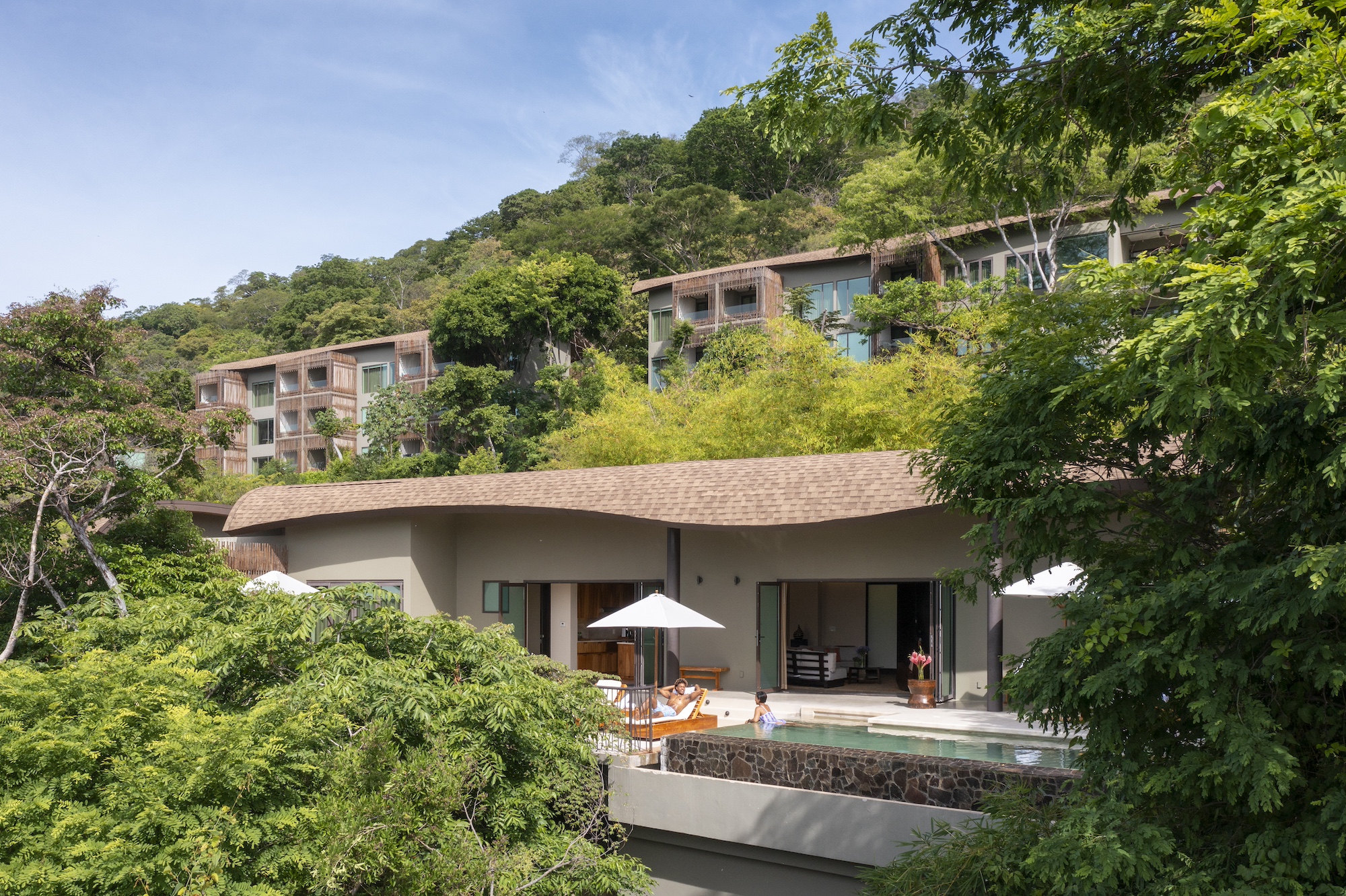 This stunning residence, featuring an oversized terrace and private pool, offers a serene retreat surrounded by lush tropical forest.