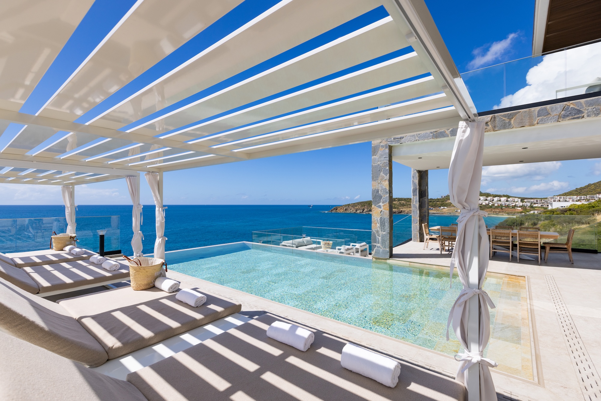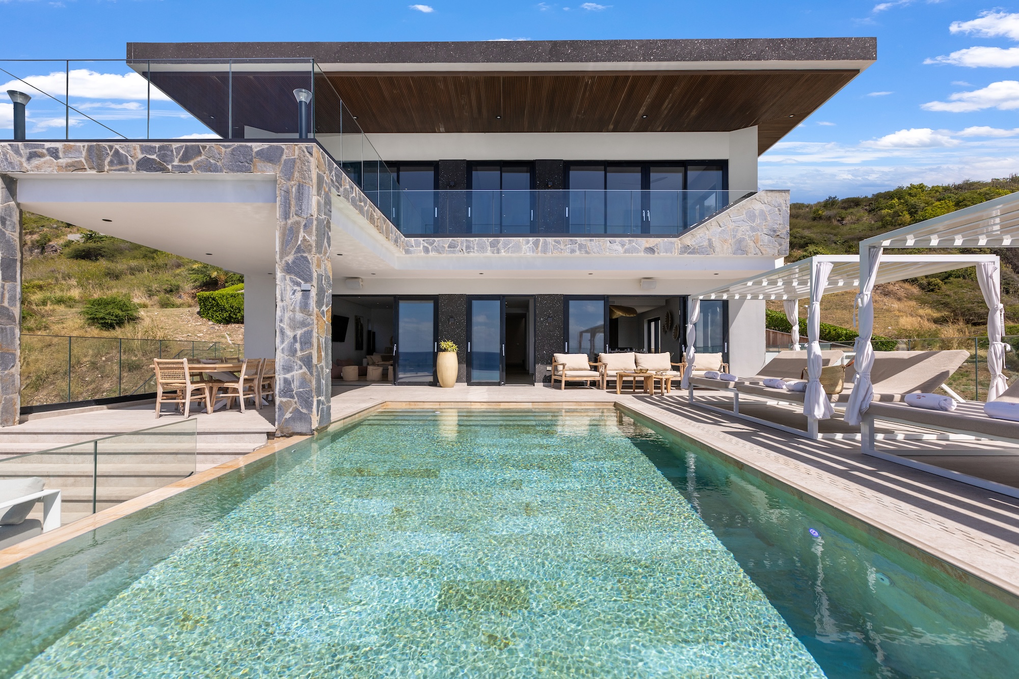 Nestled harmoniously alongside its sister property, Villa Aqua Vista stands as a modern masterpiece, seamlessly blending contemporary elegance with island luxury. This splendid 6-bedroom villa, located in the tranquil Indigo Bay of Sint Maarten, offers an unforgettable Caribbean experience just steps away from its counterpart, Villa Aqua Dream.