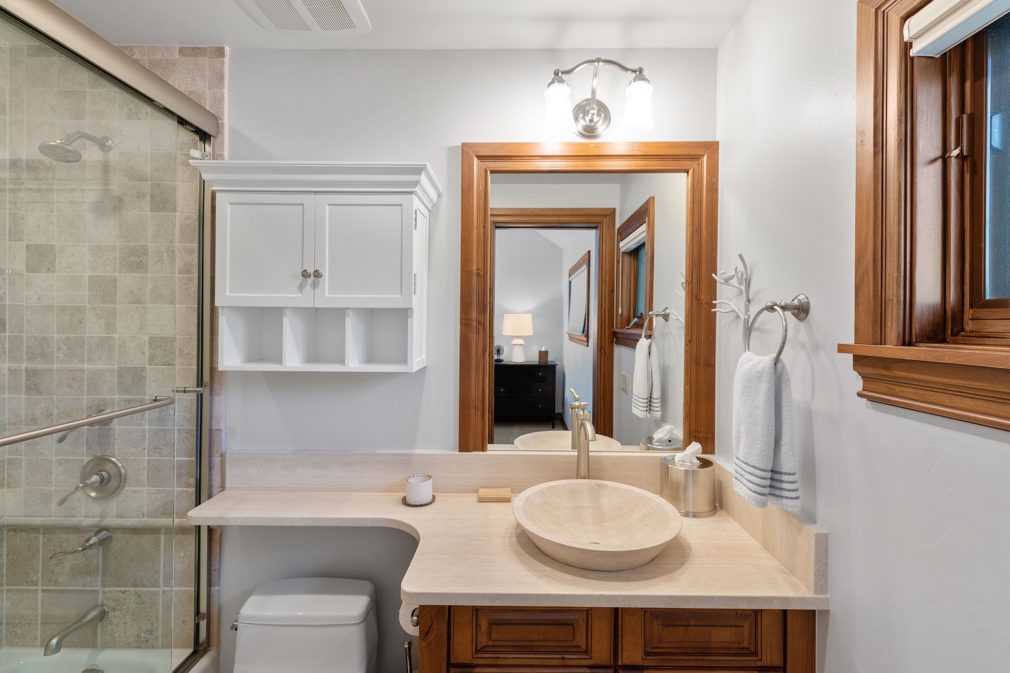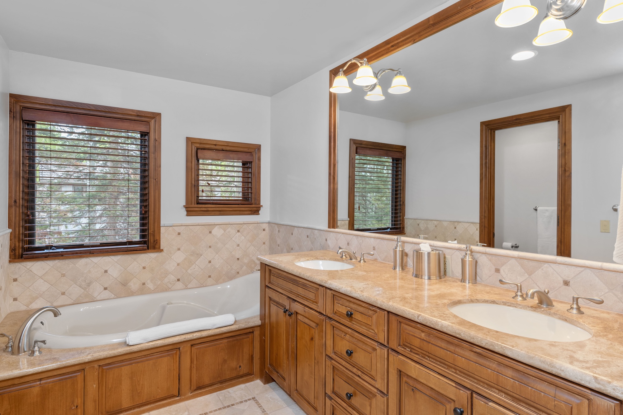 • Jack-and-Jill en-suite with bathtub, shower, and double vanity.