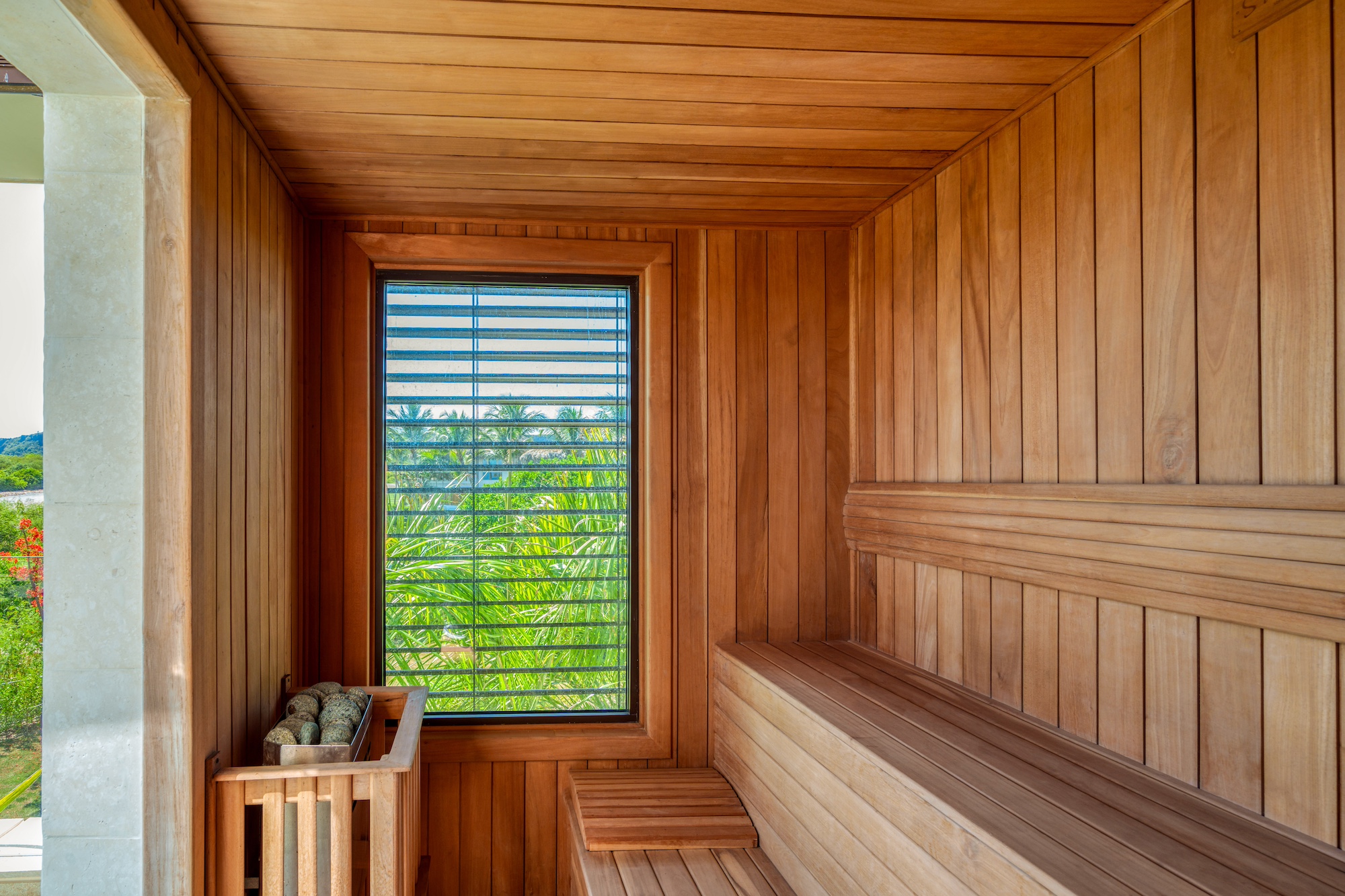 For wellness enthusiasts, the villa includes a dedicated spa area featuring a sauna, steam room, private heated jacuzzi, and a fully-equipped fitness center. Entertainment abounds with a pool table room and spacious family lounges equipped with large screens, perfect for gathering with loved ones.
