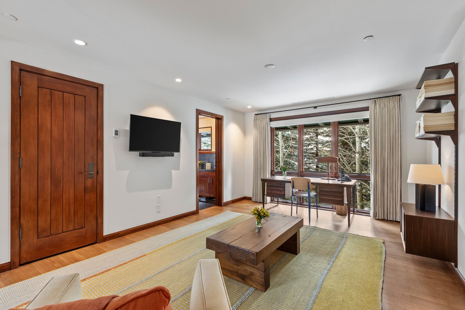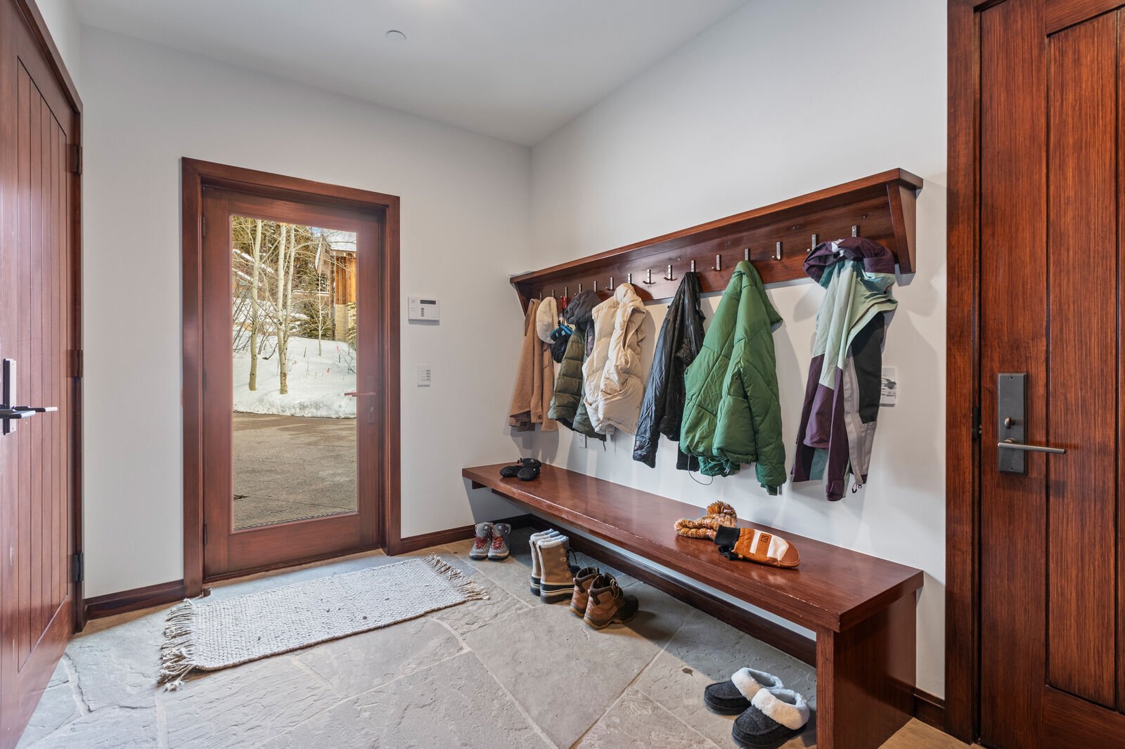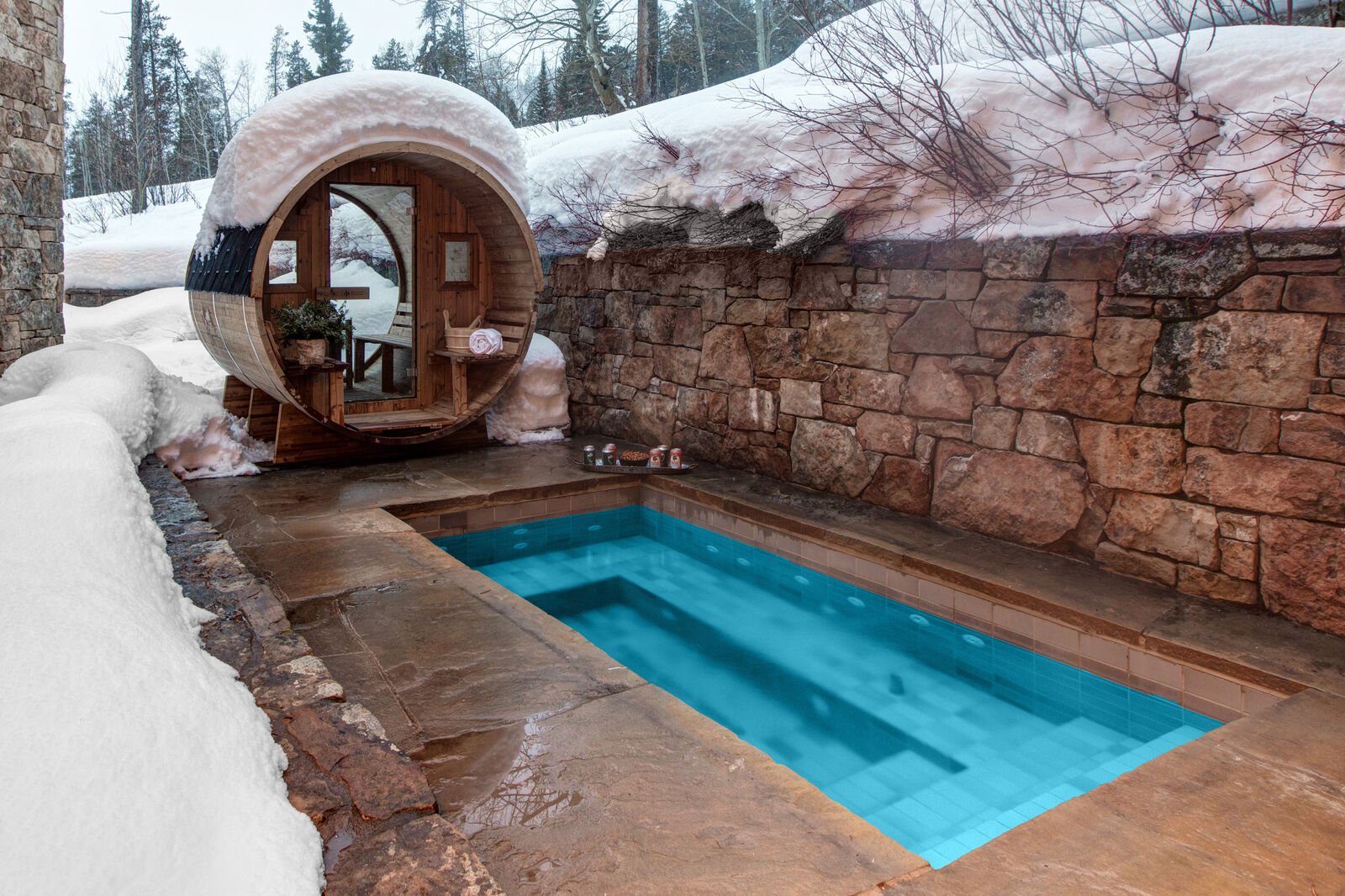 Every corner of this home is thoughtfully designed to promote ultimate relaxation. Remote workers will appreciate the dedicated home office, complete with panoramic views that inspire productivity and peace. For those venturing into the great outdoors, a well-equipped gear room with ski racks and boot dryers keeps all your adventure essentials organized. Step outside and discover a spa-like outdoor oasis—complete with a private pool, sauna, and hot tub—perfect for soothing tired muscles after a day on the slopes or trails.