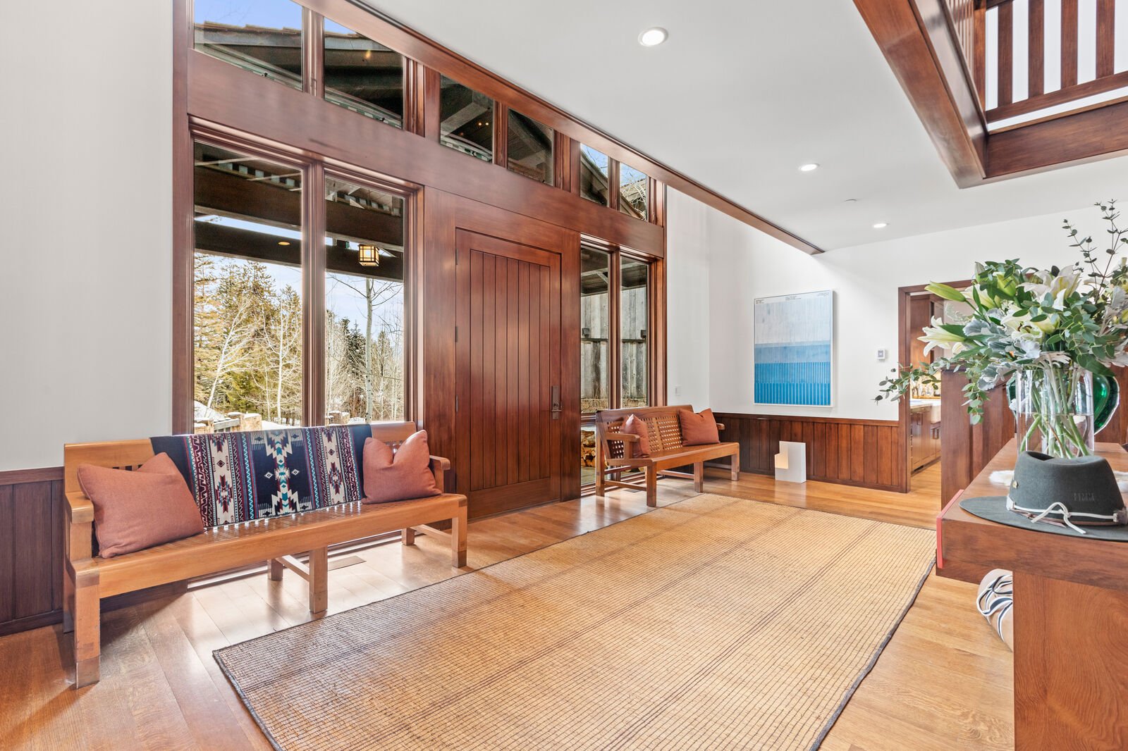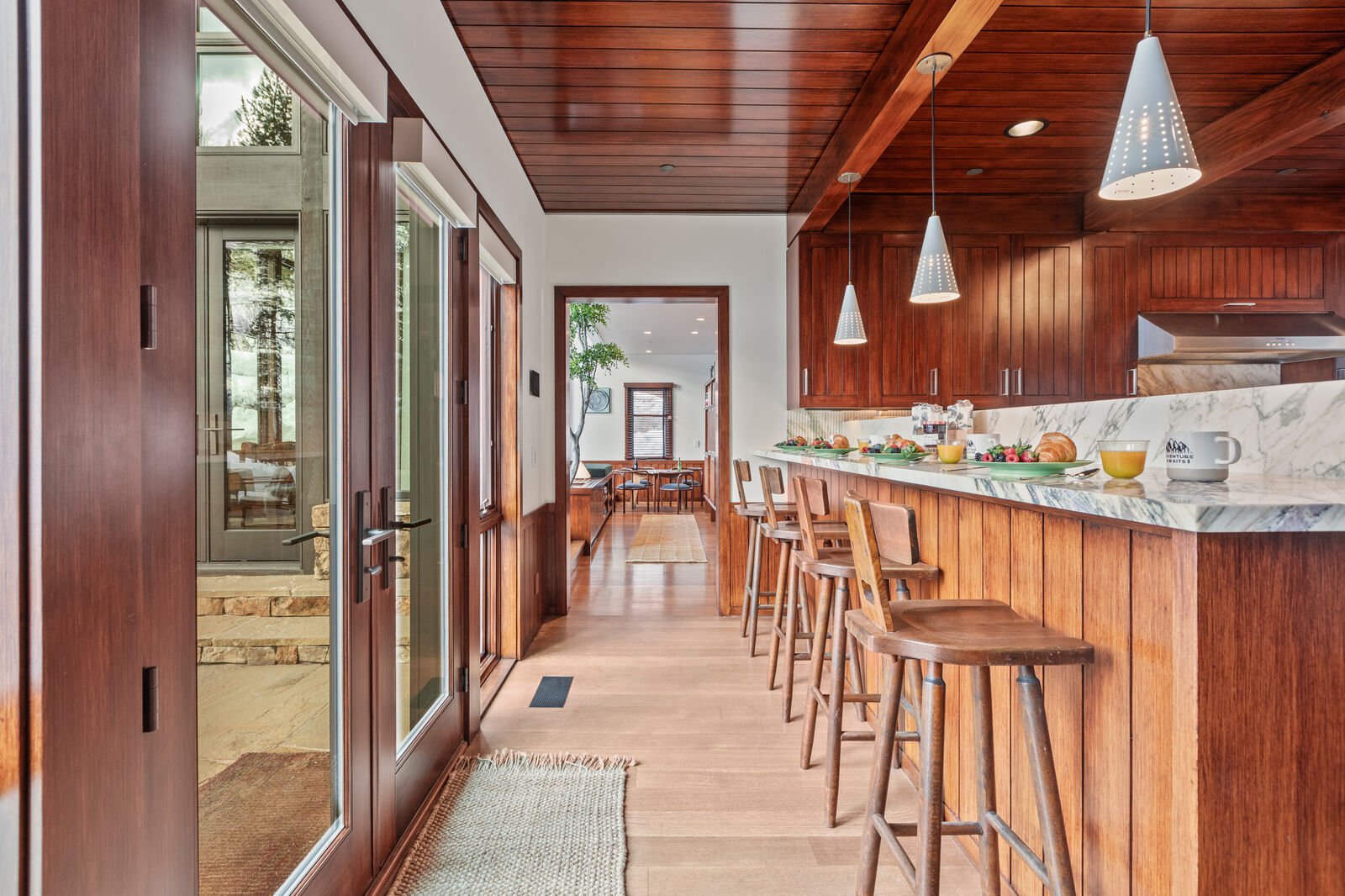 Designed by a celebrated architect and enhanced with elegant modern touches, this Mountain Contemporary residence features a seamless and thoughtful layout that delivers both style and functionality. The expansive open-concept living area is tailor-made for entertaining, showcasing a soaring fireplace, floor-to-ceiling windows framing breathtaking mountain vistas, and plush, inviting seating that encourages relaxed gatherings. The state-of-the-art gourmet kitchen is a dream come true for culinary enthusiasts, outfitted with professional-grade appliances and ample space for preparing memorable meals. Whether it’s a homemade feast inspired by the surroundings or a private multi-course dinner crafted by one of Jackson Hole’s top chefs, the experience is sure to delight. For cozy evenings, an entertainment lounge with oversized seating and a large flat-screen TV offers the perfect space to unwind with your favourite classic movie.