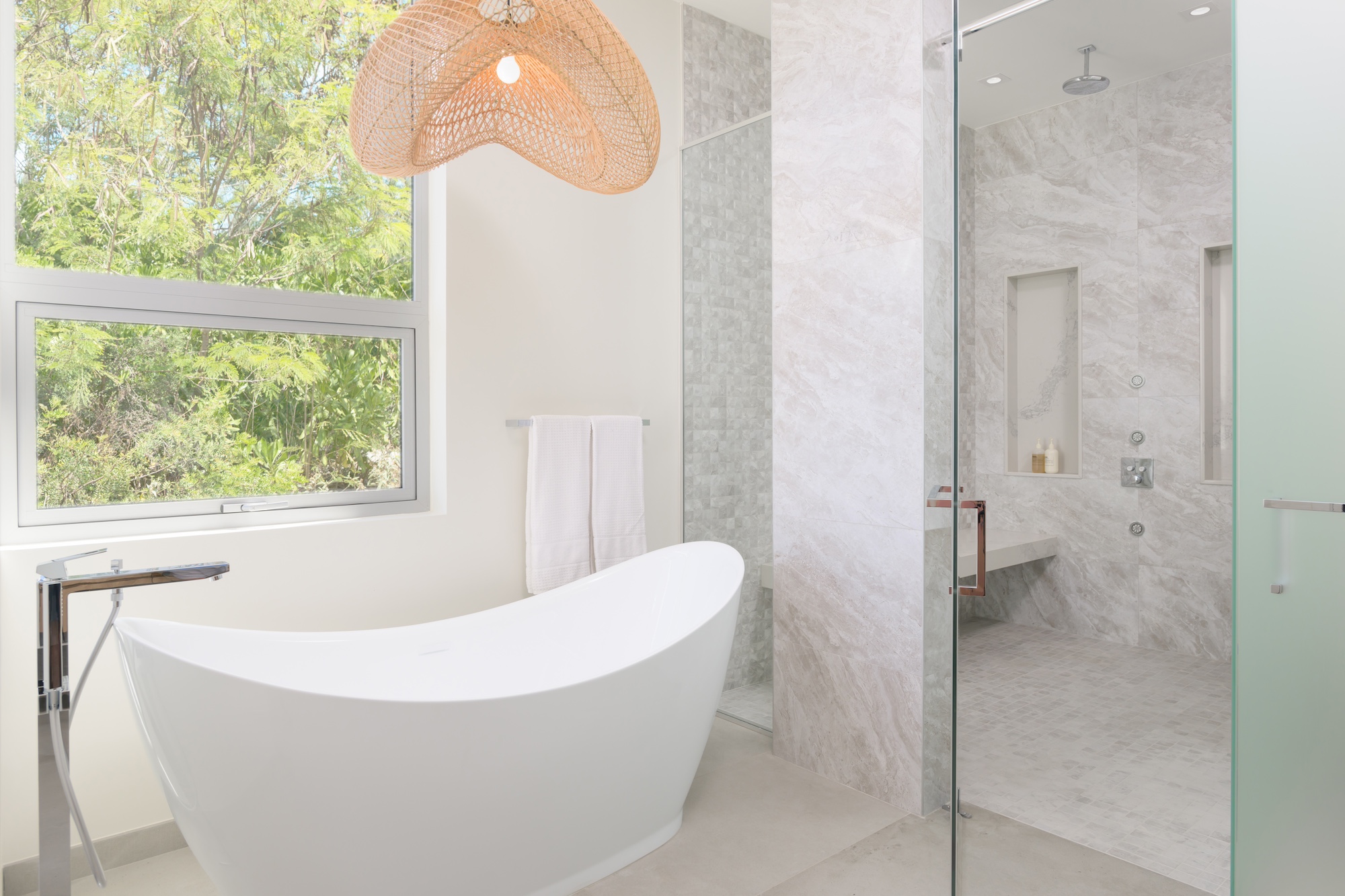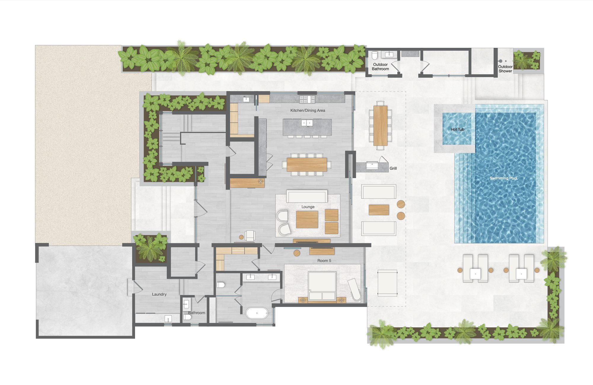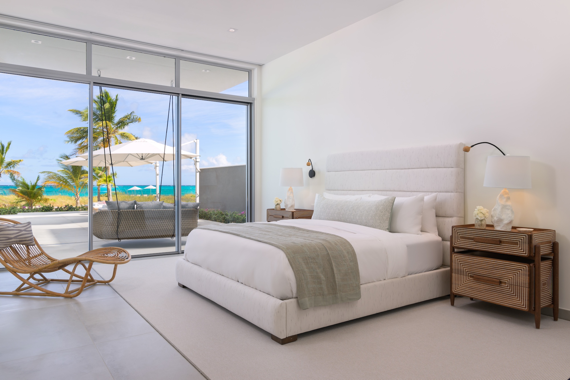 Culinary enthusiasts will delight in the state-of-the-art indoor/outdoor kitchens and BBQ, providing the ultimate in-villa dining and entertaining experience. Multiple lounging areas, including a spacious pool and sun deck, are complemented by a shimmering infinity pool with a convenient beach shower. Bliss Villas offer all the renowned Island House VIP amenities, including Butler & Chef service, a media room, and access to a shared gym, pickleball court, paddle boards, and kayaks.