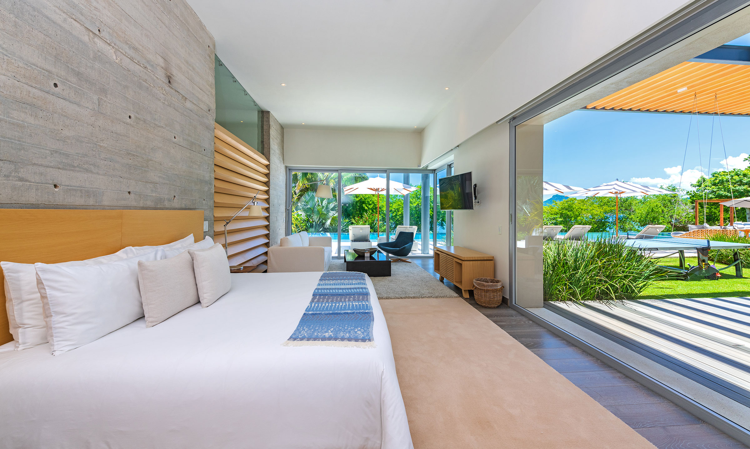 It has private access to the beach, green areas, an incredible infinity pool, game room, bar, cinema, spa, yoga room, a complete gym, and it is full of unique details that make it a one-of-a-kind property.