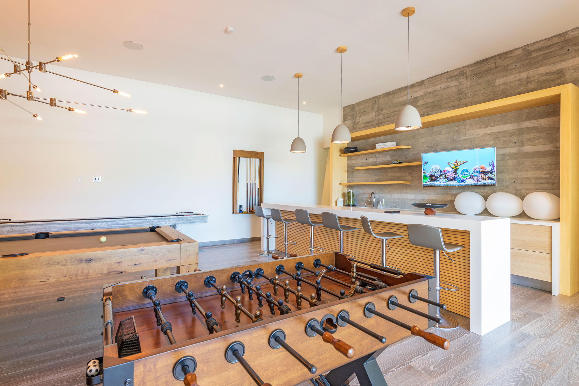 • Game room: Pool table, bar, shuffleboard table, scrabble table, foosball table,