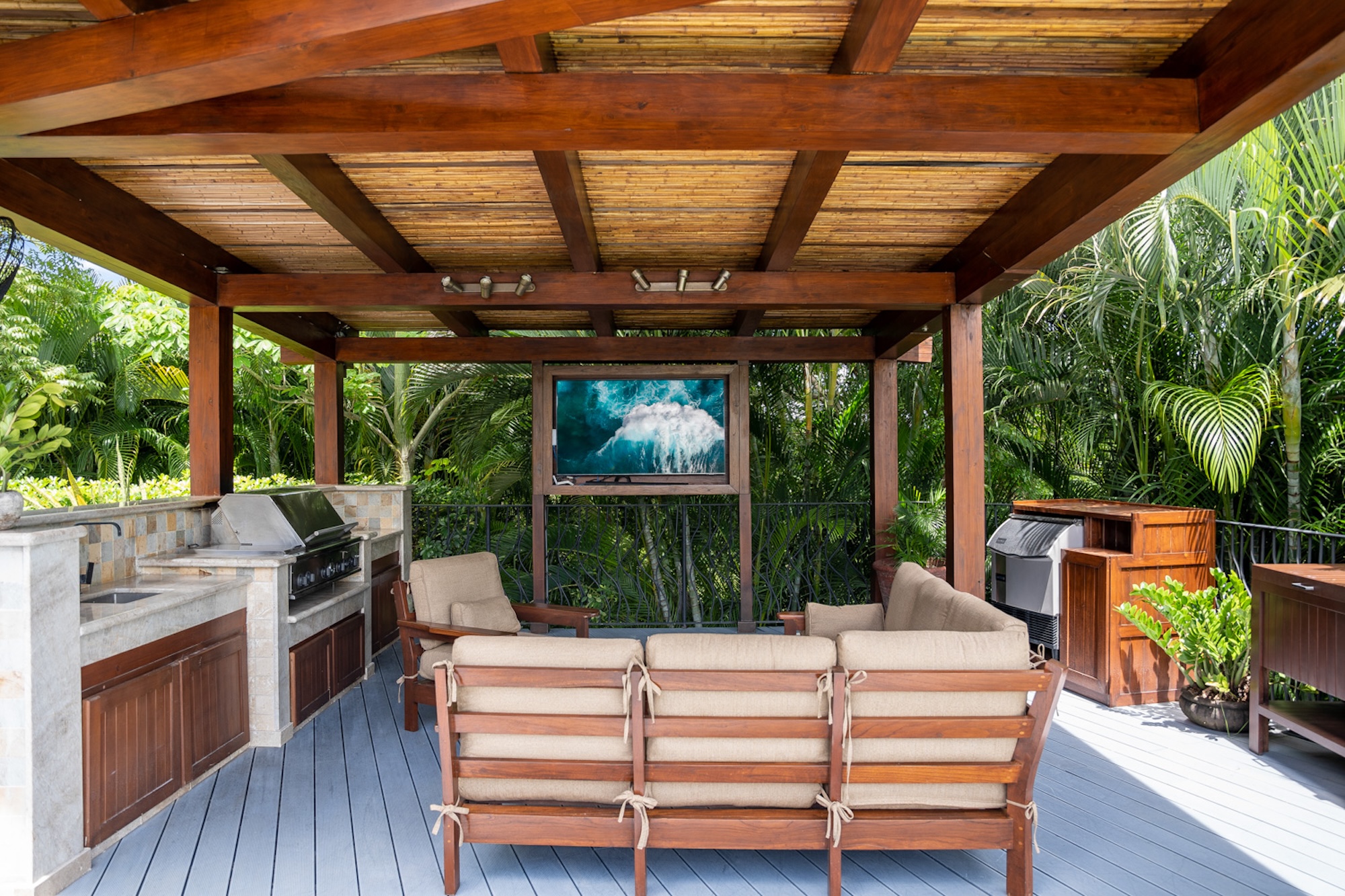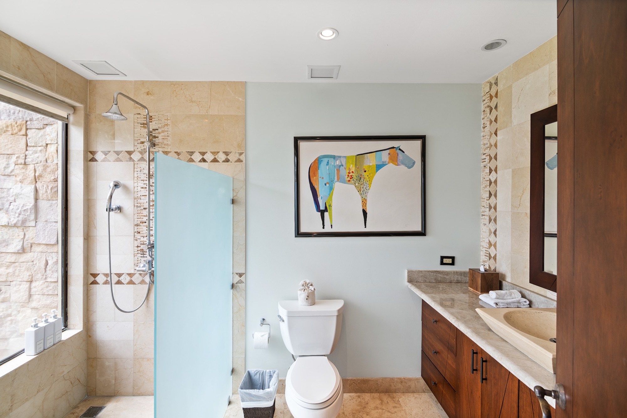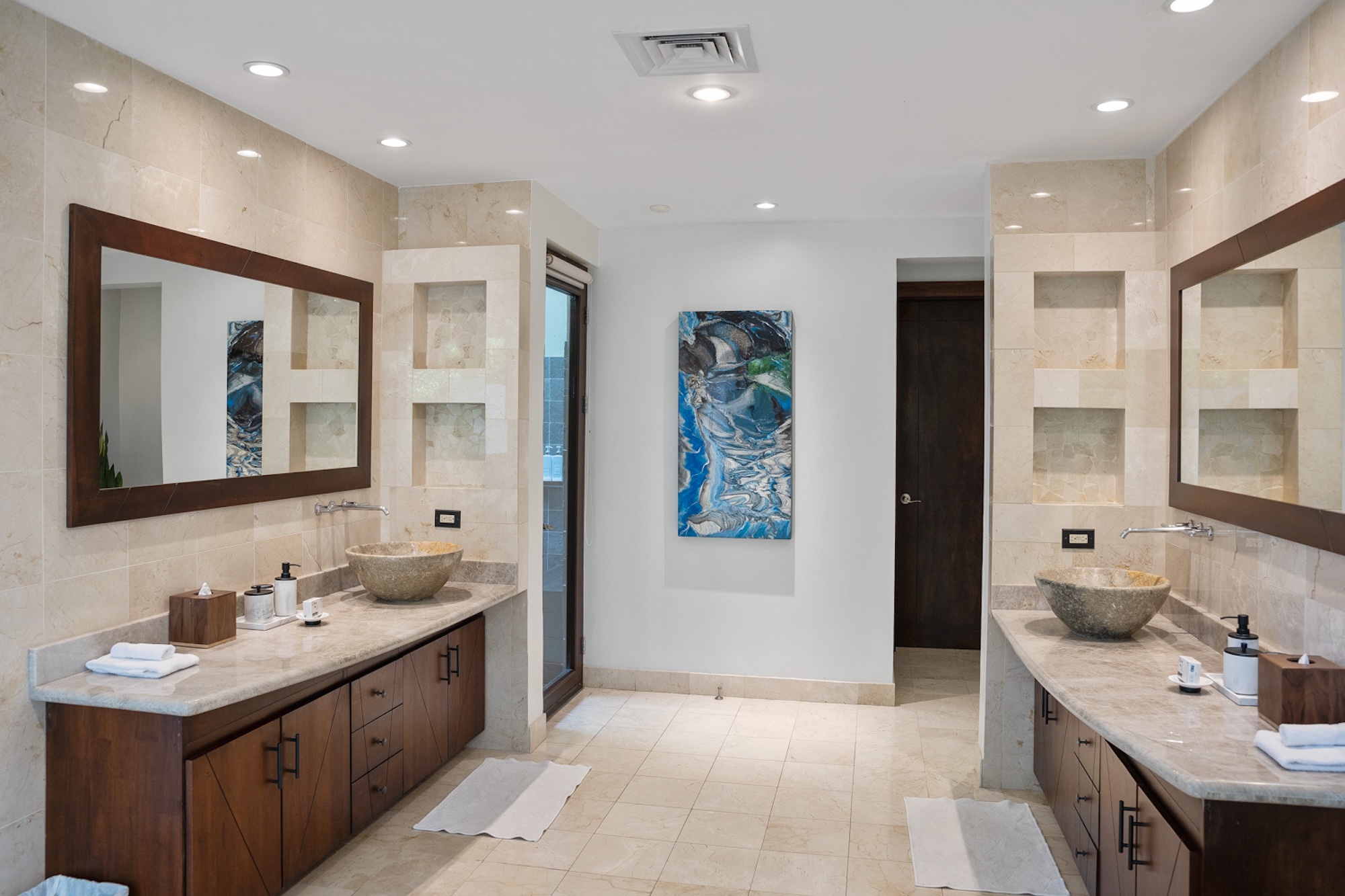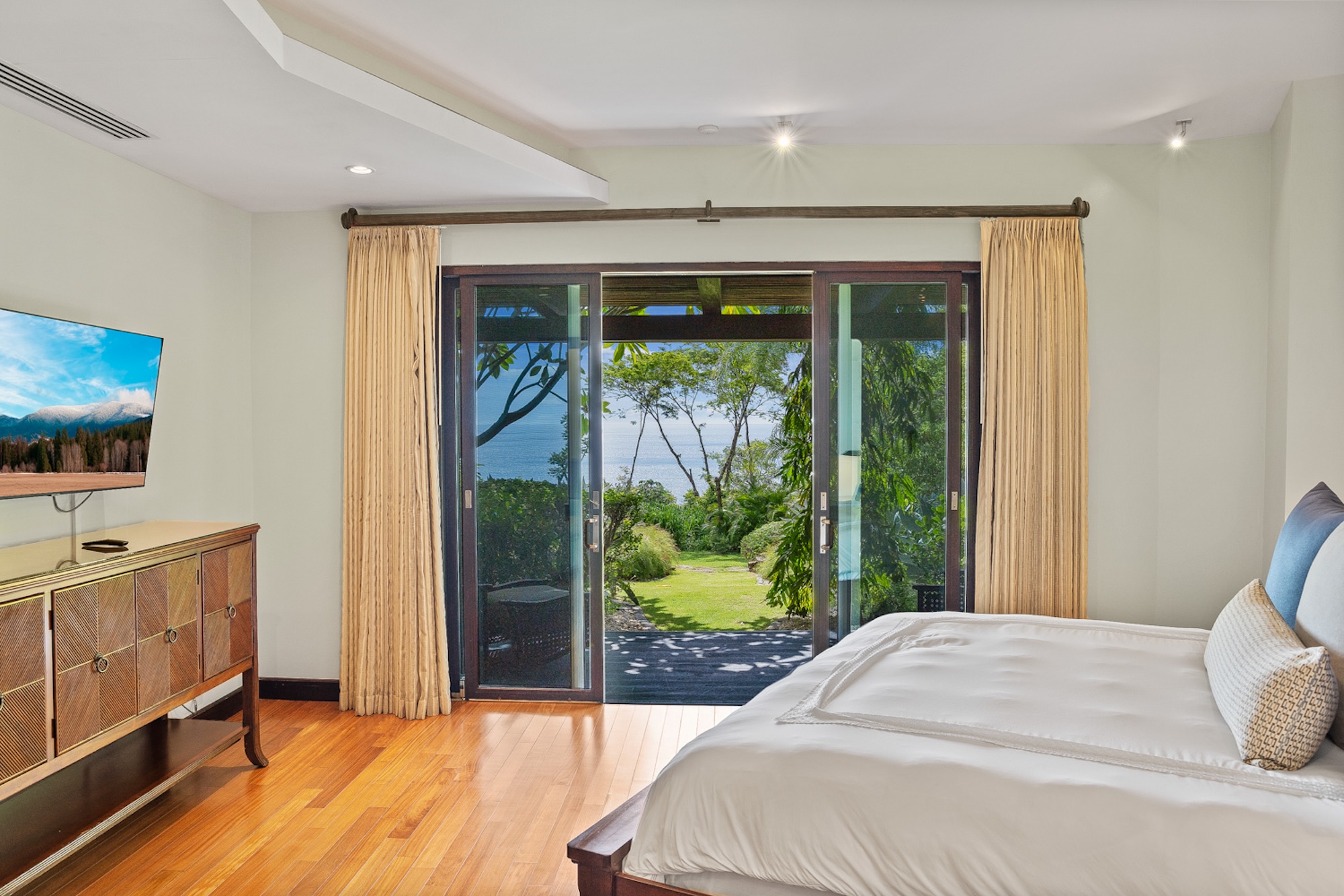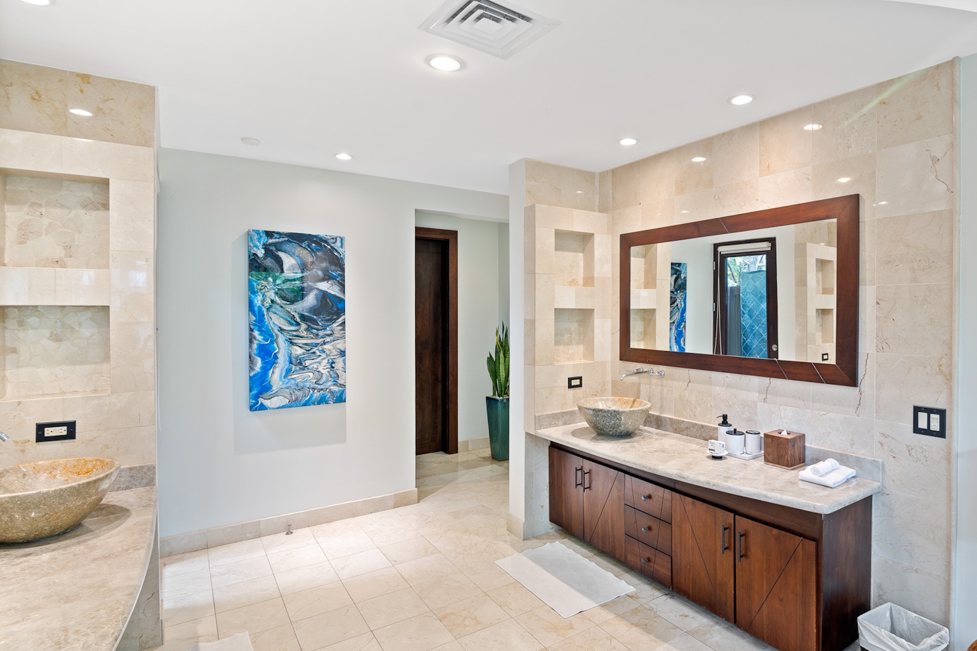 Casa Caiman is one of the few five-bedroom private luxury villas in Papagayo, thoughtfully designed to blend comfort and sophistication. Each suite features its own ocean-view terrace, en suite bathroom, and large flat-screen TV. The main living space is striking, with soaring 27-foot ceilings and elegant finishes of local sandstone and marble that flow seamlessly throughout. Outdoors, an expansive deck, infinity-edge pool, and adjoining hot tub create the perfect setting for unforgettable sunsets.