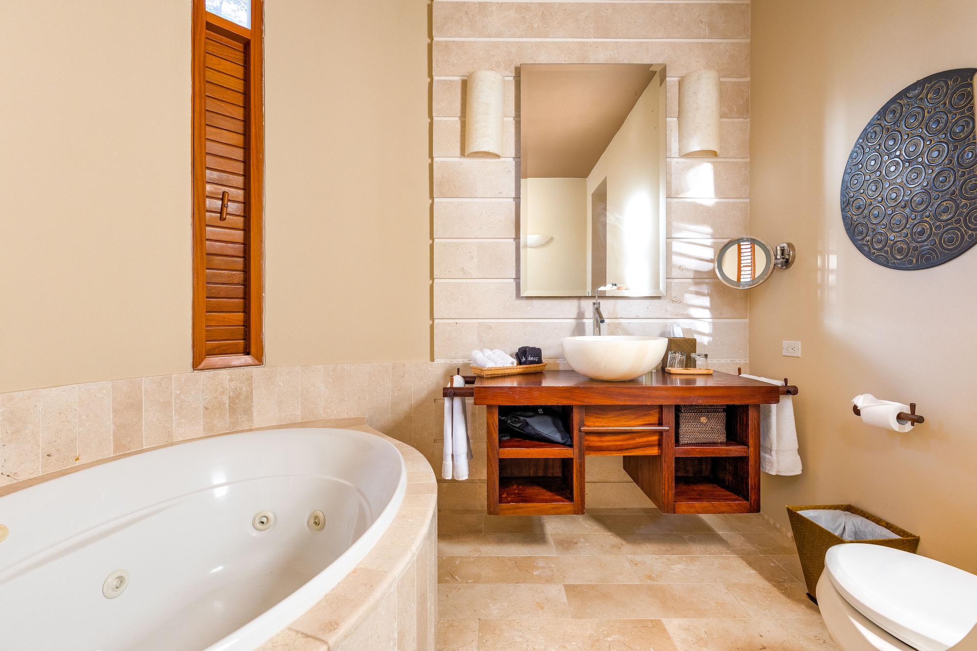 Nestled in paradise, Casa Carey is an exquisite luxury villa that effortlessly combines comfort, relaxed opulence, and elegance. The winding pathways and meticulously tended gardens infuse the property with a sense of serenity and warmth. The infinity-edge pool, offering an unobstructed view of the Caribbean Sea, stands as a true masterpiece. Every detail, from the wooden ceiling in the main living room to the handcrafted etched concrete floors, showcases meticulous design and craftsmanship. The resort itself offers an unparalleled tropical experience, with a chic lifestyle perfect for those who value quality, comfort, and aesthetics. As guests of the villa, you’ll have access to all the resort’s amenities and activities.