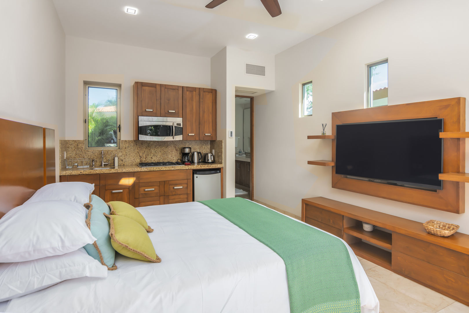 Inside, guests will find every modern comfort, including high-speed mesh Wi-Fi, U.S. television in every room, a Sonos sound system, a full-house water filtration setup, and complete laundry facilities. Whether starting the day with sunrise coffee, toasting at the swim-up bar, or relaxing by the outdoor fireplace, every moment at Casa Kokomo radiates ease, connection, and coastal elegance.