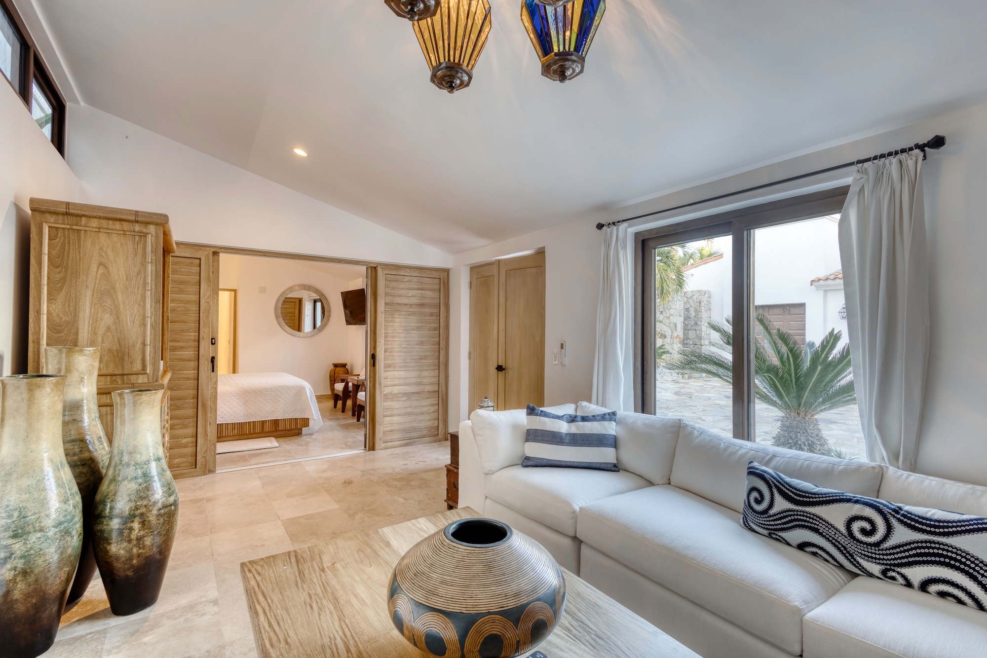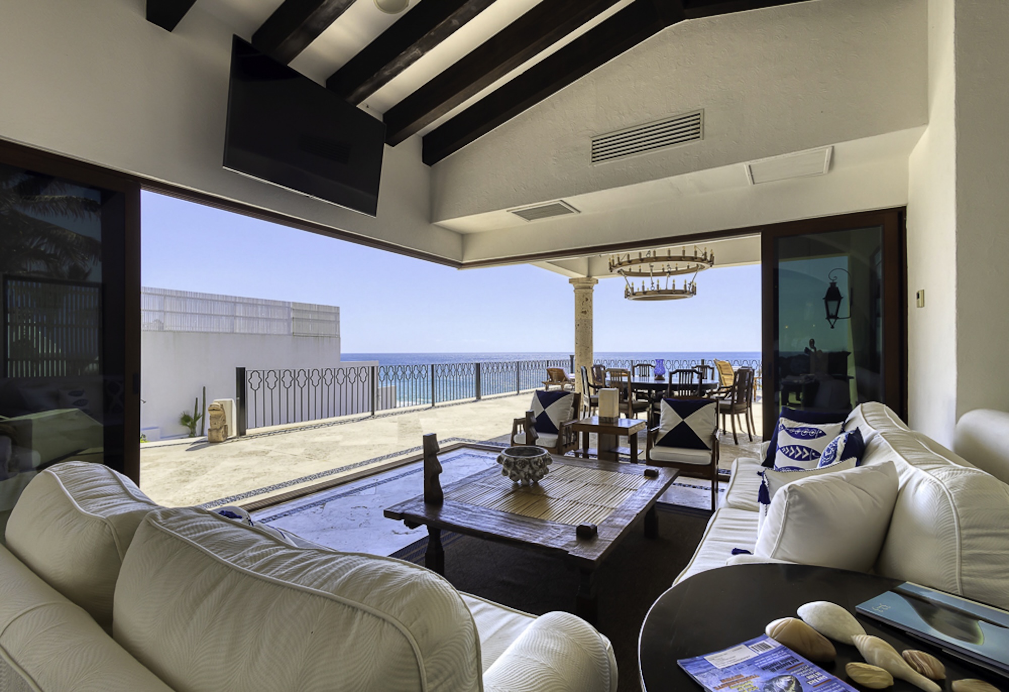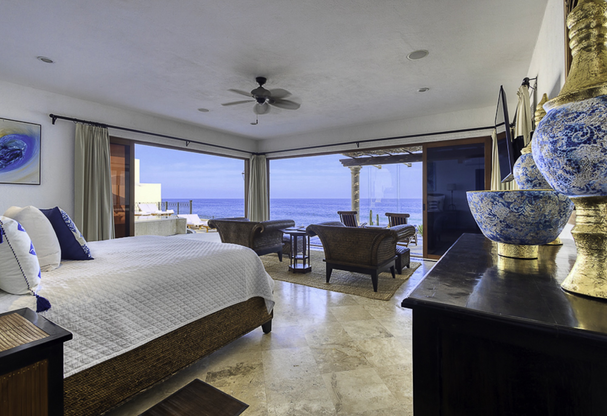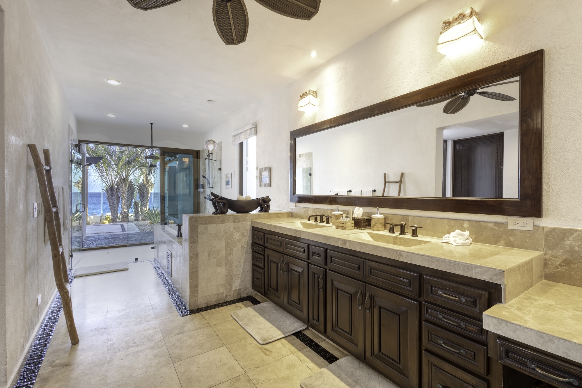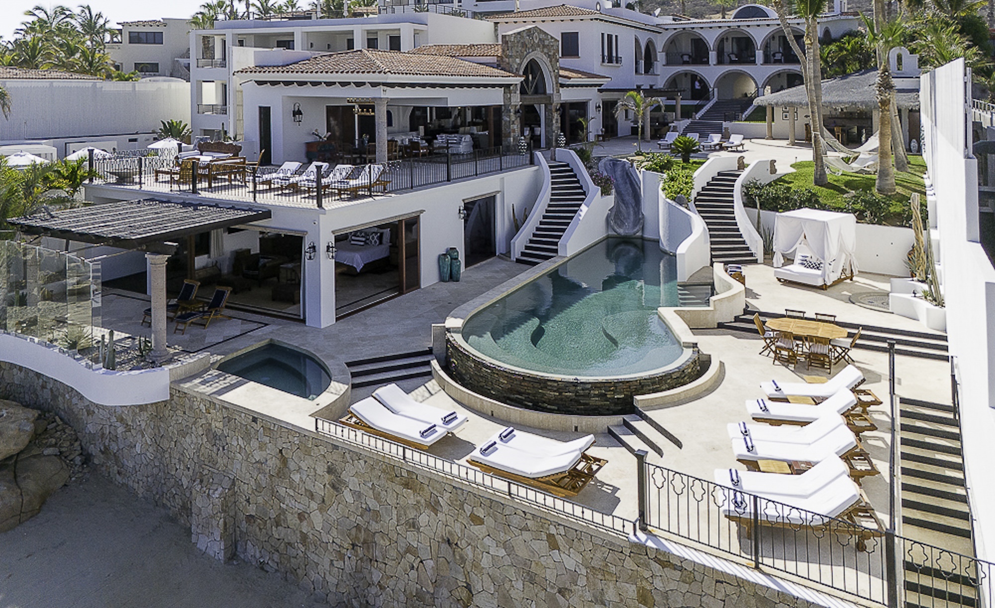 We’re one of the largest and most luxurious beachfront villas available in Los Cabos. This 7 bedroom villa accommodates 15-18 guests and offers over 11,000 sq. ft. of living covered living space, 9,000 sq. ft. of which is air conditioned. CLL also offers over 16,000 sq. ft. of terrace and outdoor living space. The sparkling two level pool offers an upper wading pool, a 15 foot slide, and a lower infinity pool large enough for lapping. The huge beachfront Jacuzzi sits directly above beach with space for 12-15 guests. Bali meets Mexican Hacienda in this four level Private Resort, all with unobstructed views of the beach, tide pools, and the Sea of Cortez; spectacular! We have 7 Sea of Cortez view suites, and 9 bathrooms.