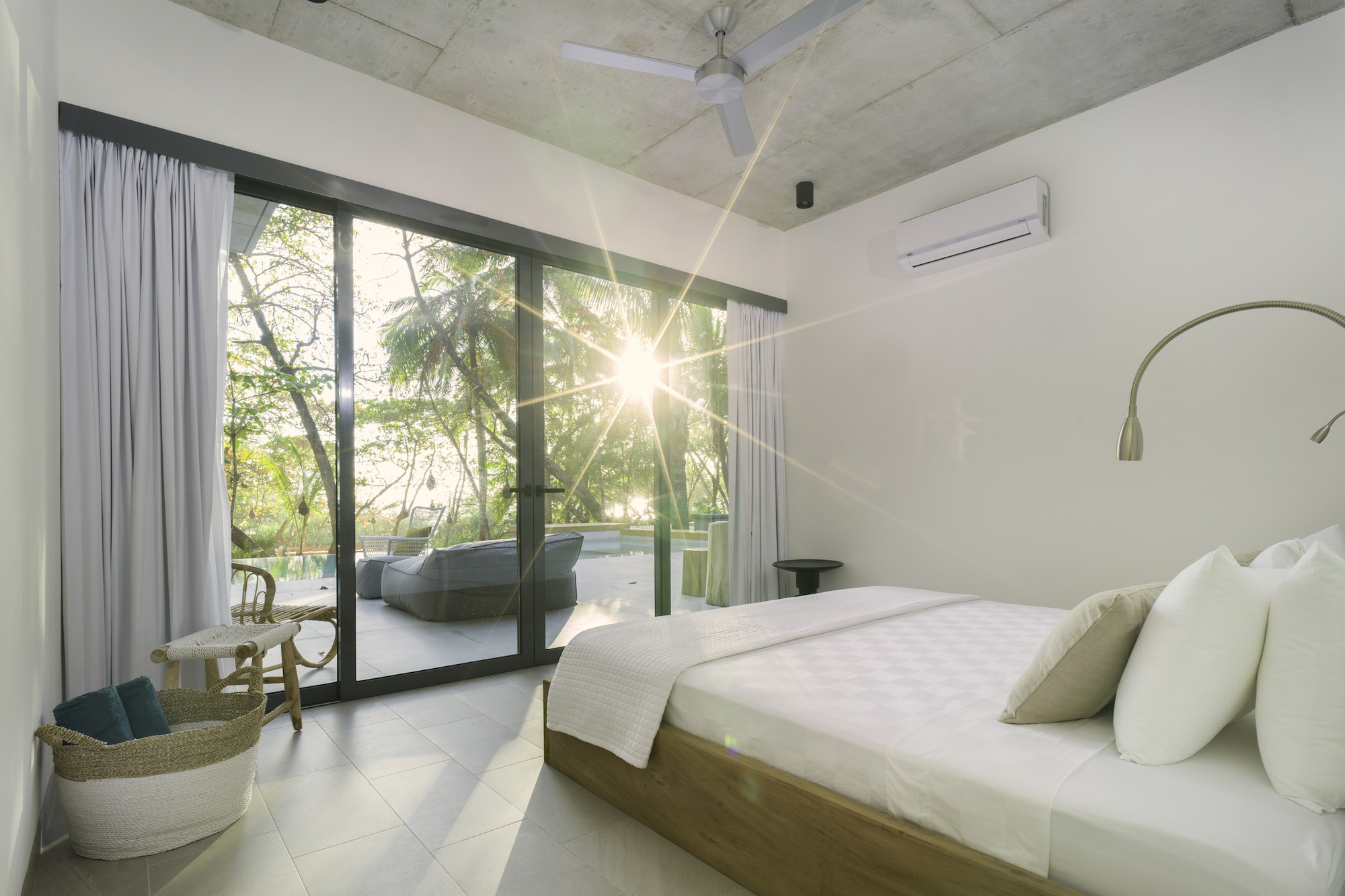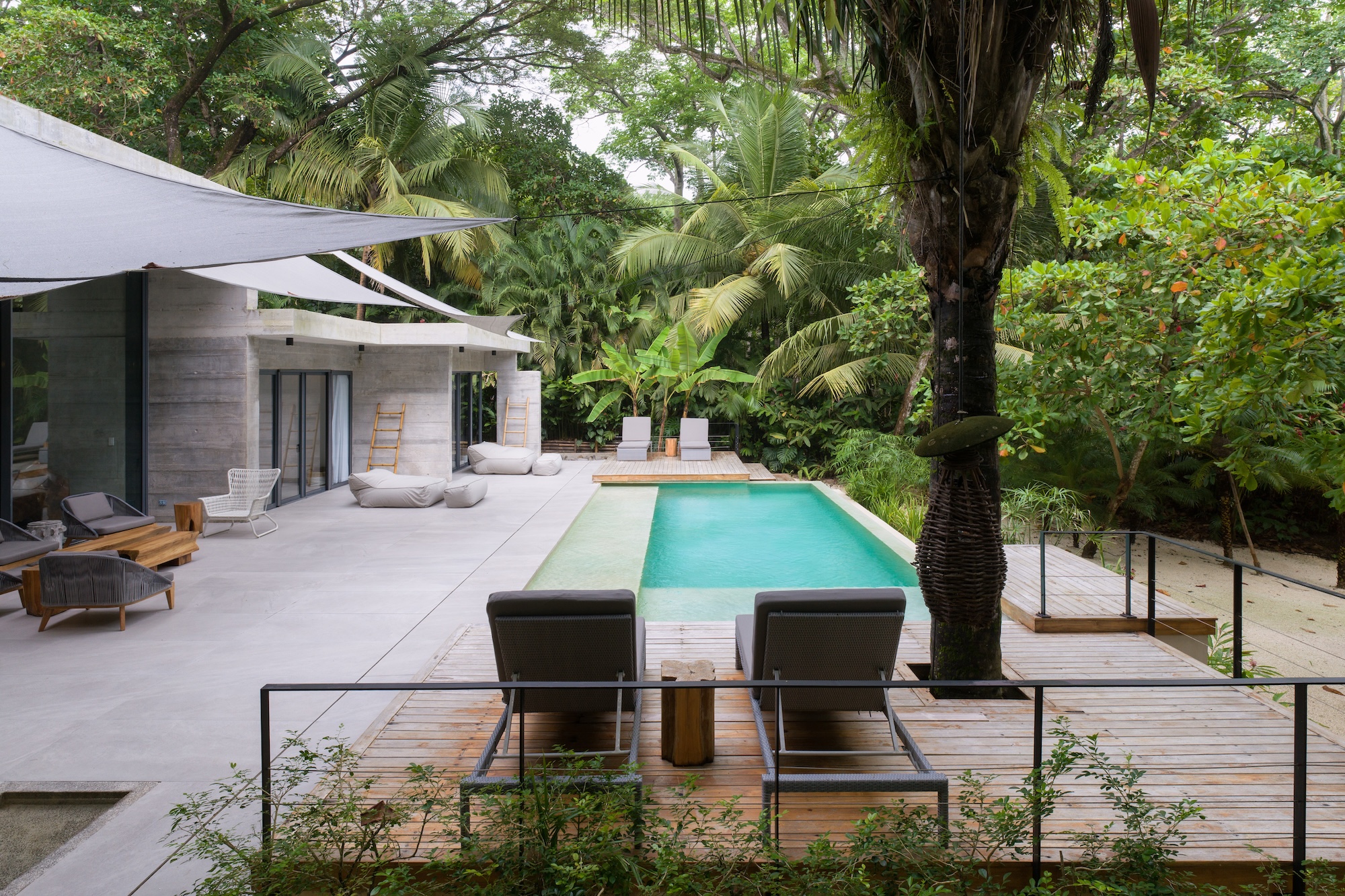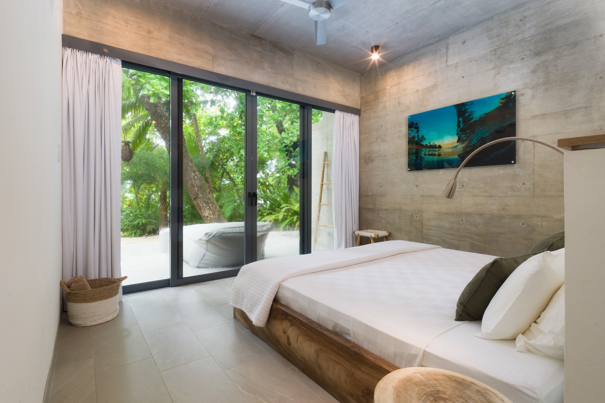 Between the villa and the beach lies a naturally shaded and spacious open area, adorned with lounge chairs and hammocks. Here, guests can unwind, savoring cocktails or dinner while reveling in the awe-inspiring tropical sunset vistas at the large dining table situated close to the beach. The beach itself, stretching as far as the eye can see, offers pristine sand and utmost privacy under the sheltering canopy of numerous trees, while avid surfers enjoy the fantastic and consistent waves.