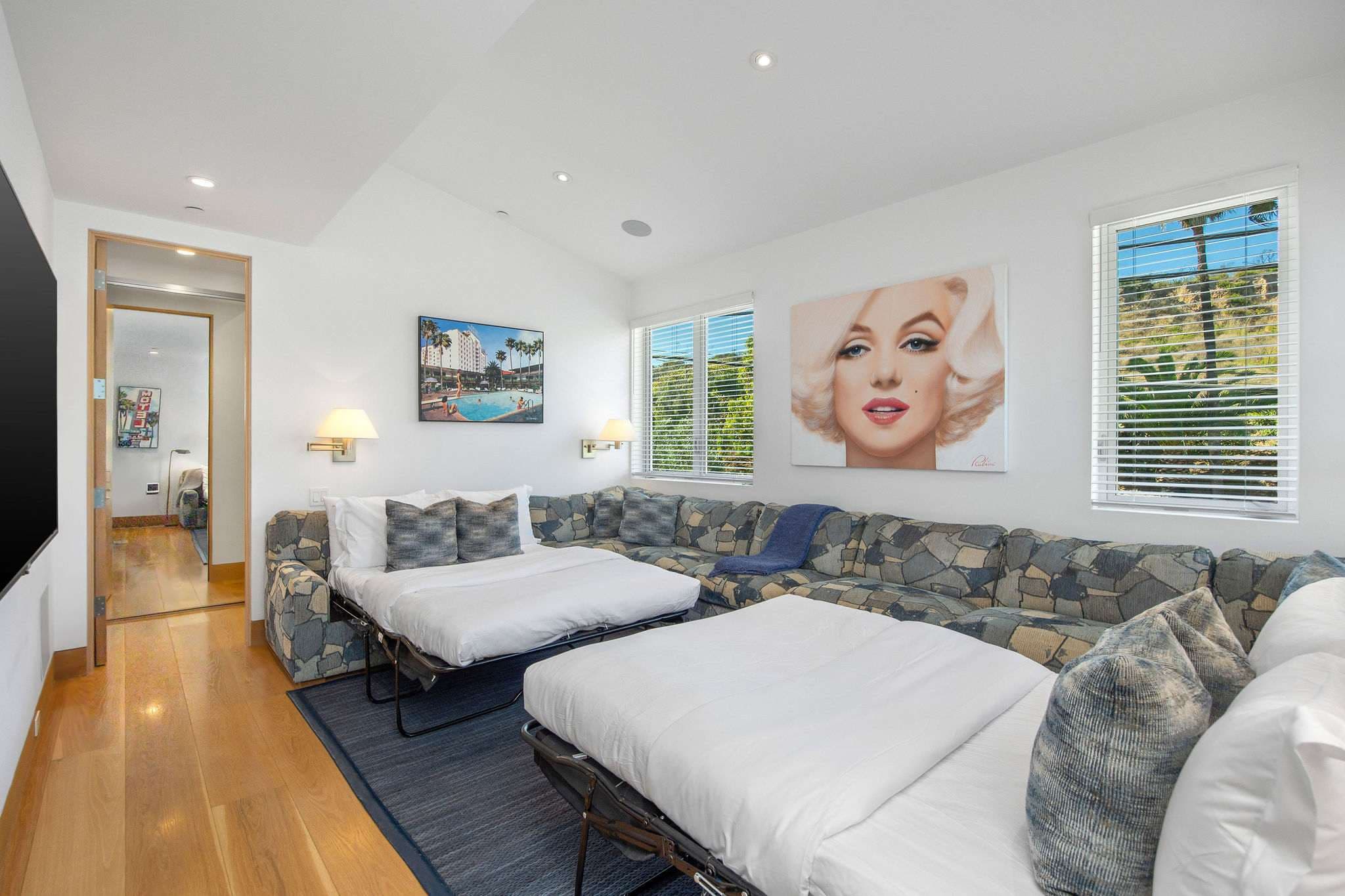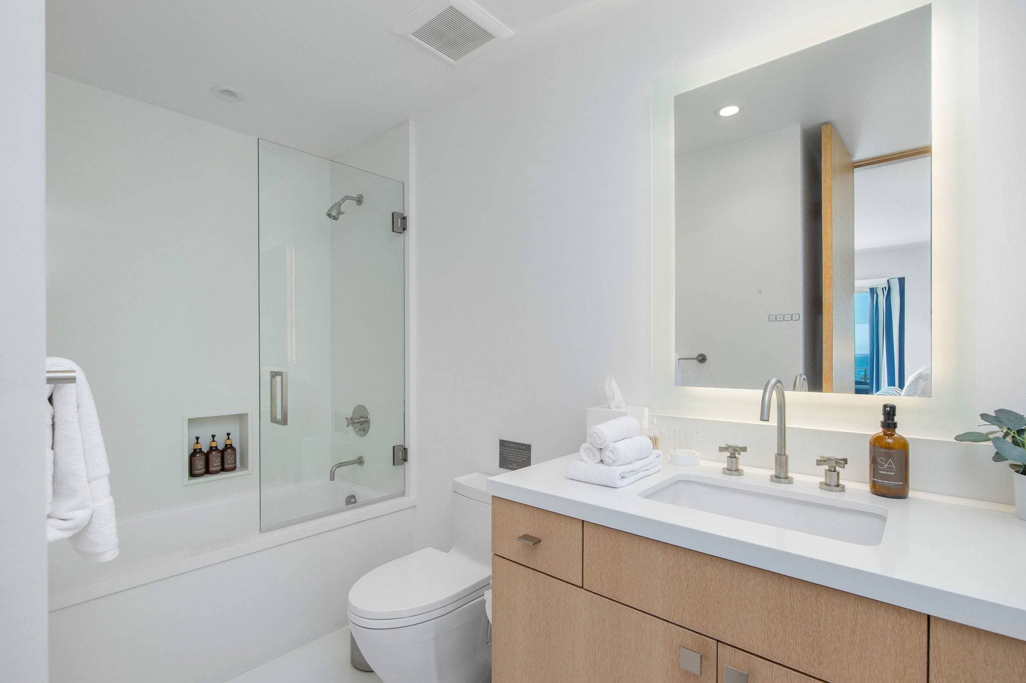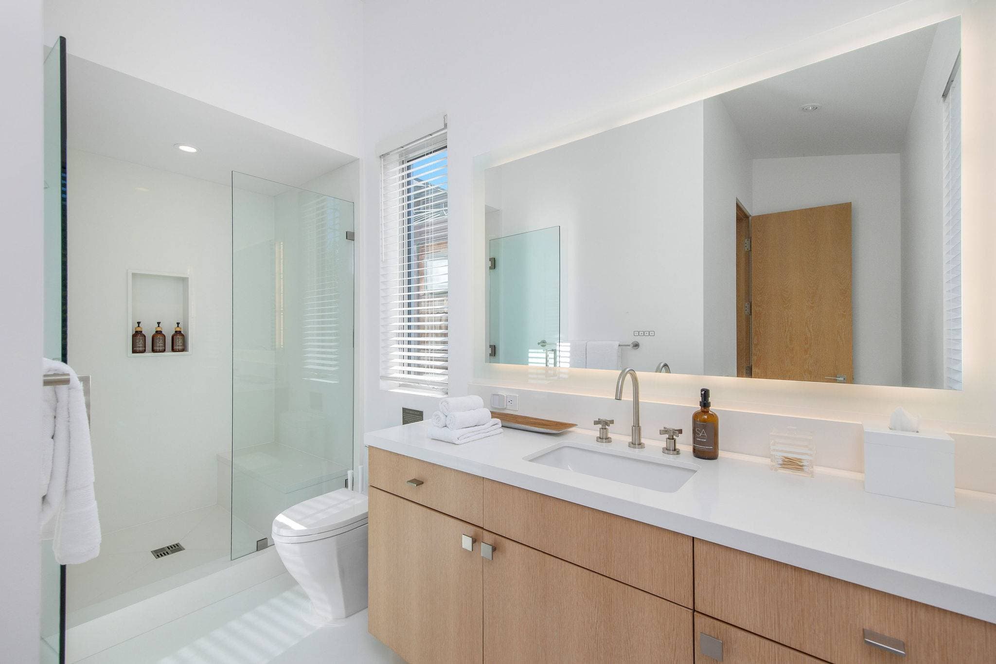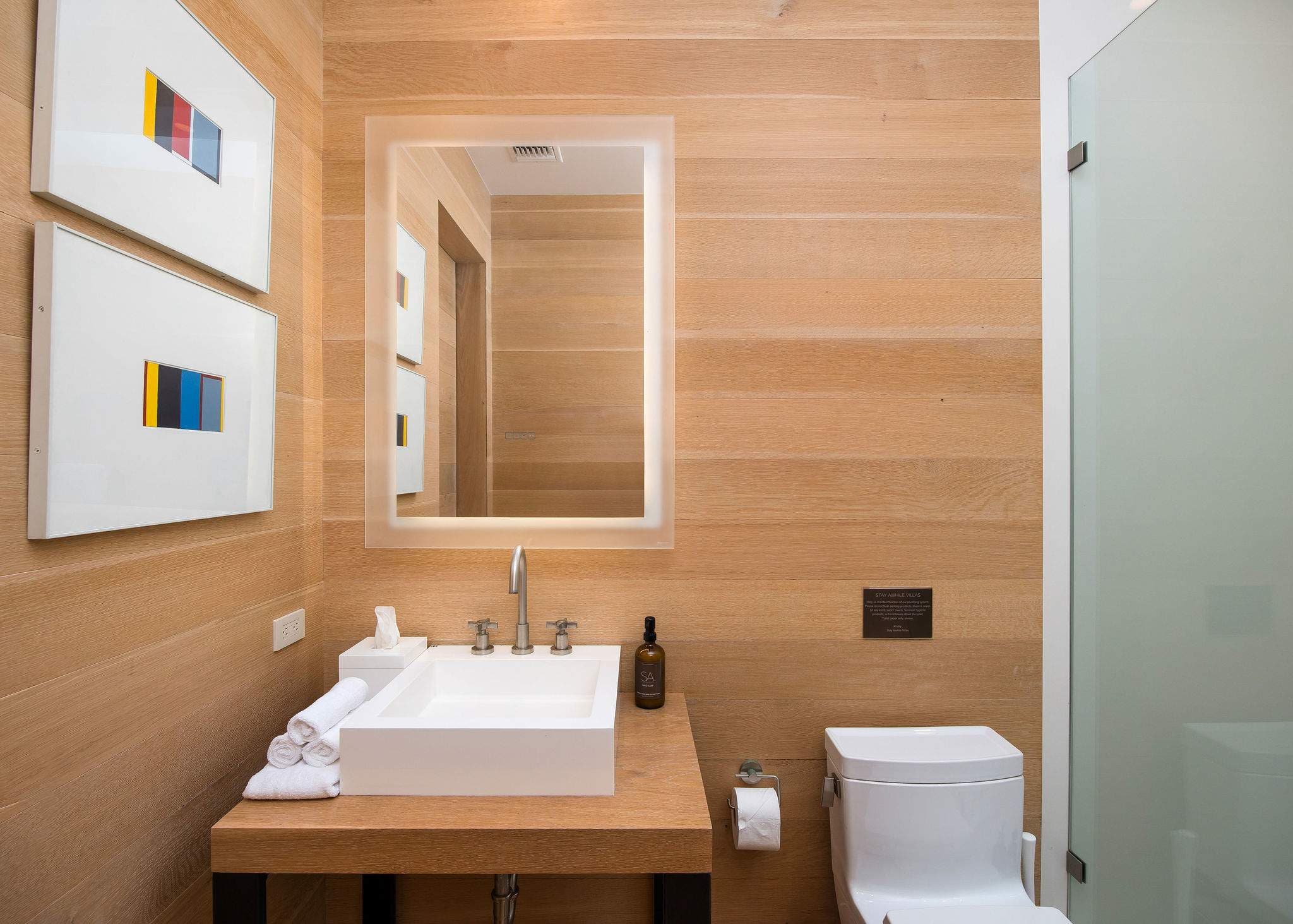 Additional amenities include a 2-car garage with extra parking, Control 4 home automation, and exclusive Stay Awhile guest partnerships with Erewhon Market (pre-arrival fridge stocking) and CURE Wellness (private spa and gym access).