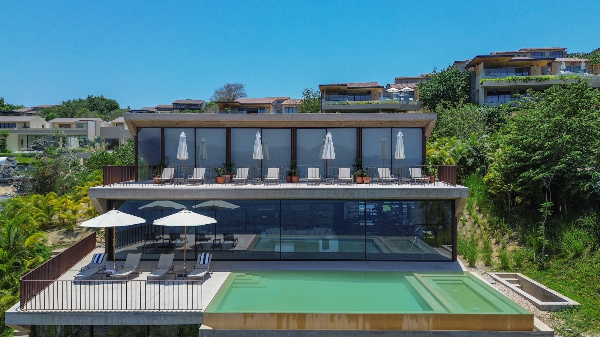 Each of the five ocean-view bedrooms offers plush bedding and private en-suite bathrooms, ensuring unmatched comfort and privacy. Outdoors, a private infinity pool with jacuzzi and sun-drenched terrace invite you to unwind beneath the warm Pacific sun—or follow your private steps down to the beach for a closer connection to the sea.