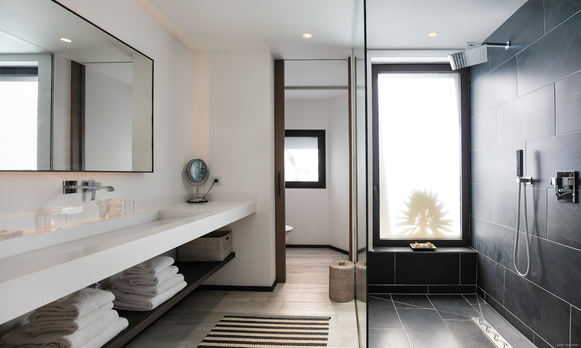 One bedroom is on the first floor, connected to the living room. Two more bedrooms are located on the lower floor along with the pool and Jacuzzi. This villa is perfect for holidays with friends.