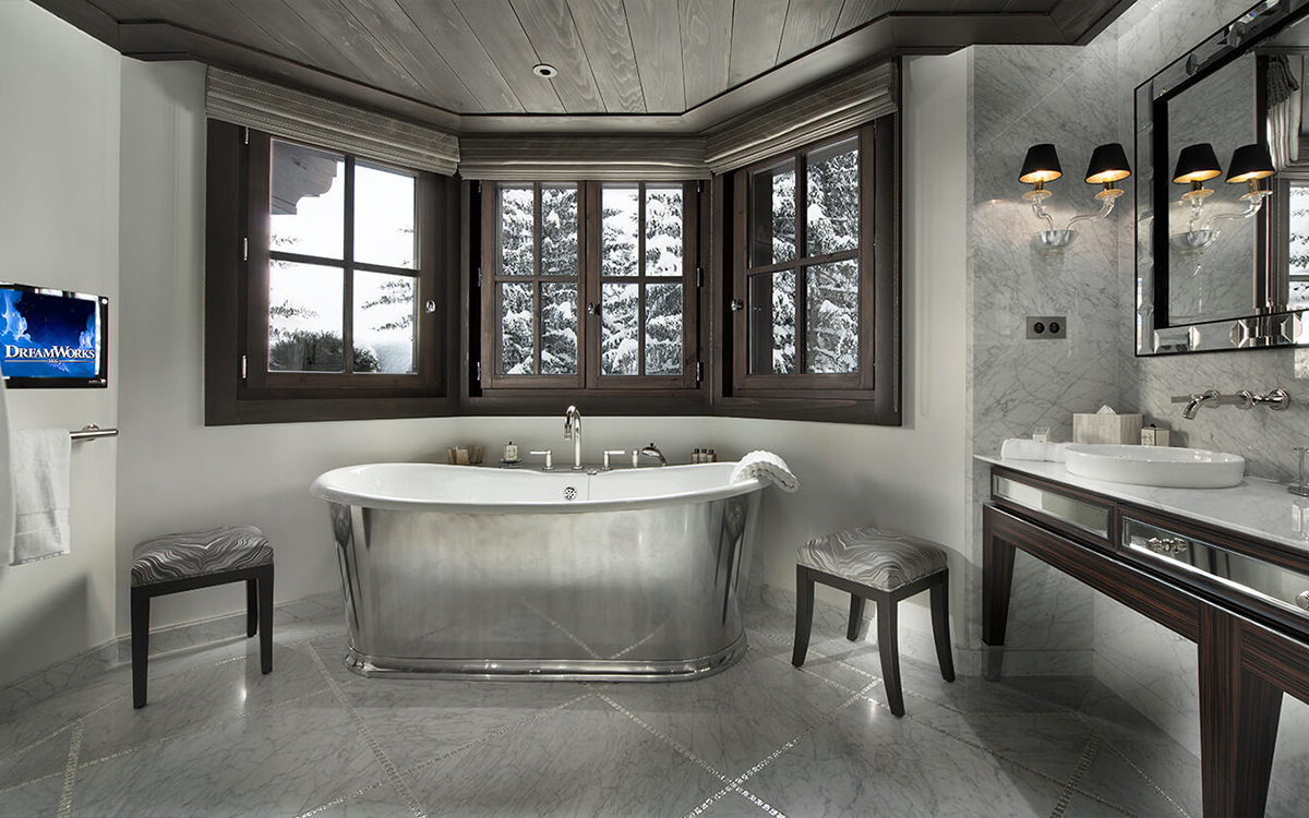 Designed for both intimate relaxation and elegant gatherings, the chalet’s harmonious palette of soft hues, textured stone, handcrafted mosaics, and fine ceramics creates an atmosphere of warmth and sophistication, with breathtaking mountain views in every direction.