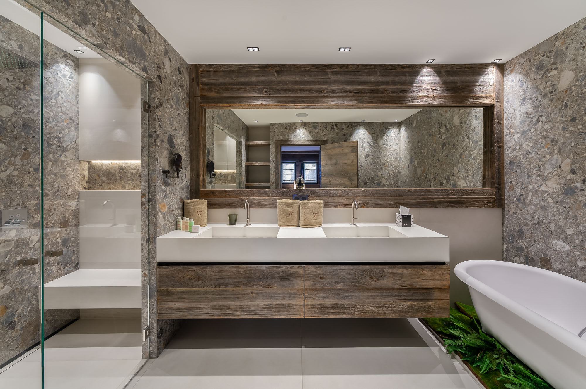 The centerpiece of this remarkable chalet is its wellness and relaxation area, centered around a heated indoor/outdoor pool.