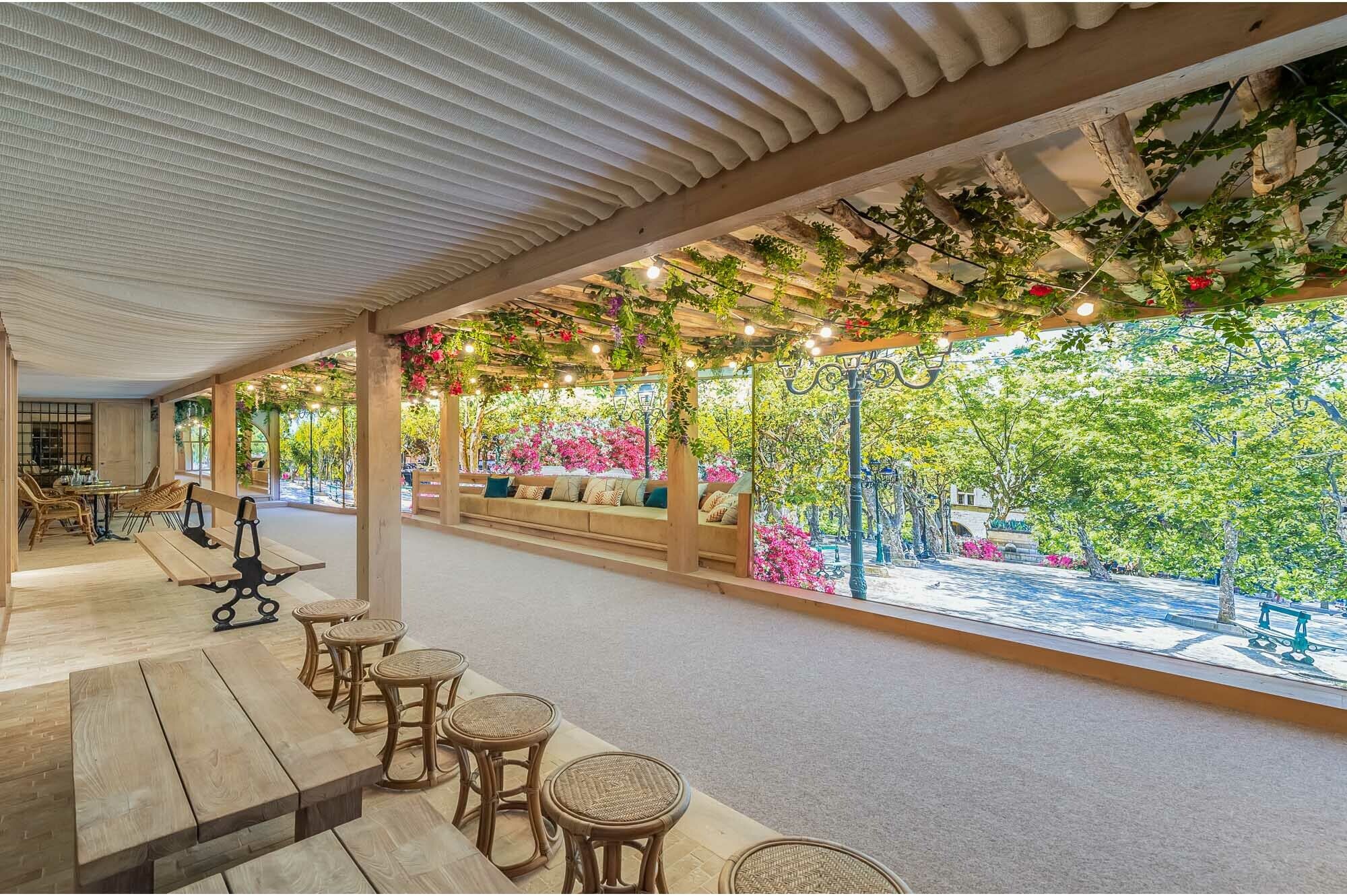 The centerpiece of this remarkable chalet is its wellness and relaxation area, centered around a heated indoor/outdoor pool. Guests can unwind in the sauna, steam room, or massage room, or stay active in the fully equipped gym—all designed with a touch of Mediterranean inspiration, featuring white sand tones, driftwood textures, and vibrant splashes of color.