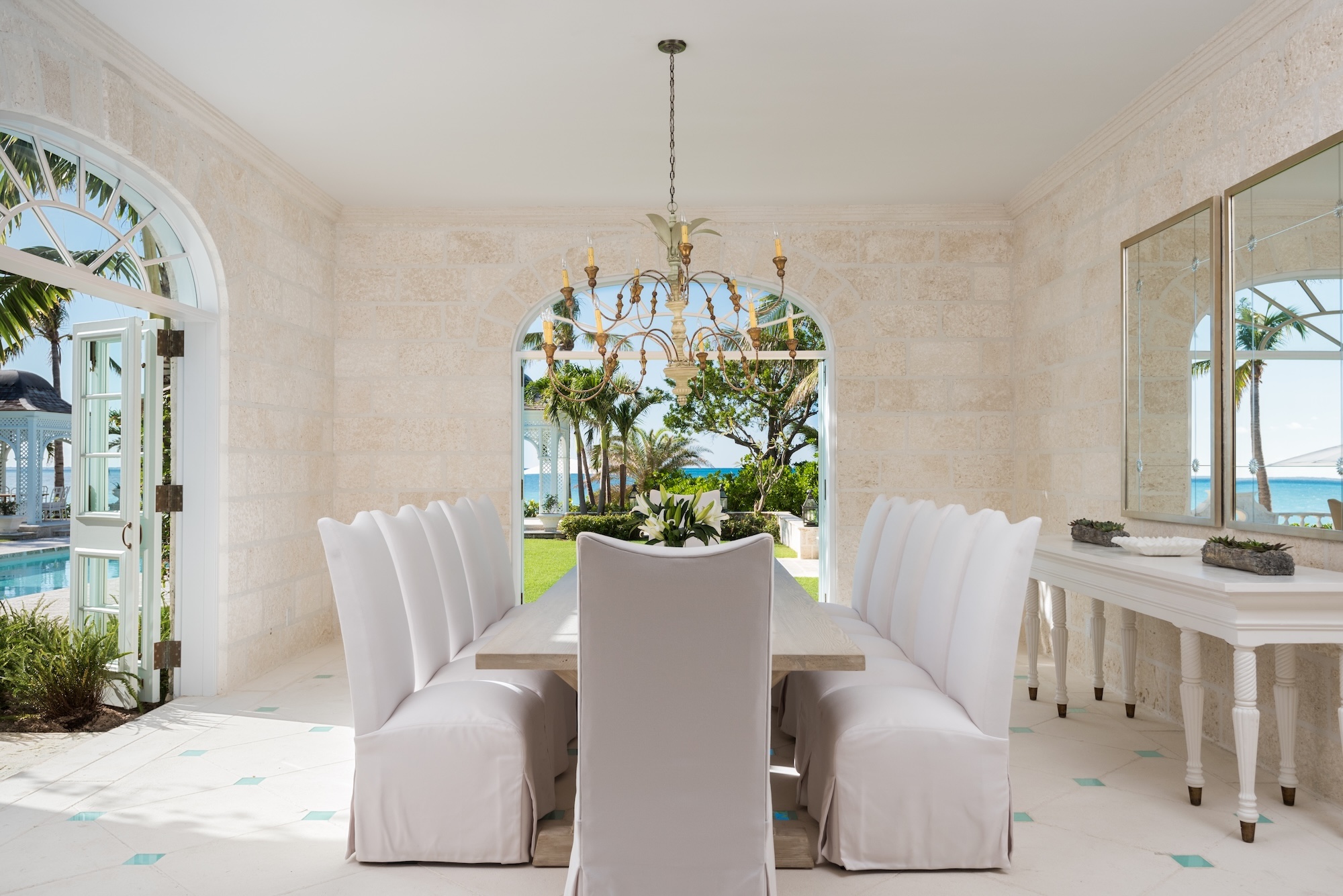 Impeccably detailed by its creators, Coral Pavilion is a stunningly elegant, newly completed, coral stone villa located on the most enviable stretch of world-renowned Grace Bay Beach. The unparalleled location is just five minutes from the heart of Grace Bay with its restaurants, amenities, and shopping. A two-storey five bedroom villa with an on- site staff cottage spanning more than 8000 square feet under roof and enjoys 120 feet of beach frontage. Offering a generous mix of indoor and outdoor living space it features stately Bajan architecture evoking the great houses of Barbados, designed by the famed Oliver Messel, a favourite of the British aristocracy.
