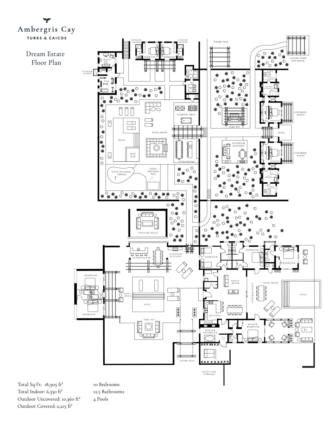 Boasting expansive open-concept living spaces, soaring ceilings, and meticulous craftsmanship, Dream Estate surrounds guests with world-class sophistication. Comprised of the Dream Pavilion and Dream Away villas, this estate features ten bedrooms, four pools, two private beach access points, and vast gardens and terraces—making it the largest villa on Ambergris Cay.