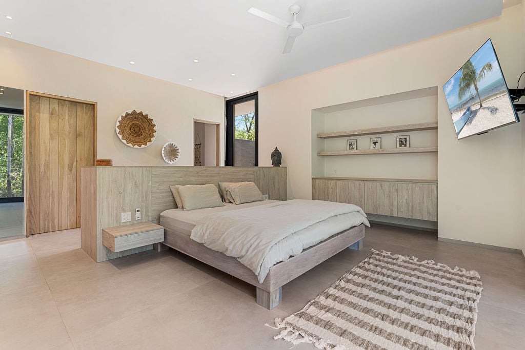 El Tesoro welcomes up to six guests to revel in its contemporary elegance, surpassing all expectations. Its expansive sliding glass panels offer the choice between climate-controlled comfort with air conditioning, allowing you to bask in natural light and the lush jungle vistas of Guanacaste, or an open embrace of the outdoors. Revel in king-sized beds and en-suite bathrooms in every room and the kitchen is fully equipped for your chef to craft incredible meals.