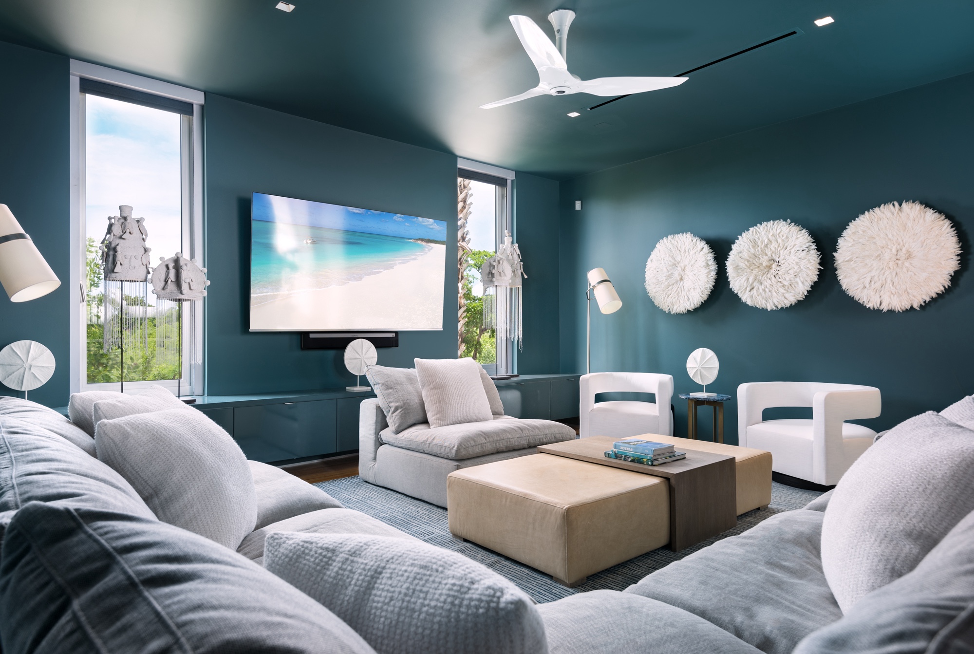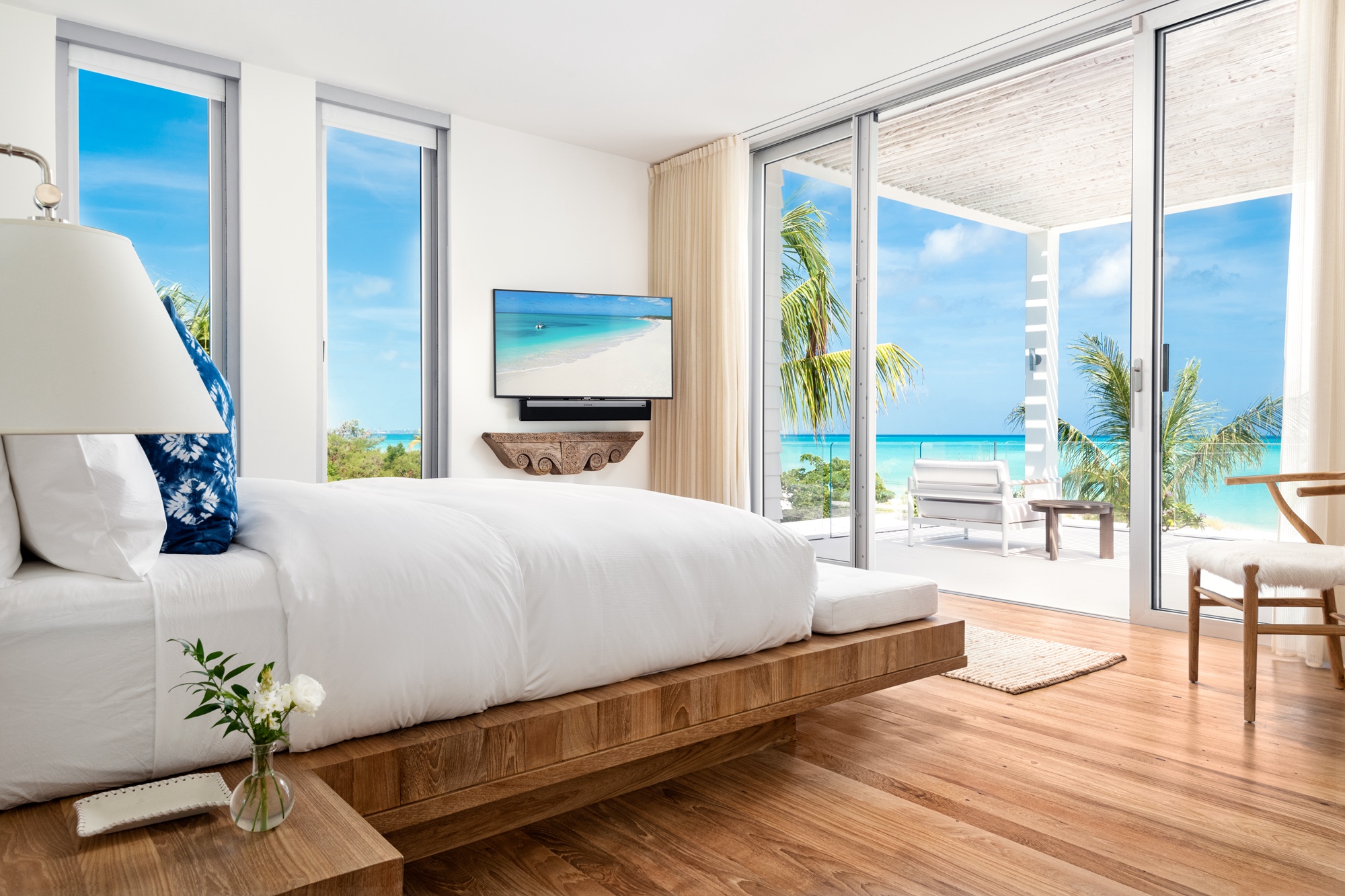 Emerald Pavilion perches on the northeastern tip of Grace Bay Beach, near the Leeward Marina. This fully staffed villa offers modern technology, endless amenities, and a prime location between tranquility and activity. A “soft contemporary” seven-bedroom estate on an acre of prime Grace Bay beachfront, representing one of the most exceptional rental offerings on the market in the Turks & Caicos Islands. Custom features marry contemporary and organic materials for the soft contemporary effect, designed by acclaimed Interior Designer and “fearless curator” Paul Duesing. Designer furnishings blend an inviting combination of soft contemporary and bespoke items, with curated vintage Balinese and ethnic pieces and artwork, with state-of-the -art audio-visual equipment indoors and out.