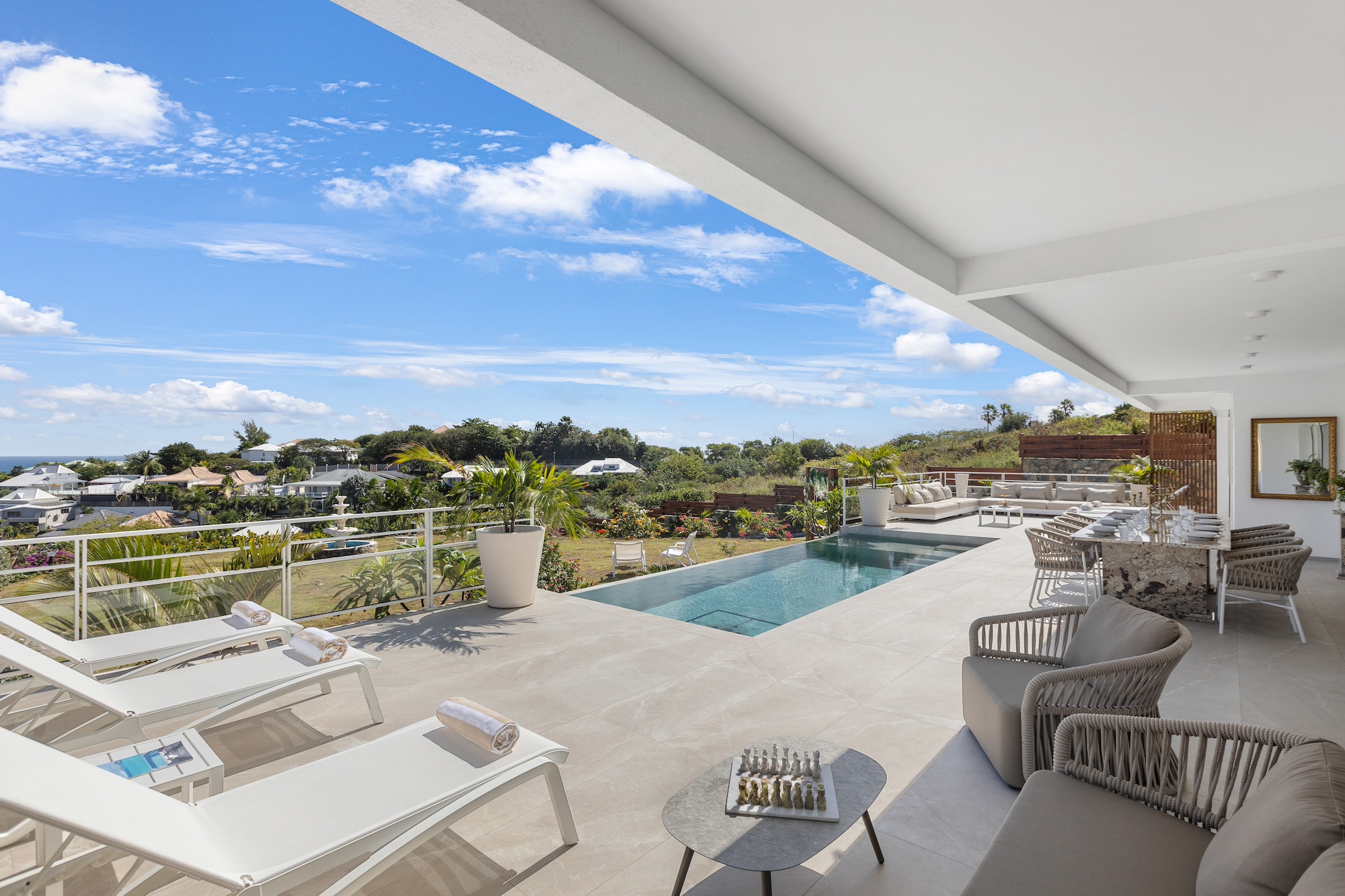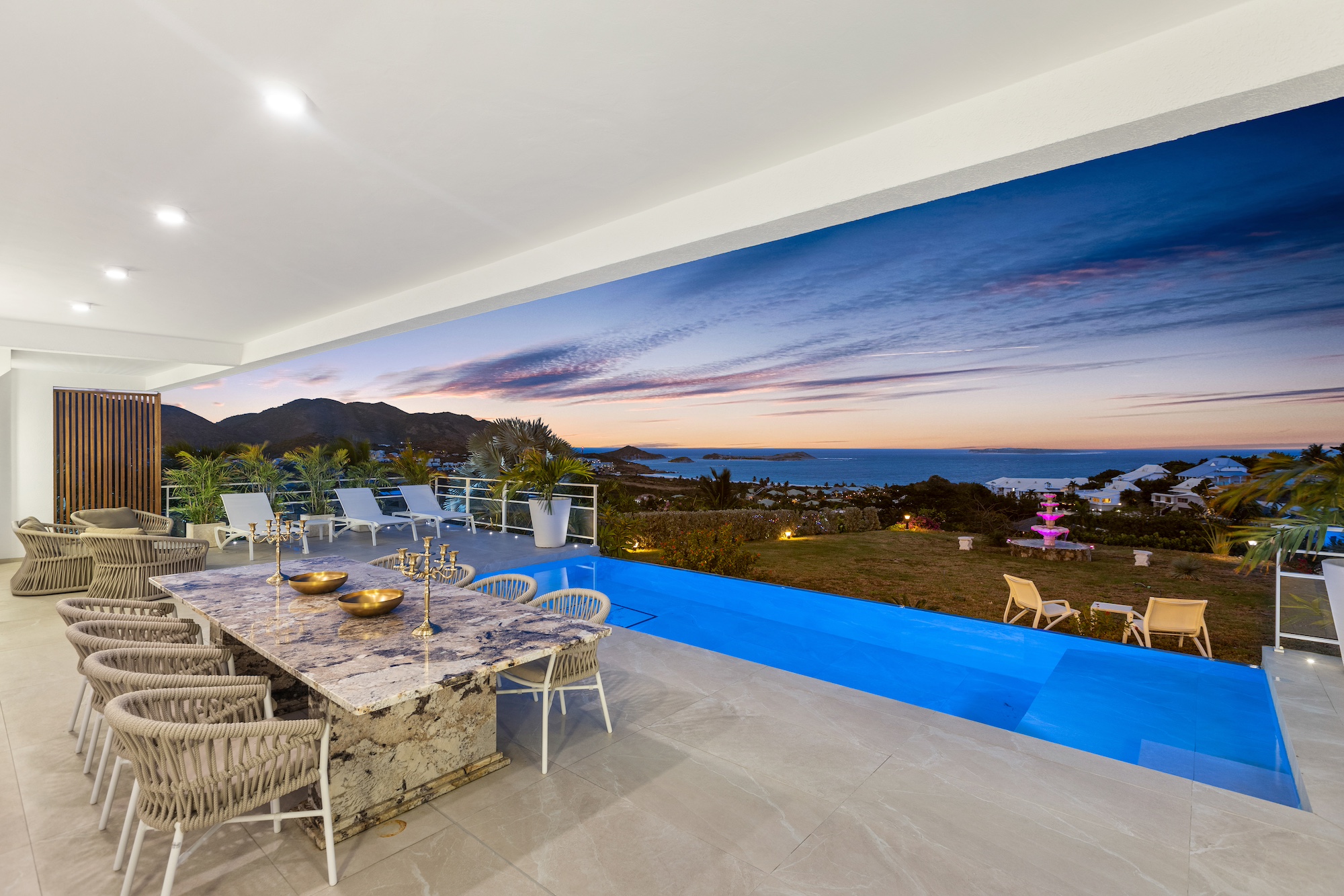 Villa Fleurs de Lys is an elegant sanctuary set in the peaceful Hope Hill neighborhood of St. Martin, where sweeping ocean views provide a spectacular setting for a refined island escape.