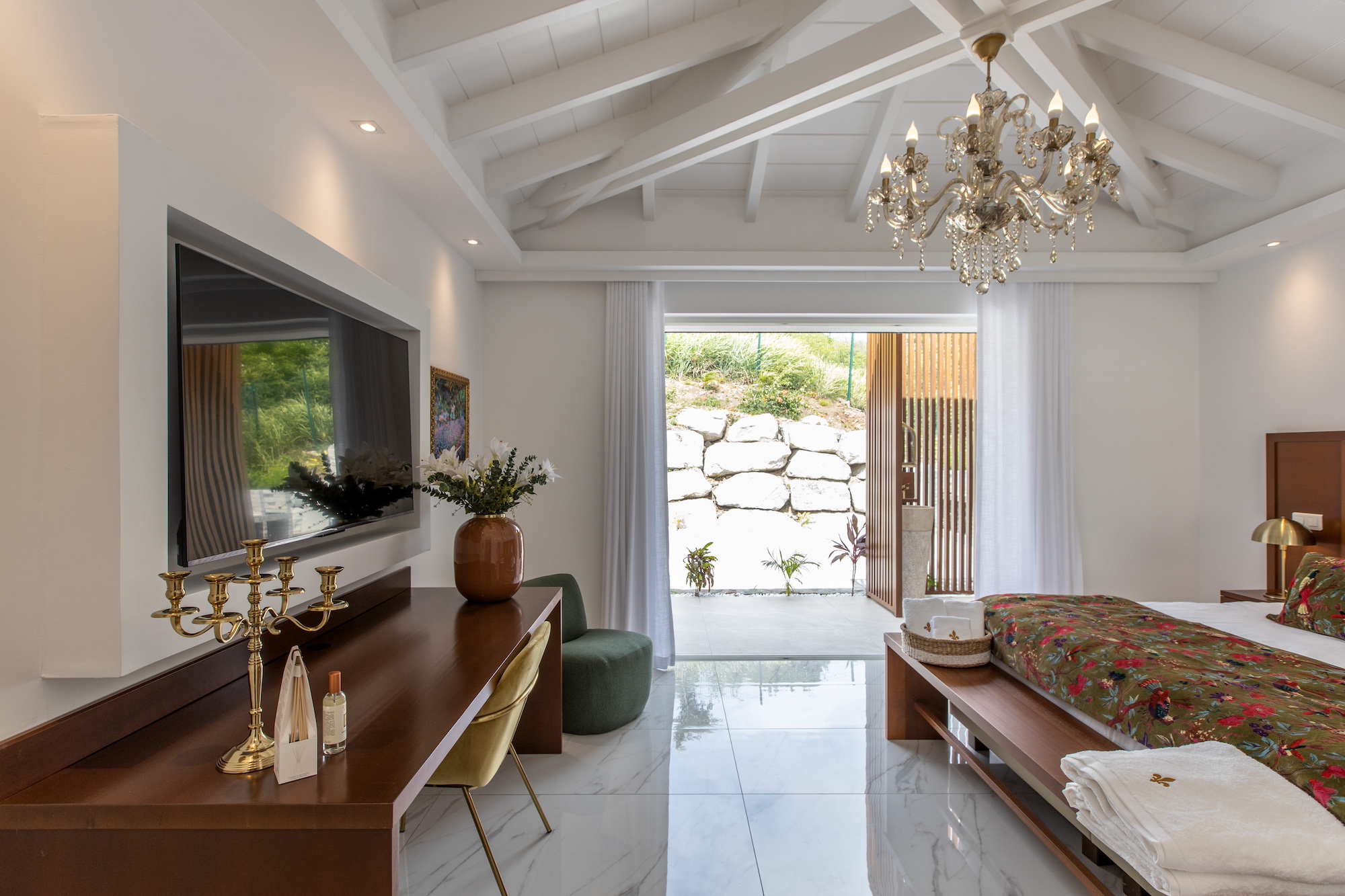 Villa Fleurs de Lys also benefits from its close proximity to Orient Bay, one of the island’s most vibrant and popular beaches. Guests can easily enjoy a wide range of activities, from water sports such as jet skiing and windsurfing to leisurely days spent lounging beneath beach umbrellas. Orient Bay is also known for its lively selection of beachfront bars and restaurants, where you can enjoy both local flavors and international cuisine in a dynamic seaside setting.