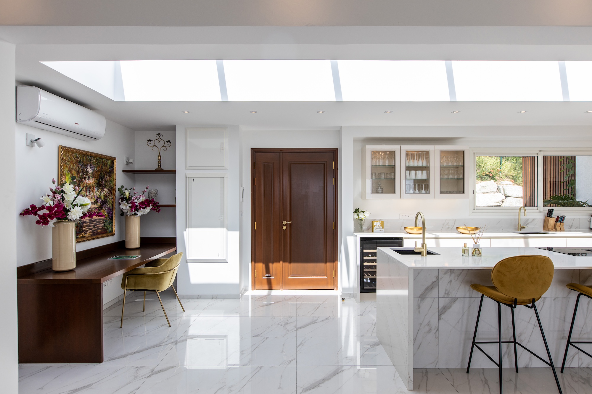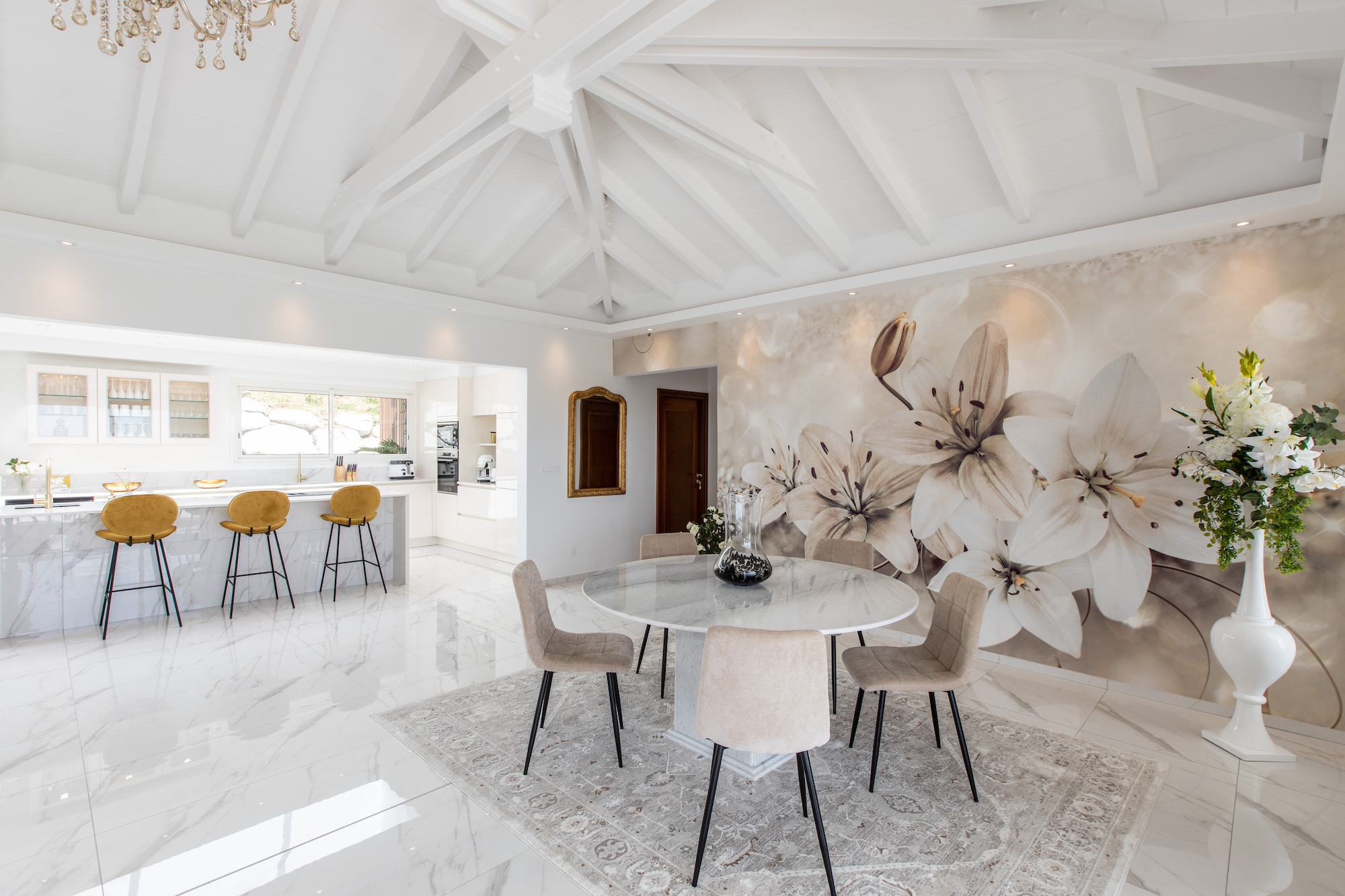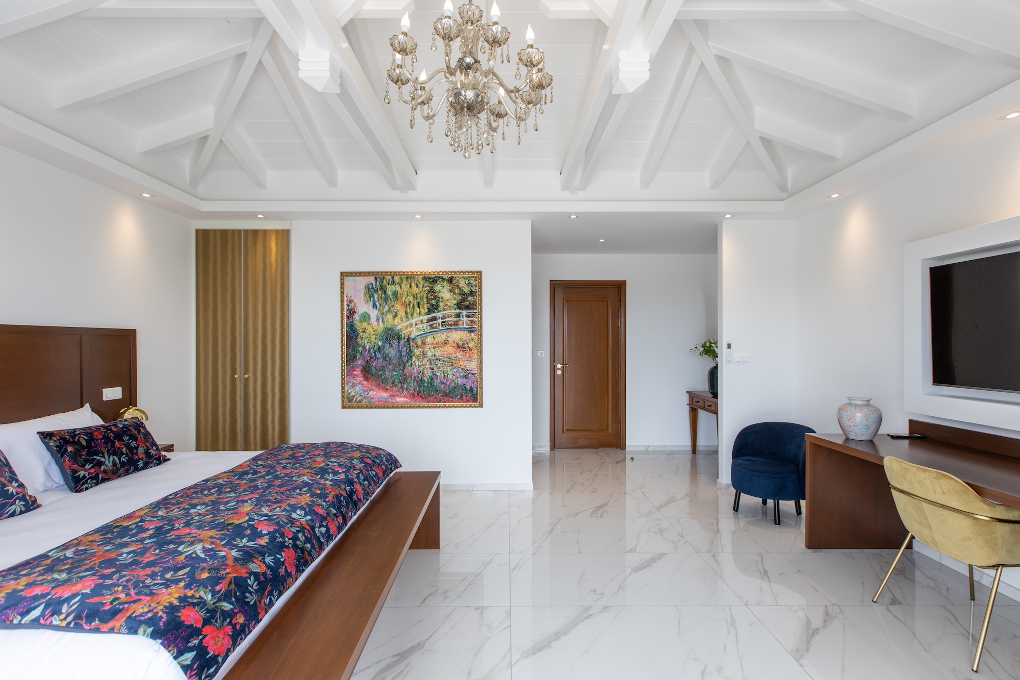 Inside, the villa showcases a graceful fusion of timeless French sophistication and modern design. Contemporary art pieces complement rich textures, refined furnishings, and carefully crafted details, creating an interior that feels both luxurious and tastefully modern. Every element has been thoughtfully selected to evoke comfort, elegance, and understated opulence.