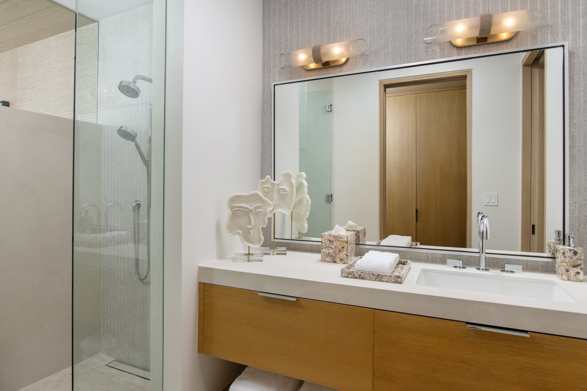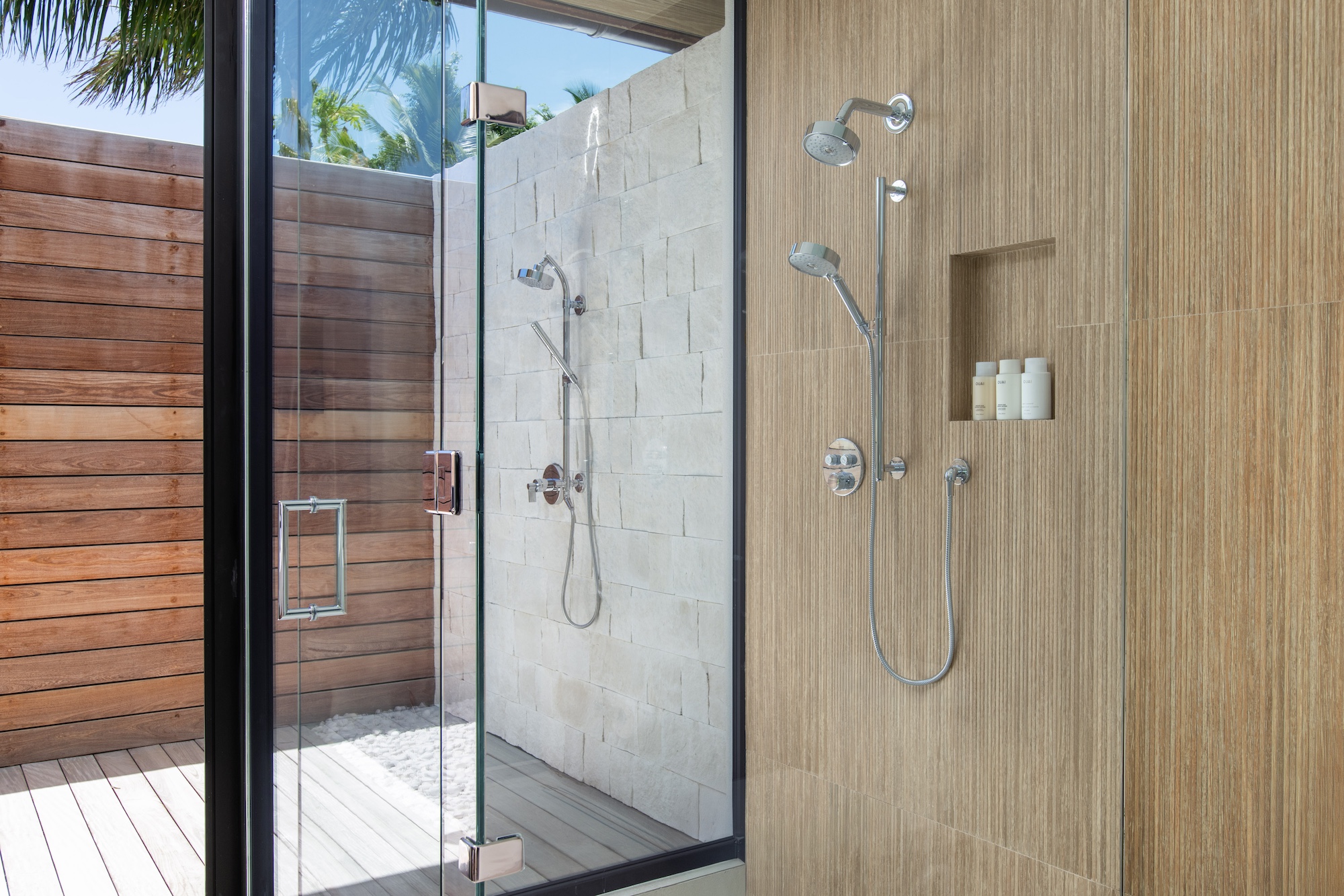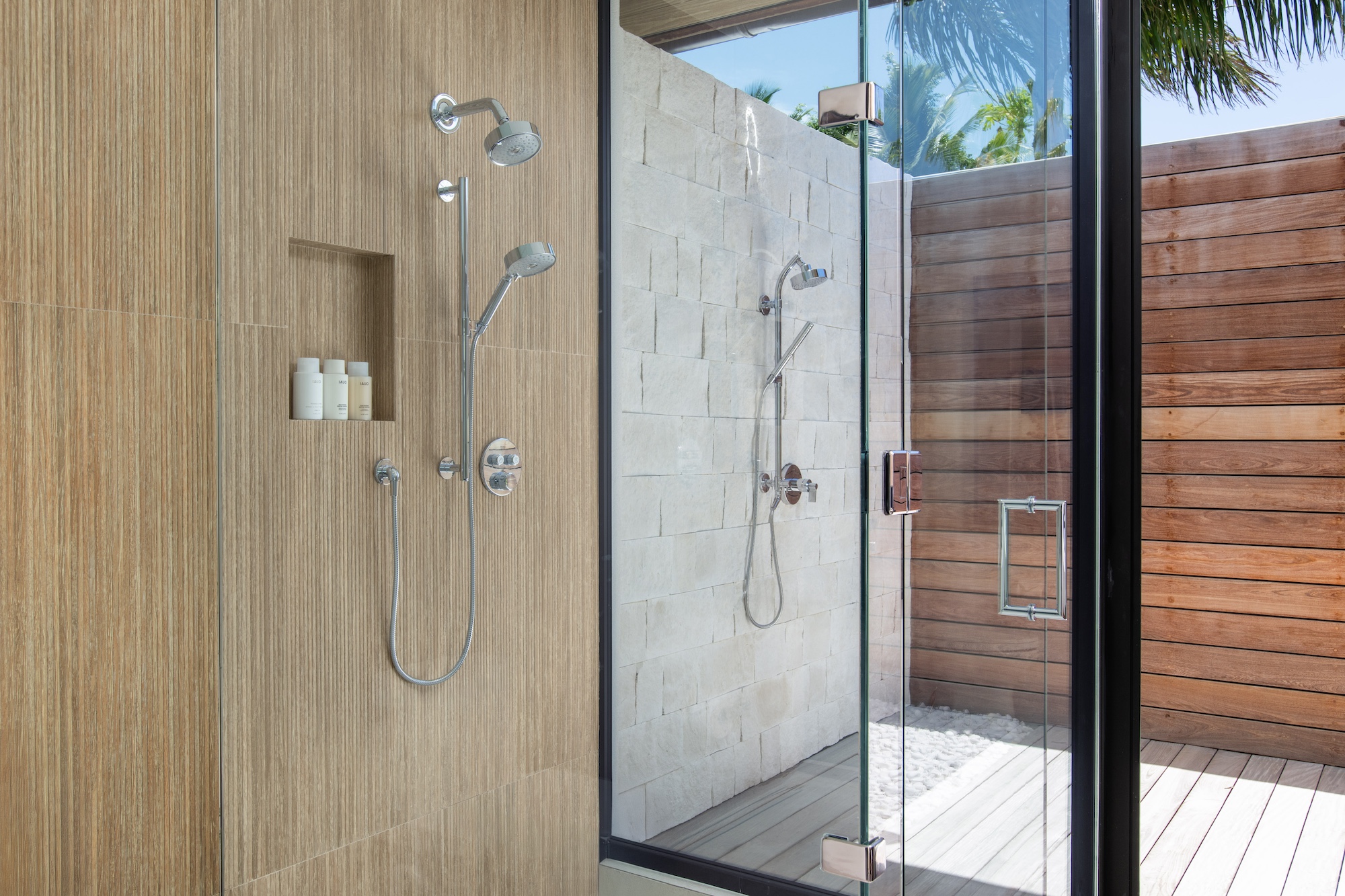 Every bedroom is a private sanctuary with uninterrupted ocean views, king-size beds topped with plush mattresses, motorized shades, and both indoor and outdoor showers. Select suites elevate the experience further with outdoor soaking tubs, personal terraces, and in-room coffee stations.