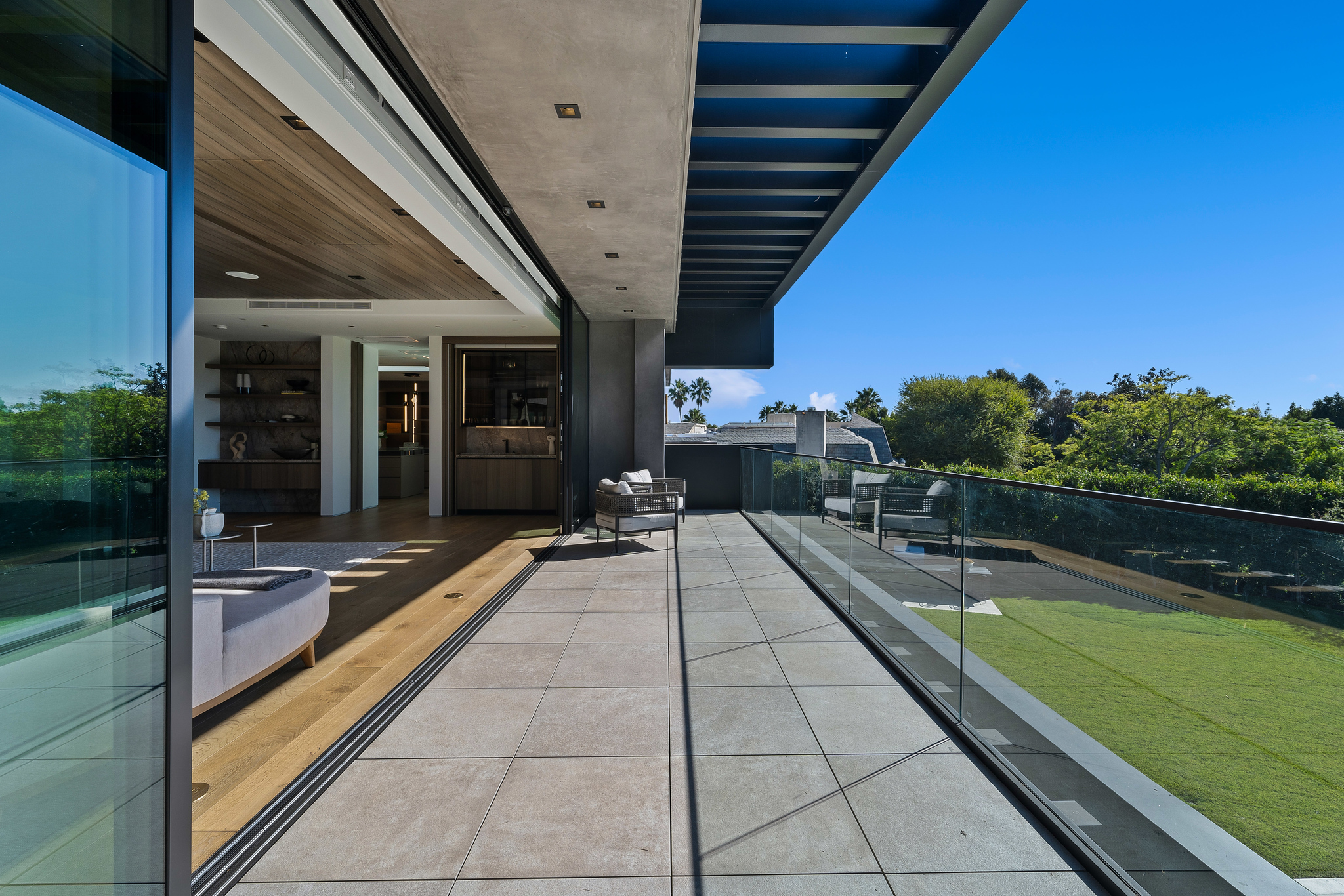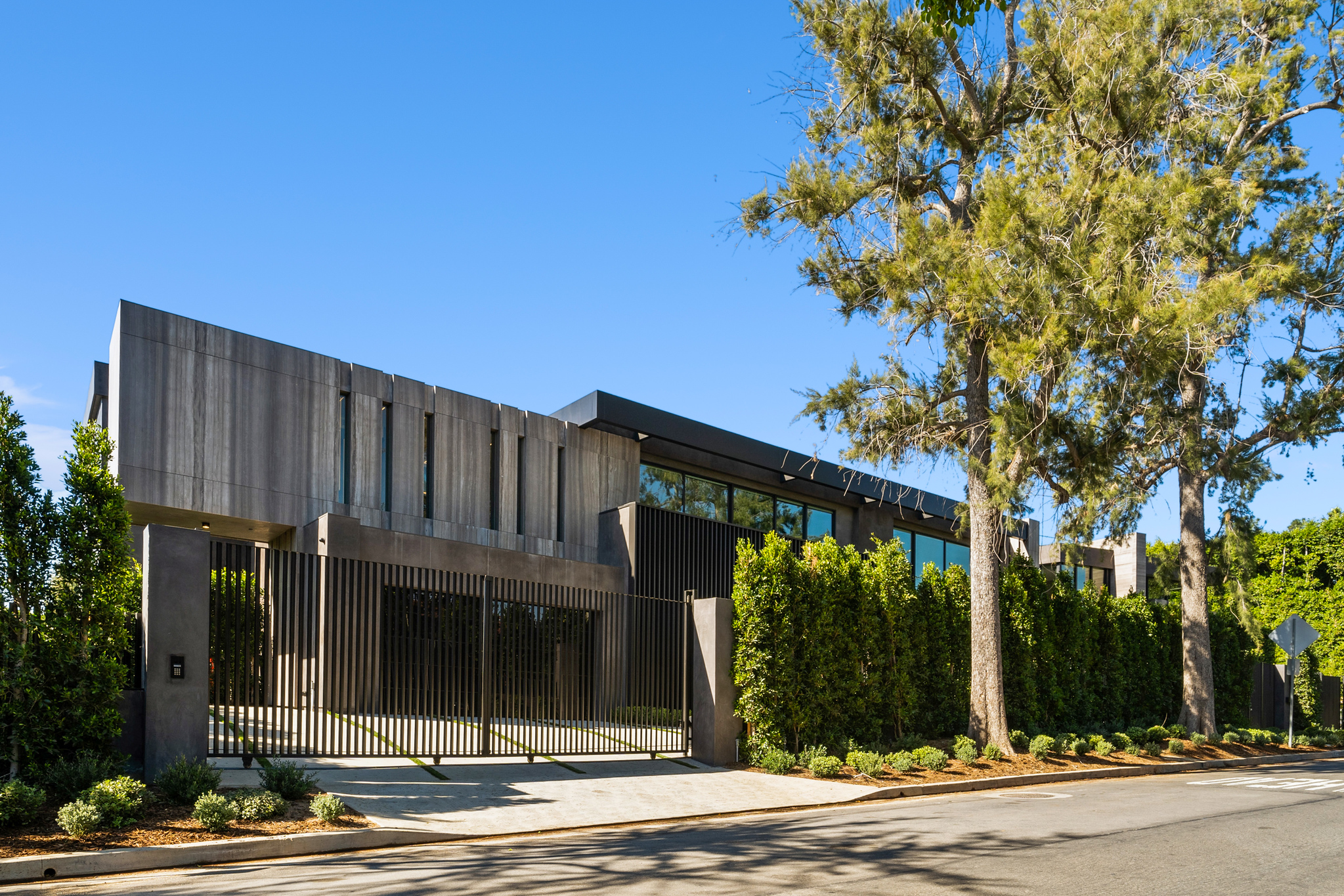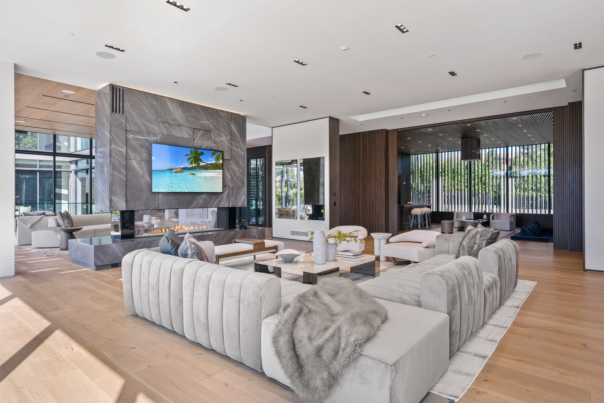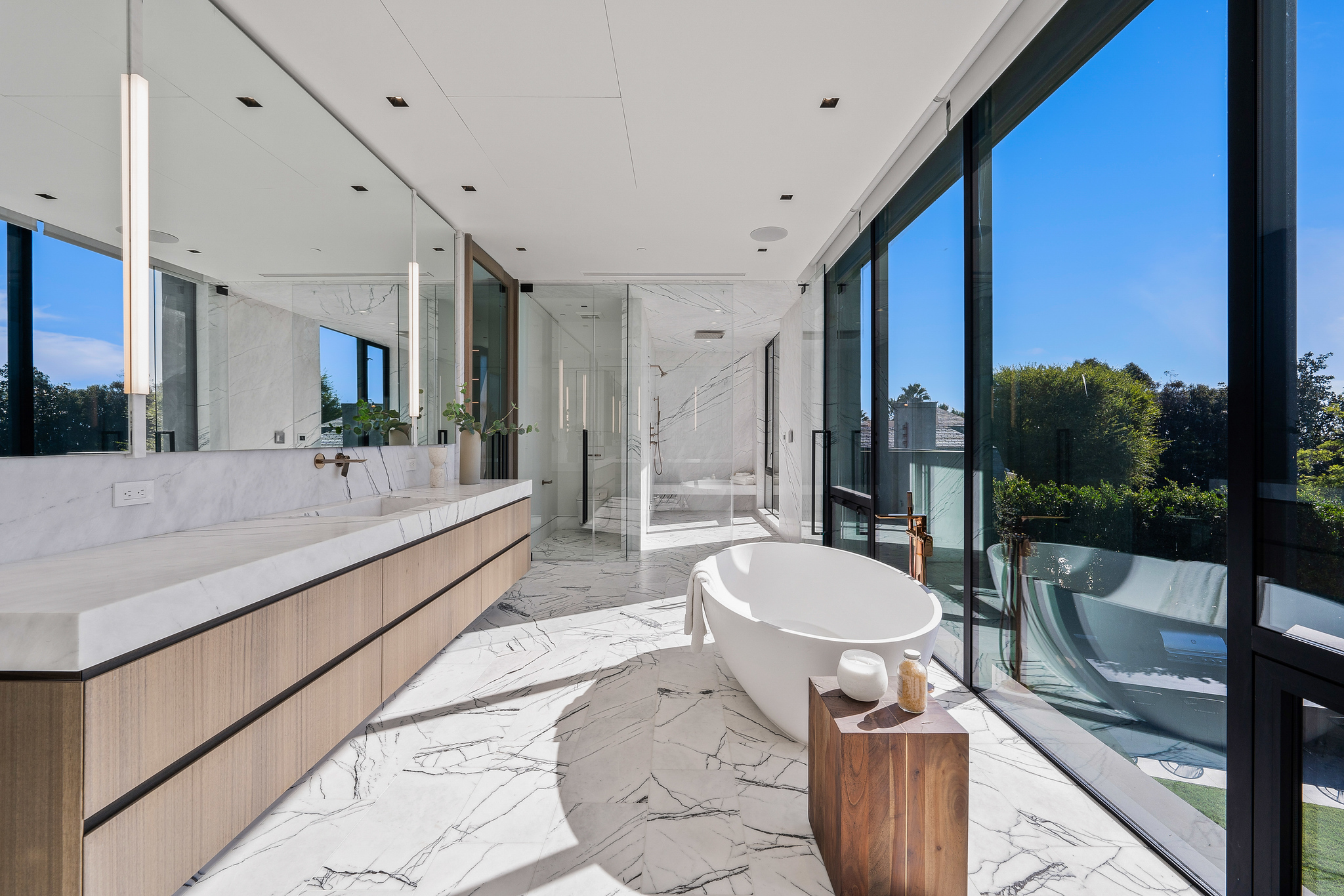 The lower level is a haven for entertainment, offering a stylish bar, a resort-style gym, and a spa that includes a pool, a yoga and massage room. Outside, the manicured grounds feature a pool and spa area alongside a complete BBQ kitchen setup. Situated within a 10-minute radius of Harvard-Westlake Middle School, Westwood, and Beverly Hills, Forza Modern offers a blend of sophistication and convenience in an idyllic location.