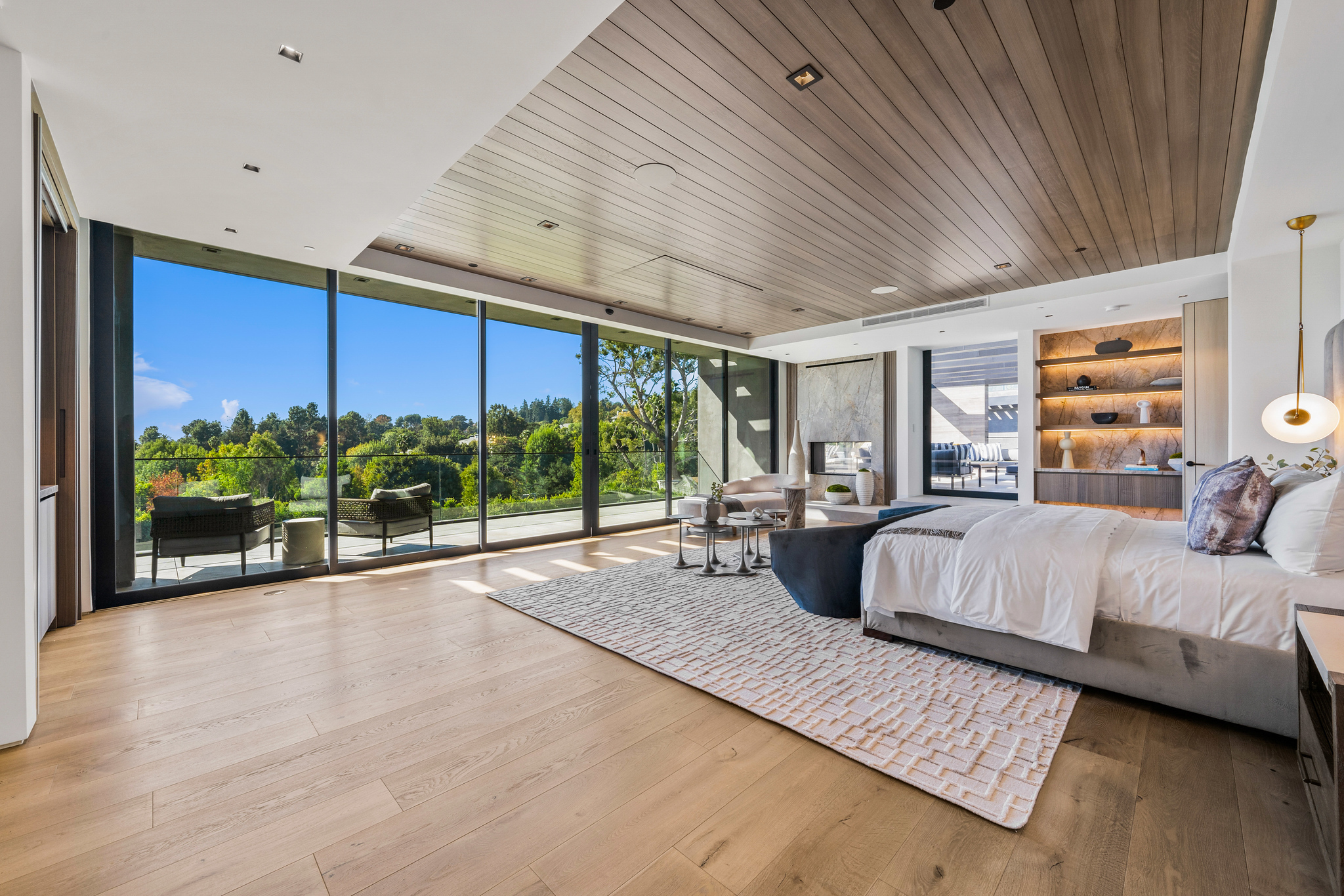 Nestled within the prestigious, secluded neighborhood of Holmby Hills, Forza Modern is an exquisite, newly constructed architectural marvel. This estate offers a wealth of amenities and captivating living areas that harmonize with the property’s breathtaking vistas of valleys, mountains, and treetops.