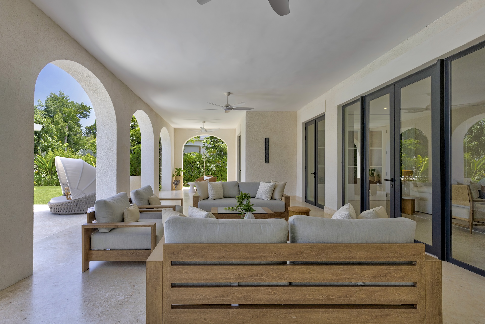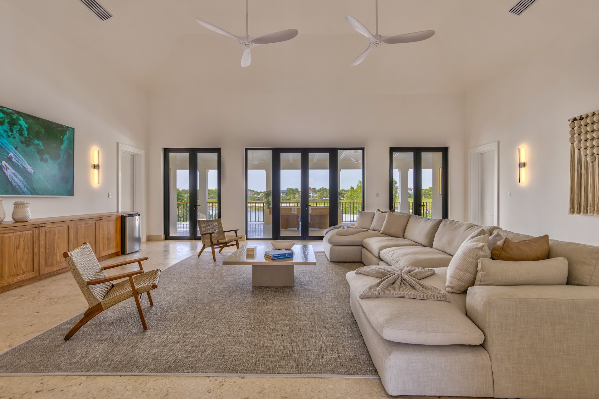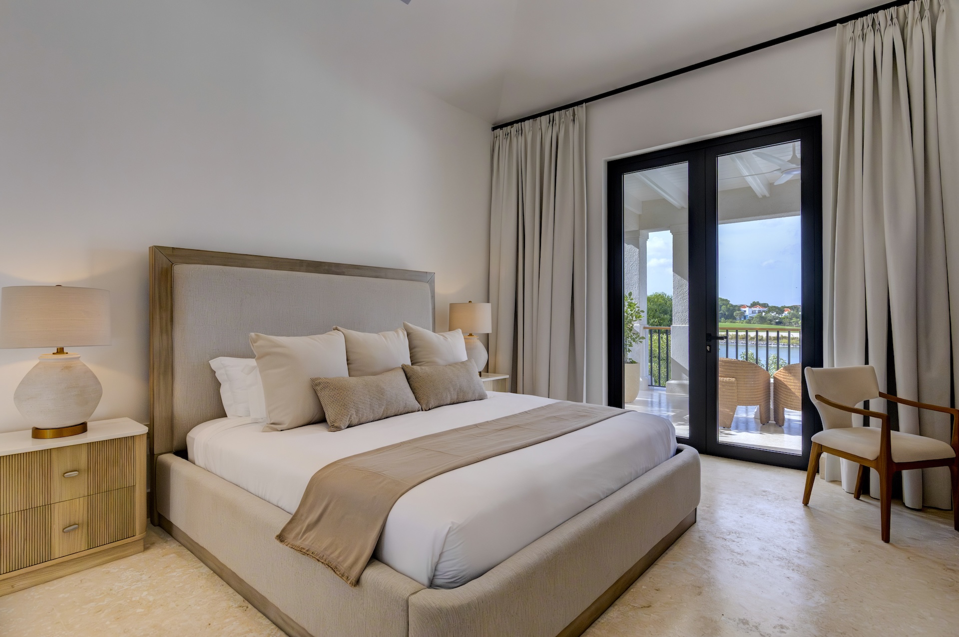 This distinguished villa seamlessly blends timeless Caribbean architecture with contemporary elegance, offering a haven of serenity in the heart of paradise. Framed by sweeping views of the golf course and tranquil lake, the residence is designed to embrace light, air, and openness, with soaring ceilings and fluid transitions between indoor and outdoor living. Surrounded by lush tropical gardens and secluded pavilions, every corner invites relaxation and refined comfort. A sanctuary of sophistication, the villa provides the perfect balance of privacy, style, and effortless luxury—crafted for those seeking an unforgettable stay.