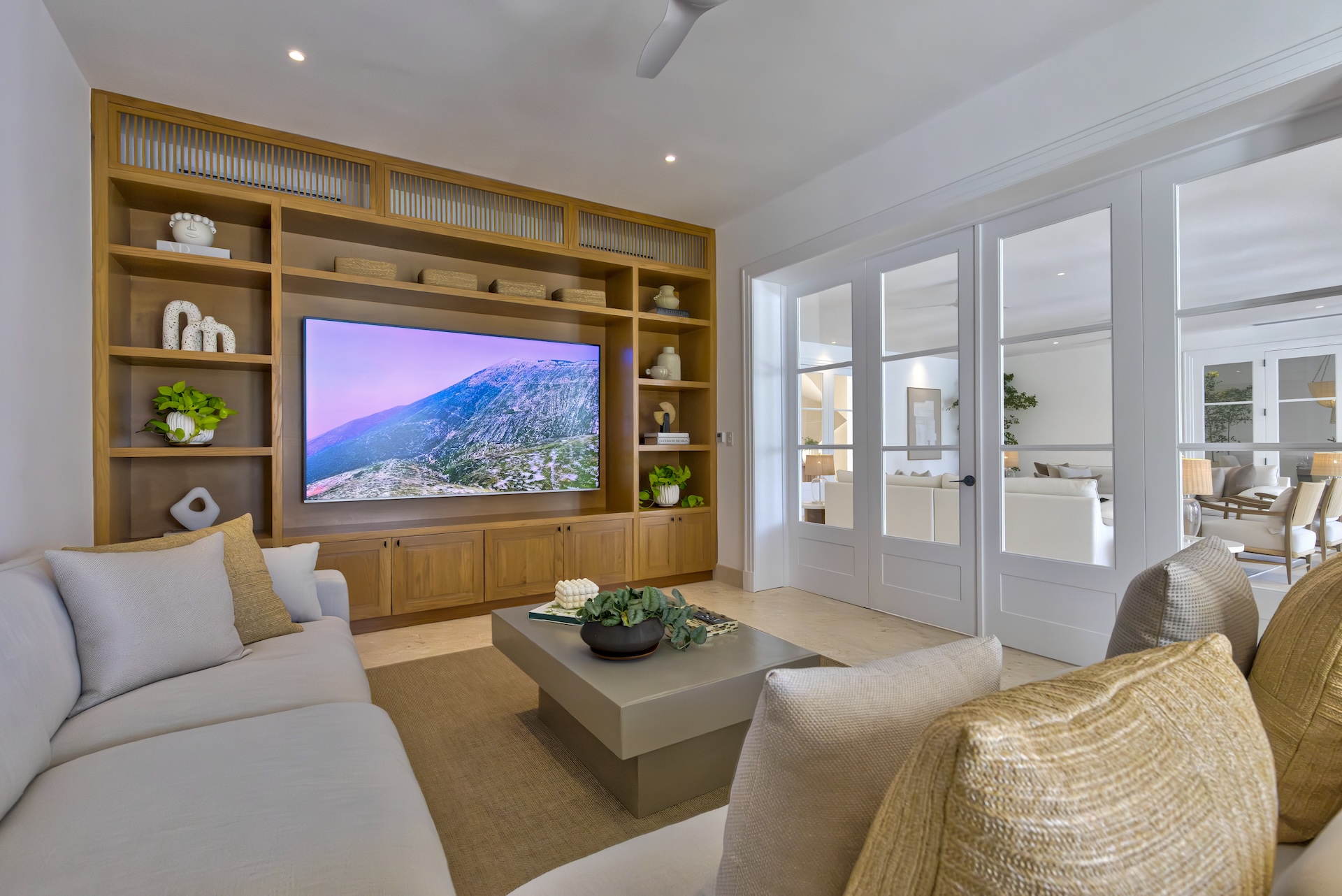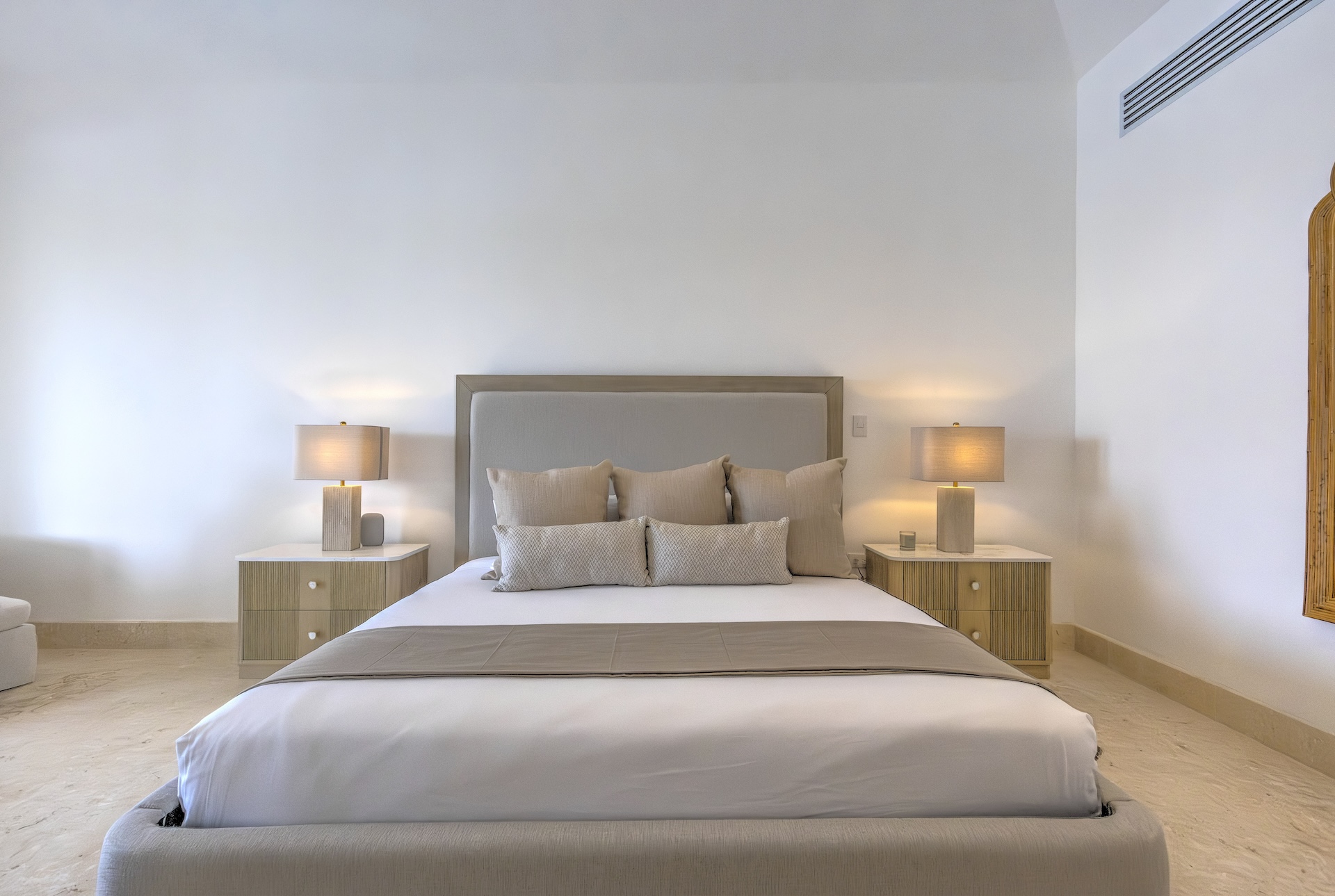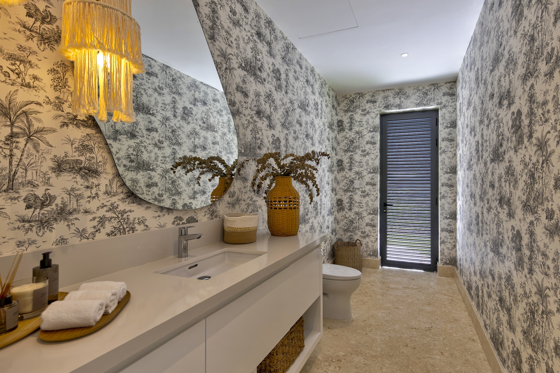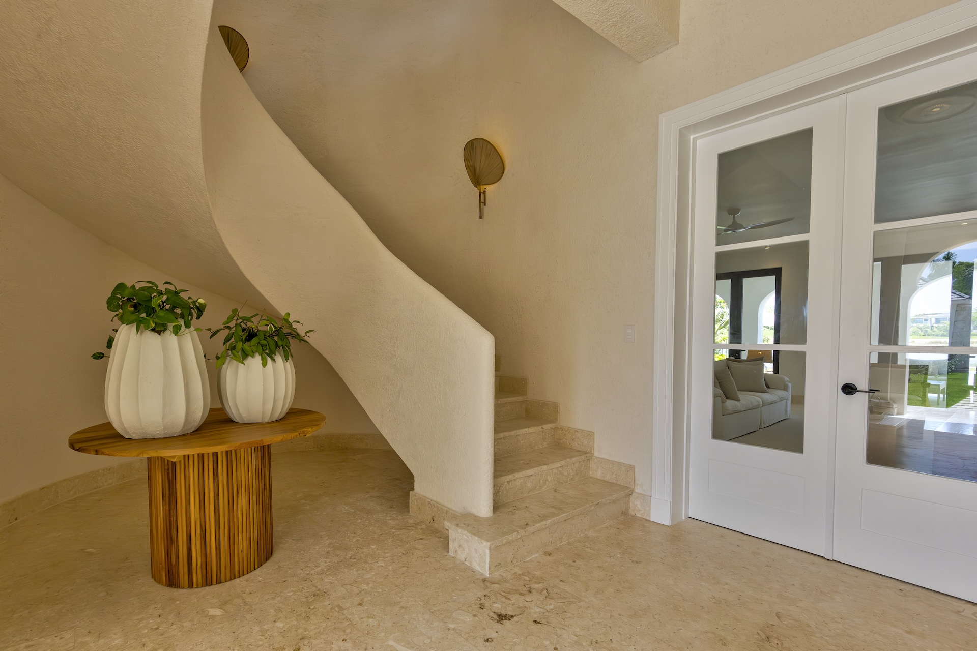 This distinguished villa seamlessly blends timeless Caribbean architecture with contemporary elegance, offering a haven of serenity in the heart of paradise. Framed by sweeping views of the golf course and tranquil lake, the residence is designed to embrace light, air, and openness, with soaring ceilings and fluid transitions between indoor and outdoor living. Surrounded by lush tropical gardens and secluded pavilions, every corner invites relaxation and refined comfort. A sanctuary of sophistication, the villa provides the perfect balance of privacy, style, and effortless luxury—crafted for those seeking an unforgettable stay.