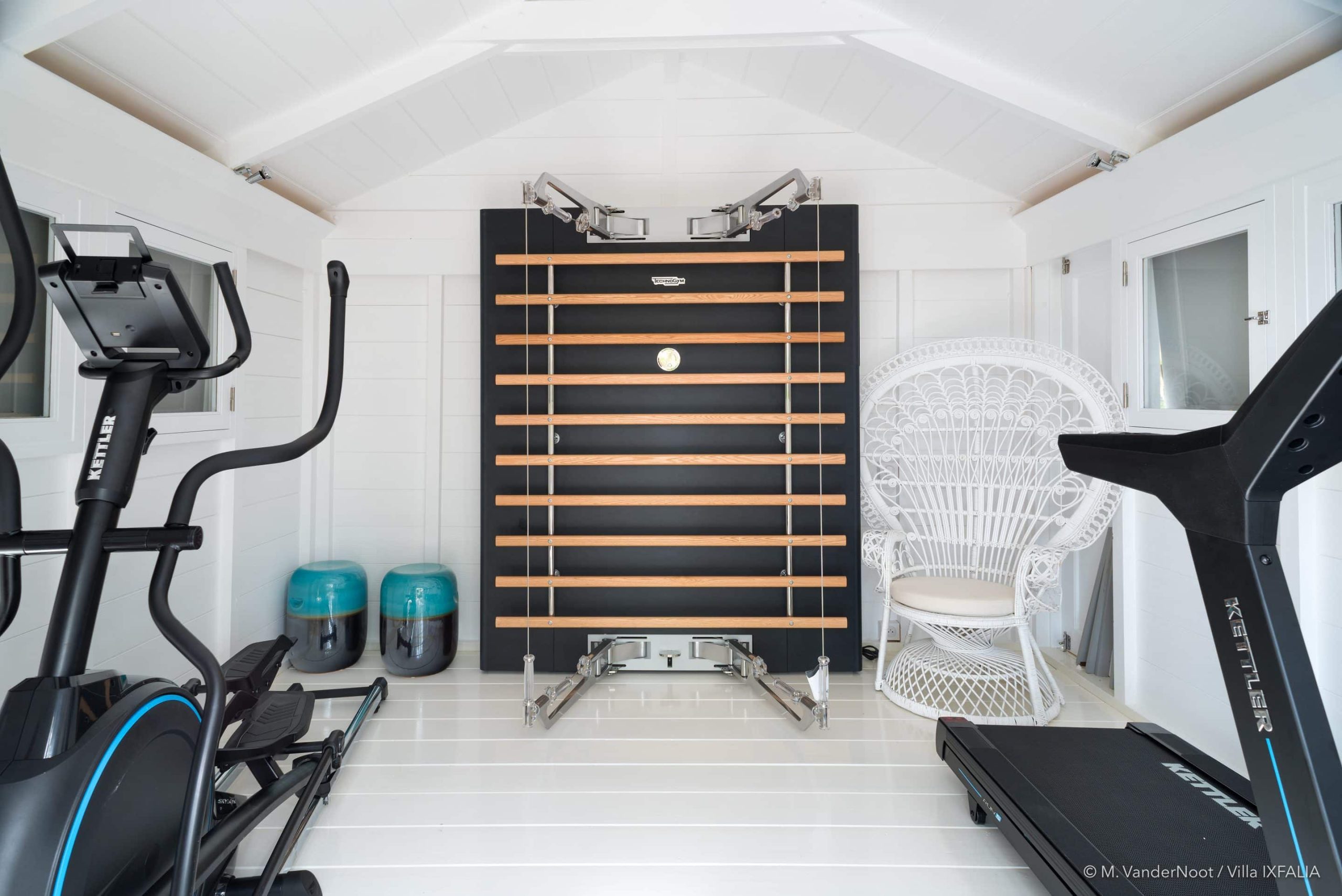 Clean lines mixed with Bohemian accents of wood and natural materials, this villa exudes warm modern island charm.  A nearly 100 foot long heated pool and well appointed fitness room will appeal to the health conscious and athletics.