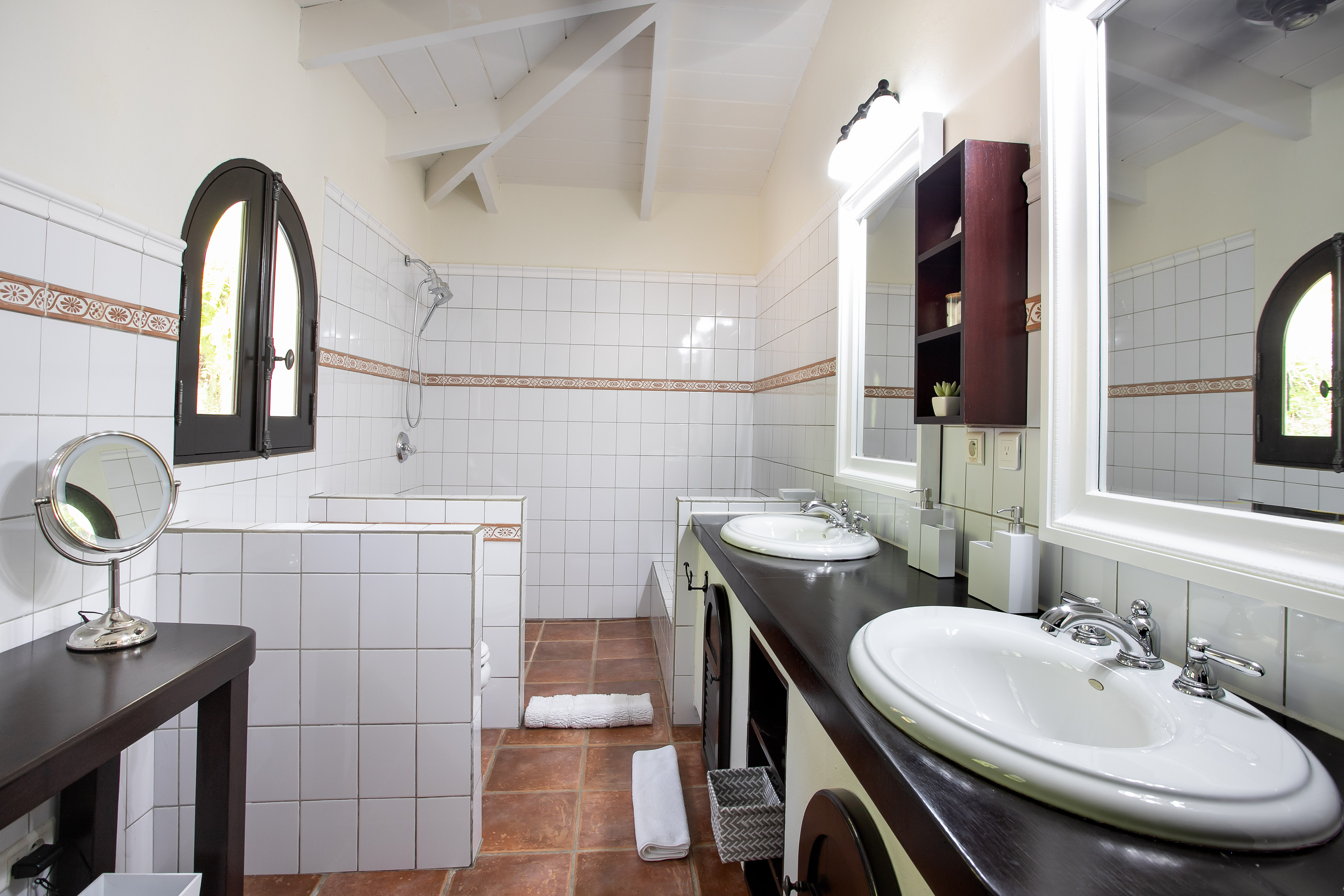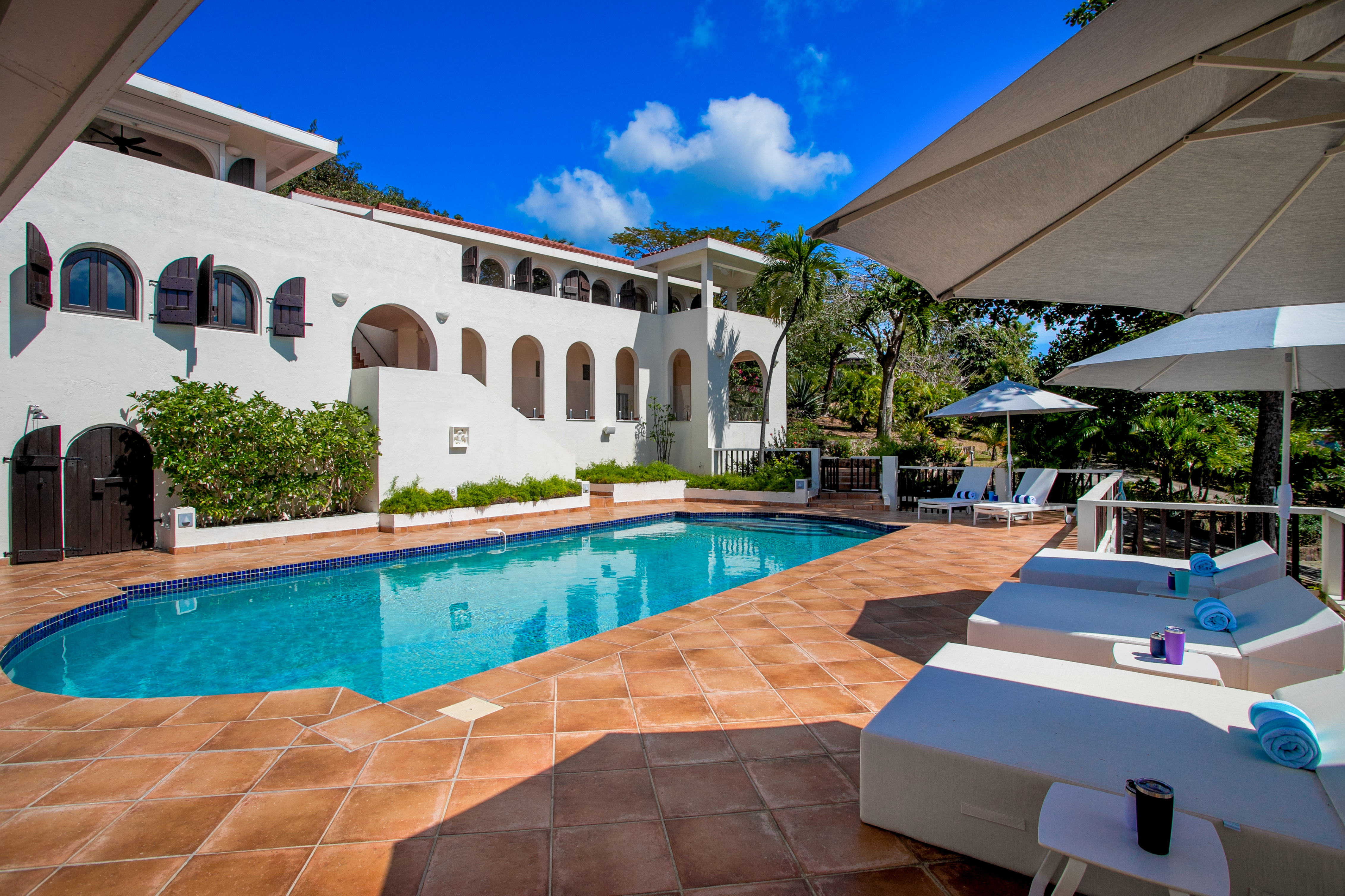 One of the main attractions of Villa Joie de Vivre is its direct access to the very peaceful and secluded Baie Rouge beach. The villa is perfect for those who want to be right on the beach, while maintaining their privacy. Guests can snorkel in the calm waters or sunbathe on the provided chaise lounges, then slip back through their private locked gate to relax in the hot tub. The property’s other centrepiece is the pool deck with its 18’ x 35’ heated salt water pool, lined by double sun-beds, a shaded gazebo lounge, BBQ area with fridge and bathroom.