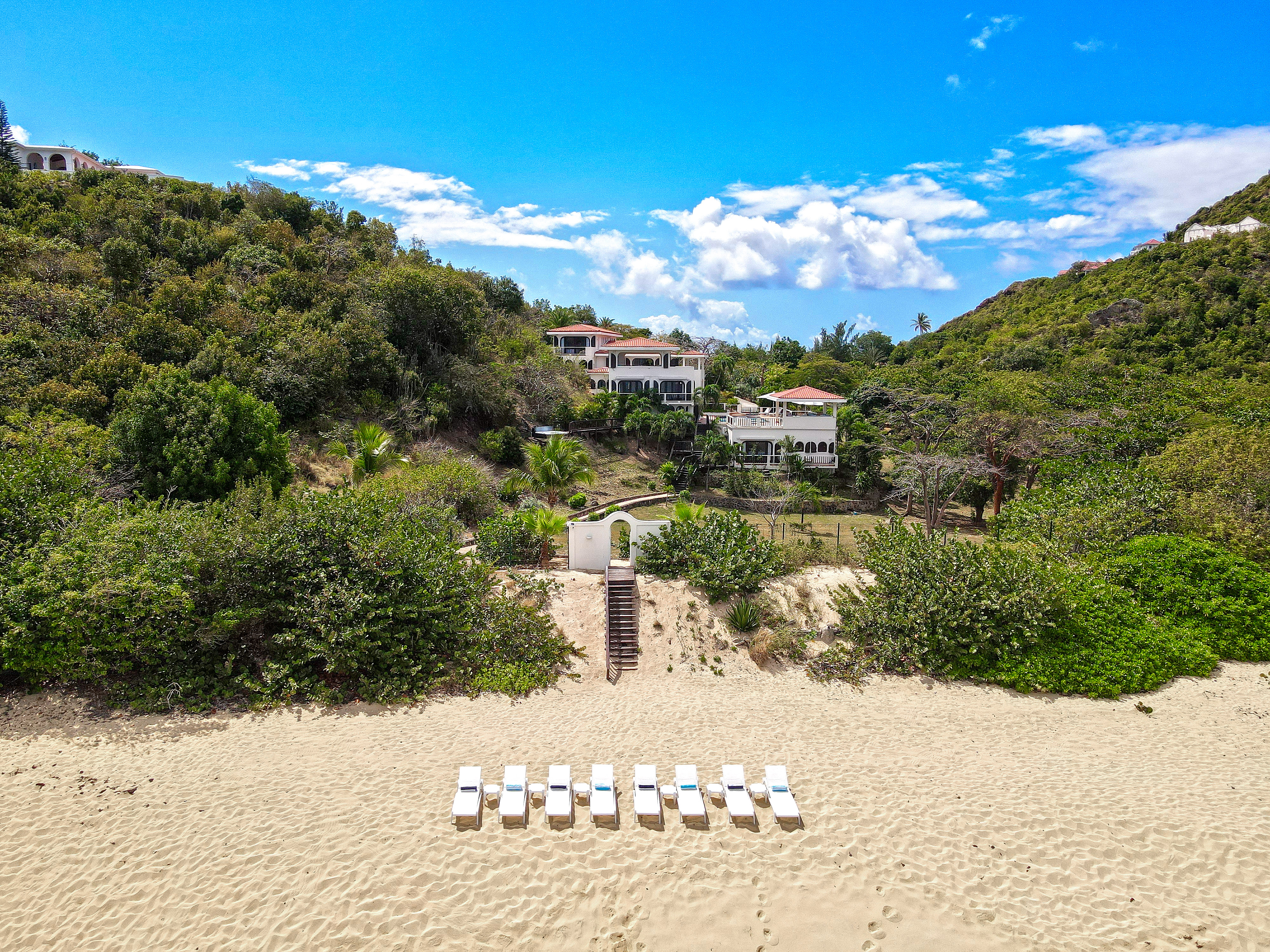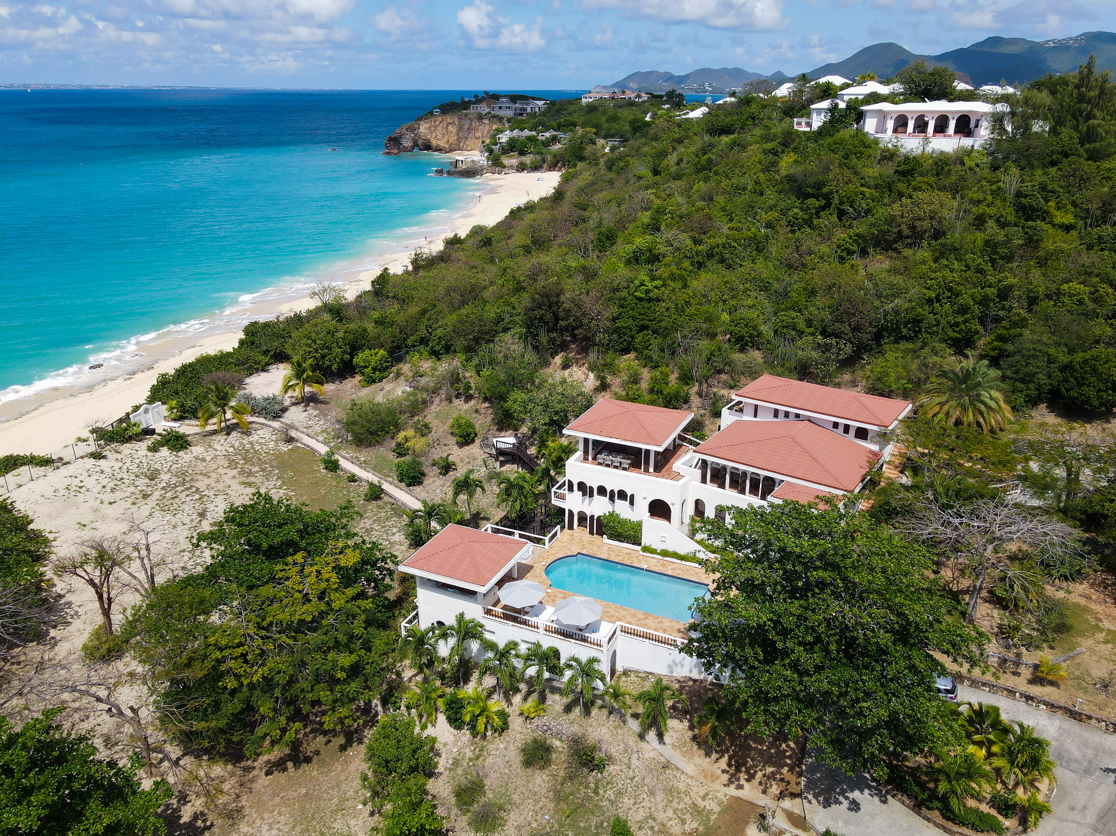 Villa Joie de Vivre is directly located on Baie Rouge beach, one of the most prestigious and serene beaches in French Saint Martin. This private villa overlooks 4 secure acres surrounded by tropical gardens and breathtaking views of the ocean.