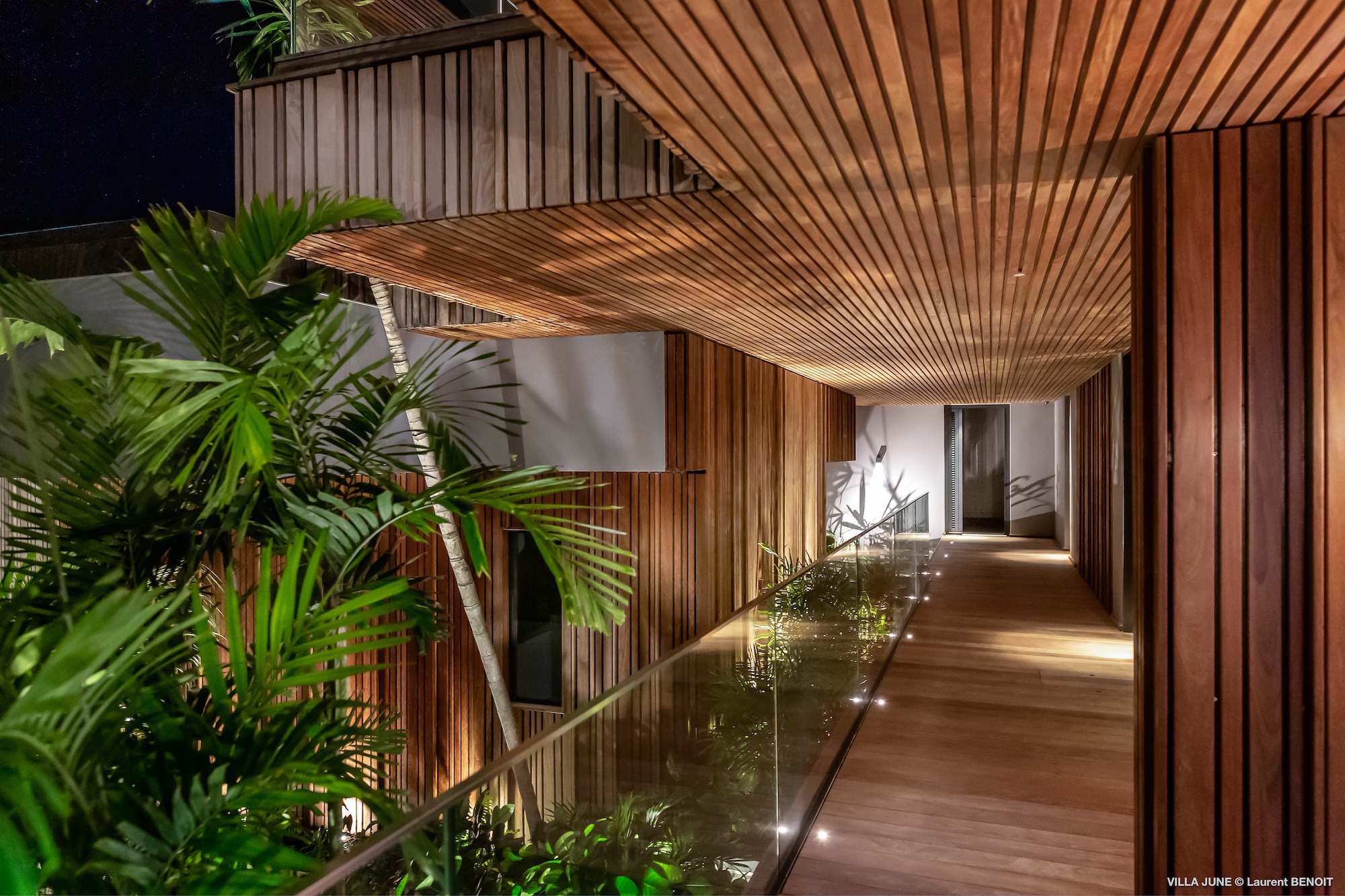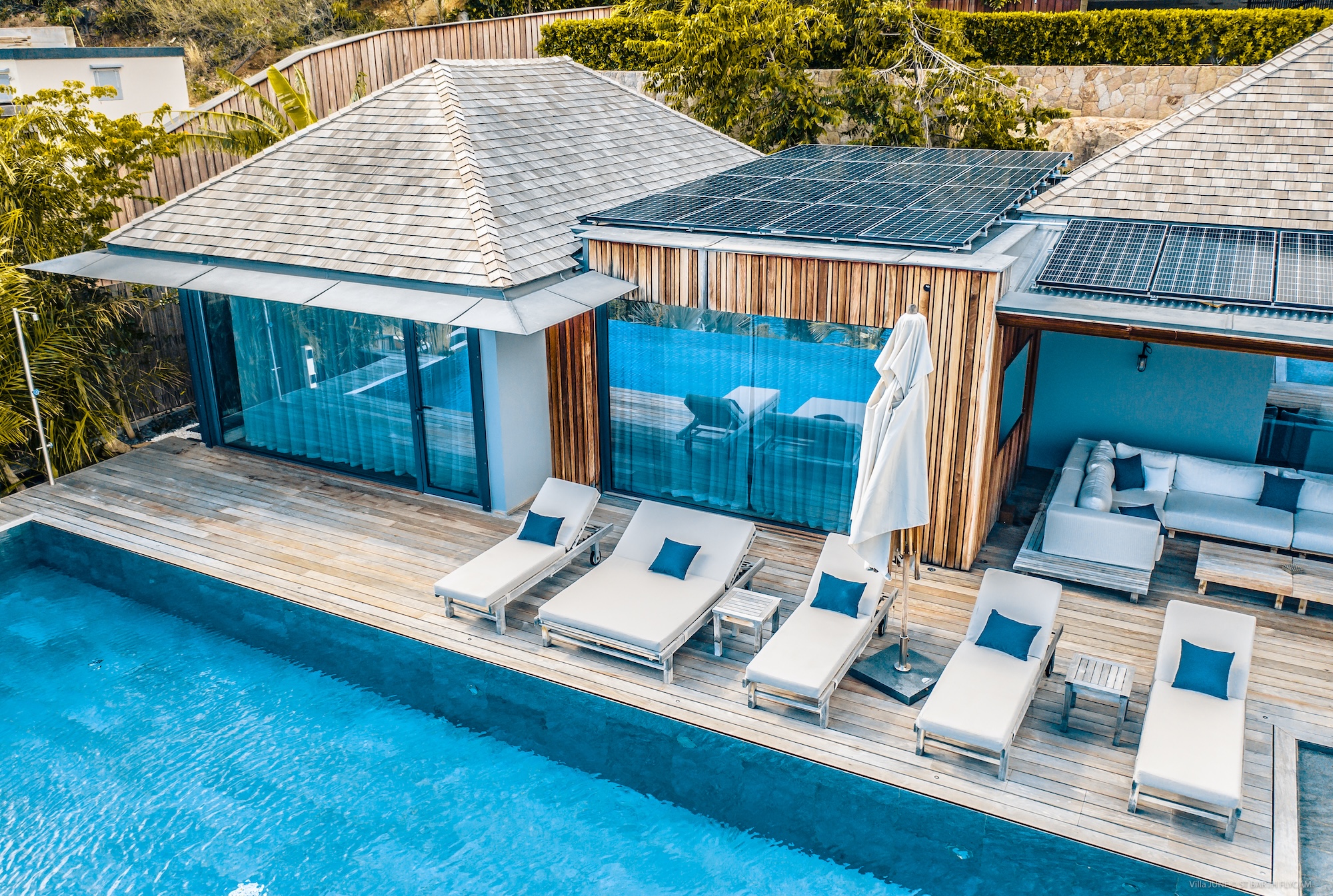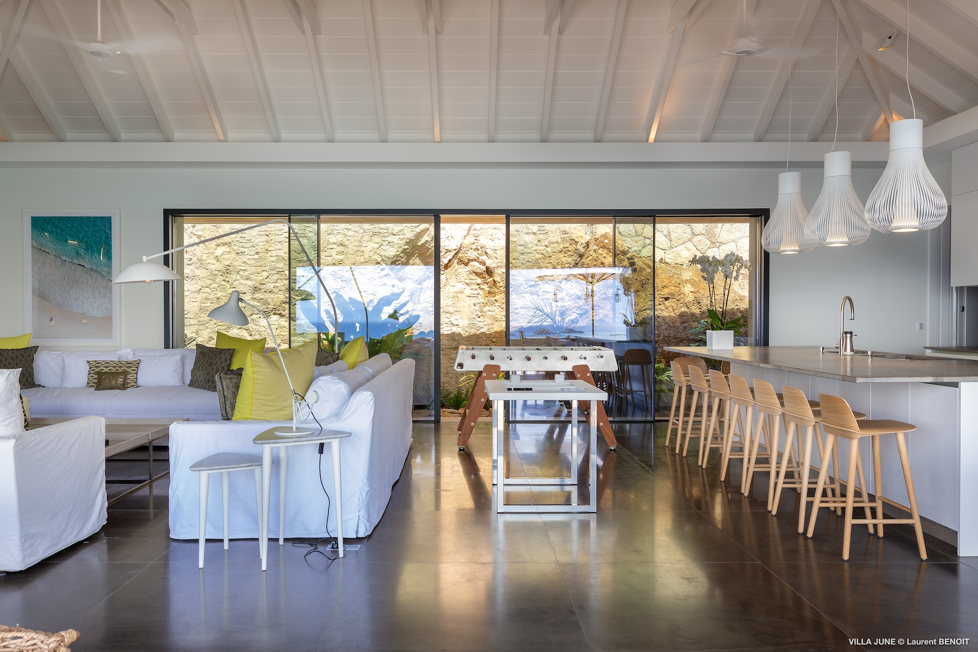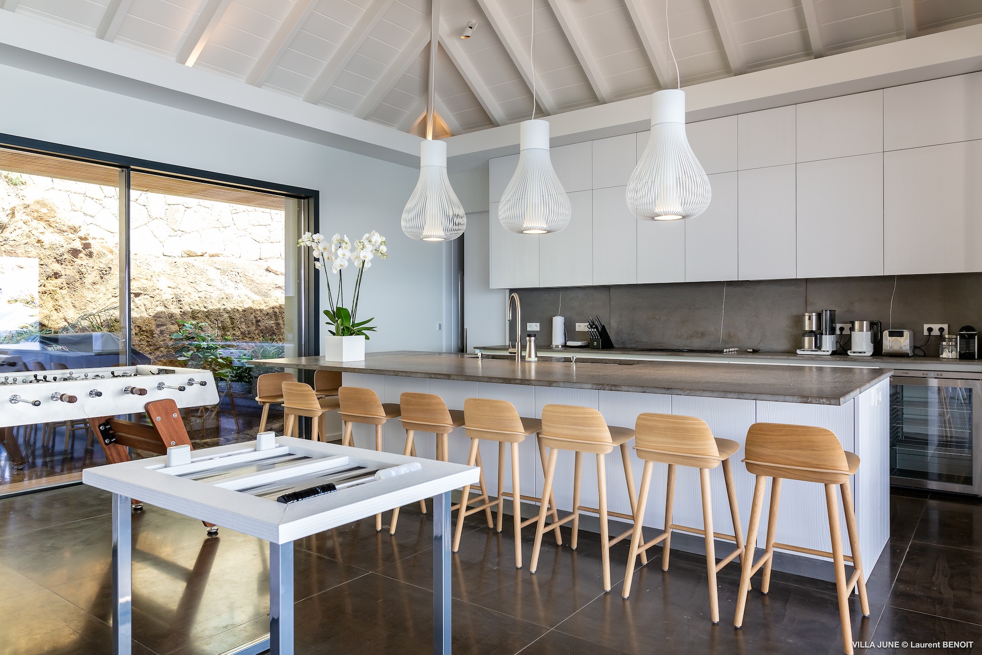 June is an ultra-modern and wood-covered Villa with the unique benefit of elevator access, which makes it perfect for families because of its functional air-conditioned spaces; including a theatre room, fitness area and six equal-size bedrooms with views over Gustavia Harbour and Corossol. All this just a short walk away from the sandy shore.