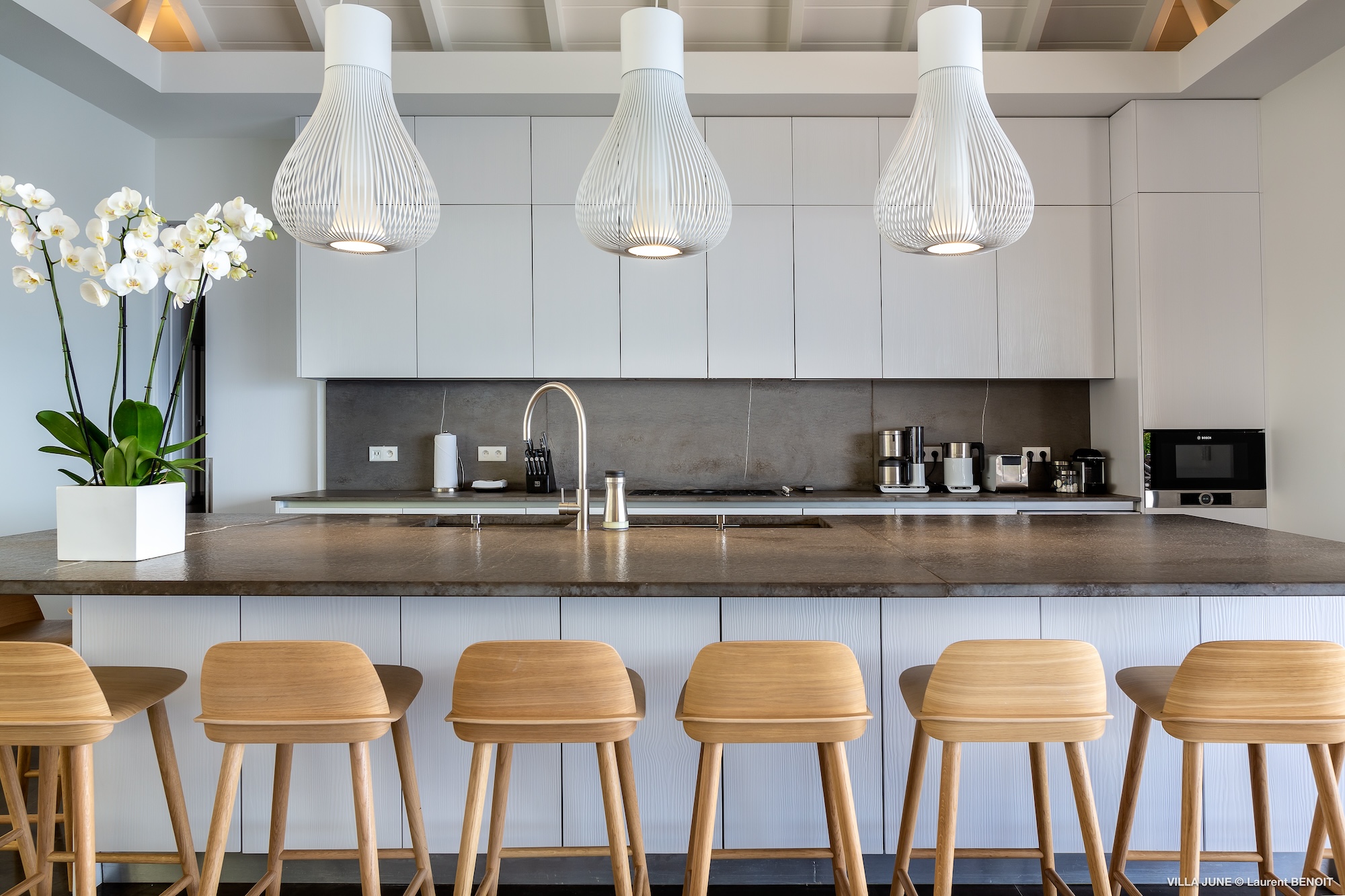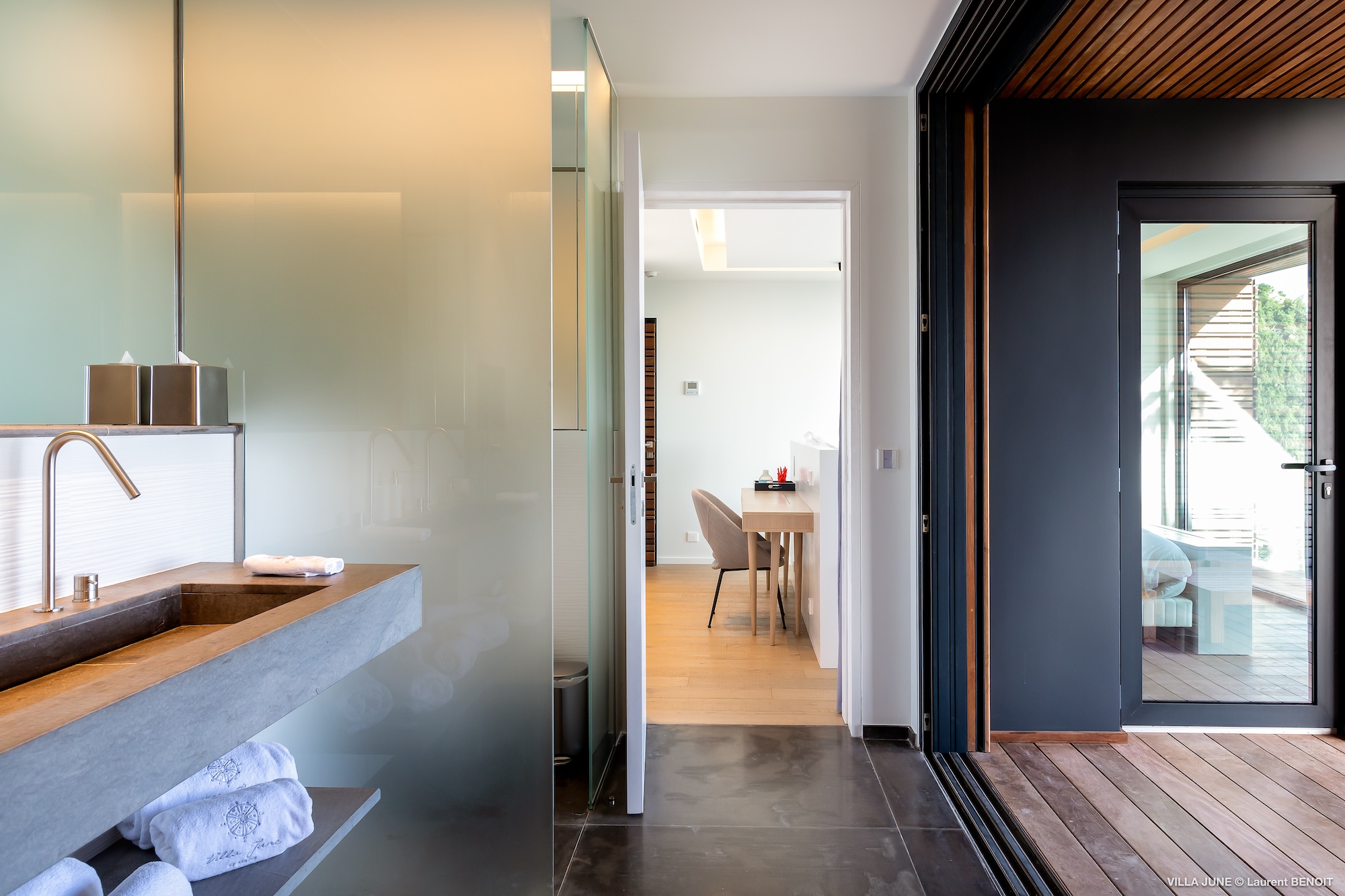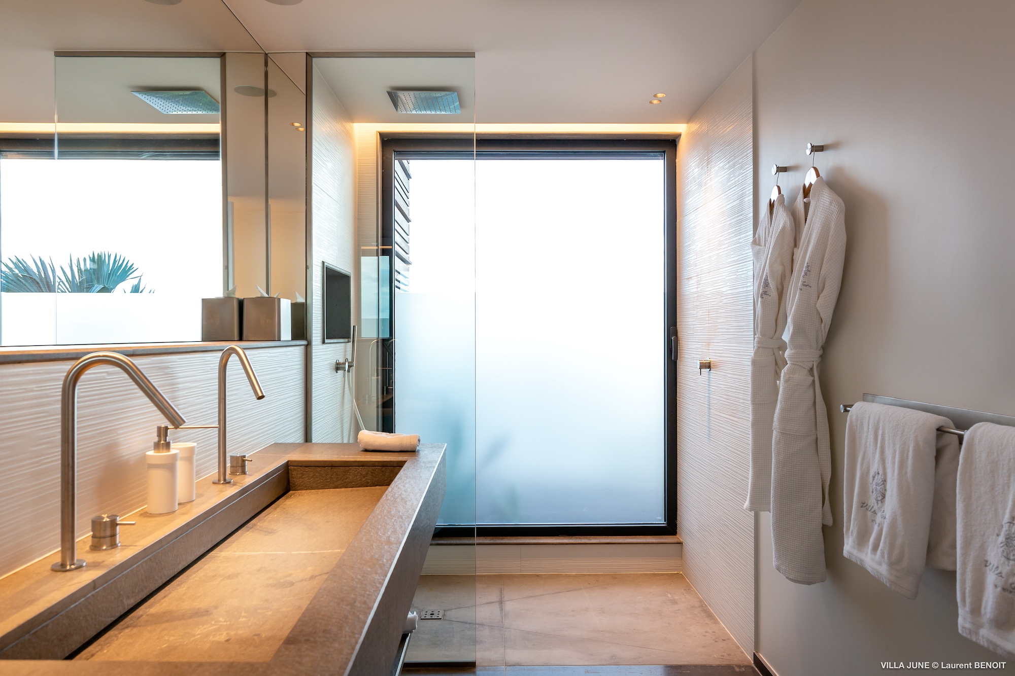 The villa is extended on three levels, connected by a staircase and an elevator. The six bedrooms are decorated with elegance and offer a stunning view on the ocean. From the very long heated pool, you will enjoy the amazing sunsets.