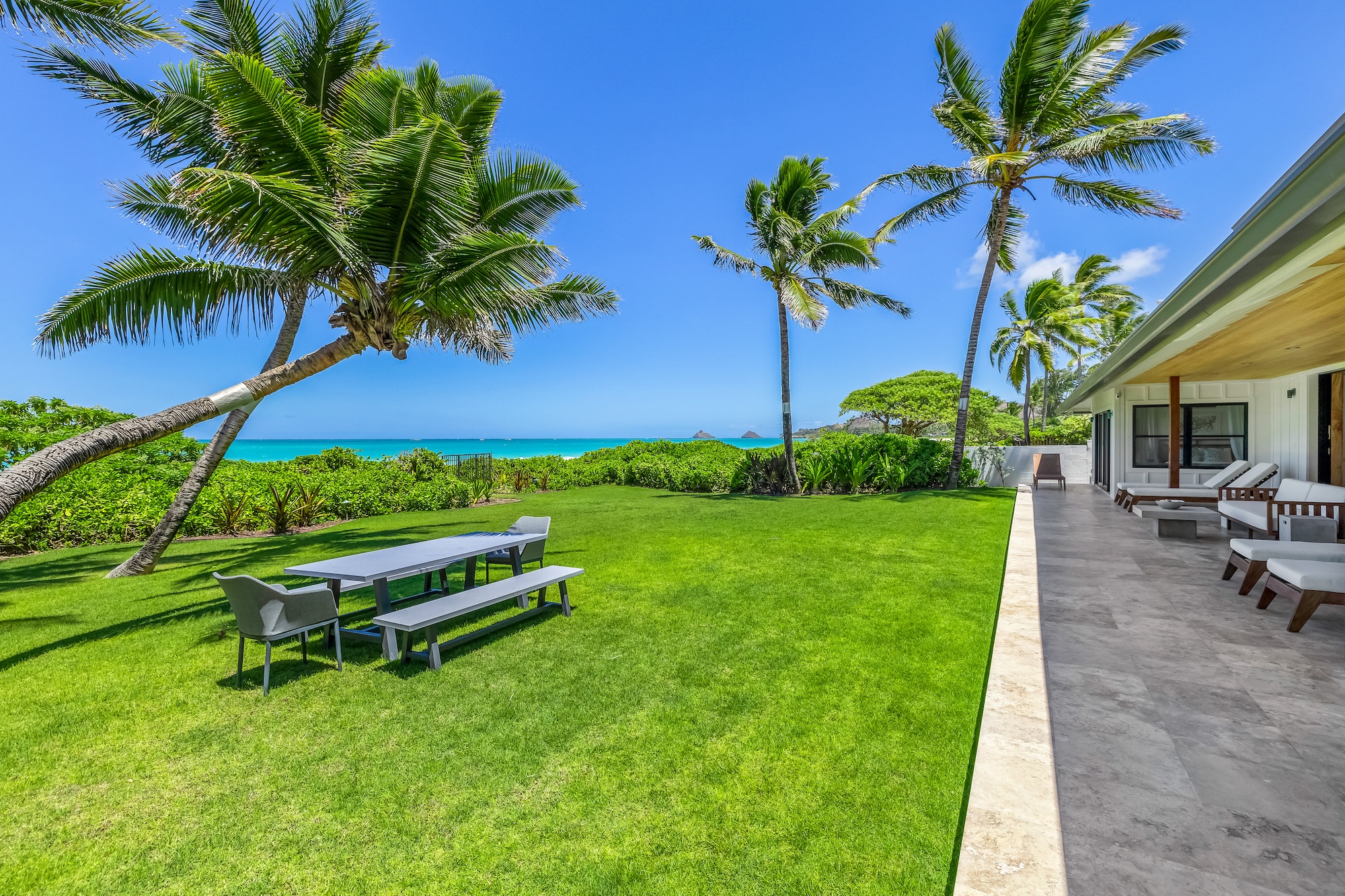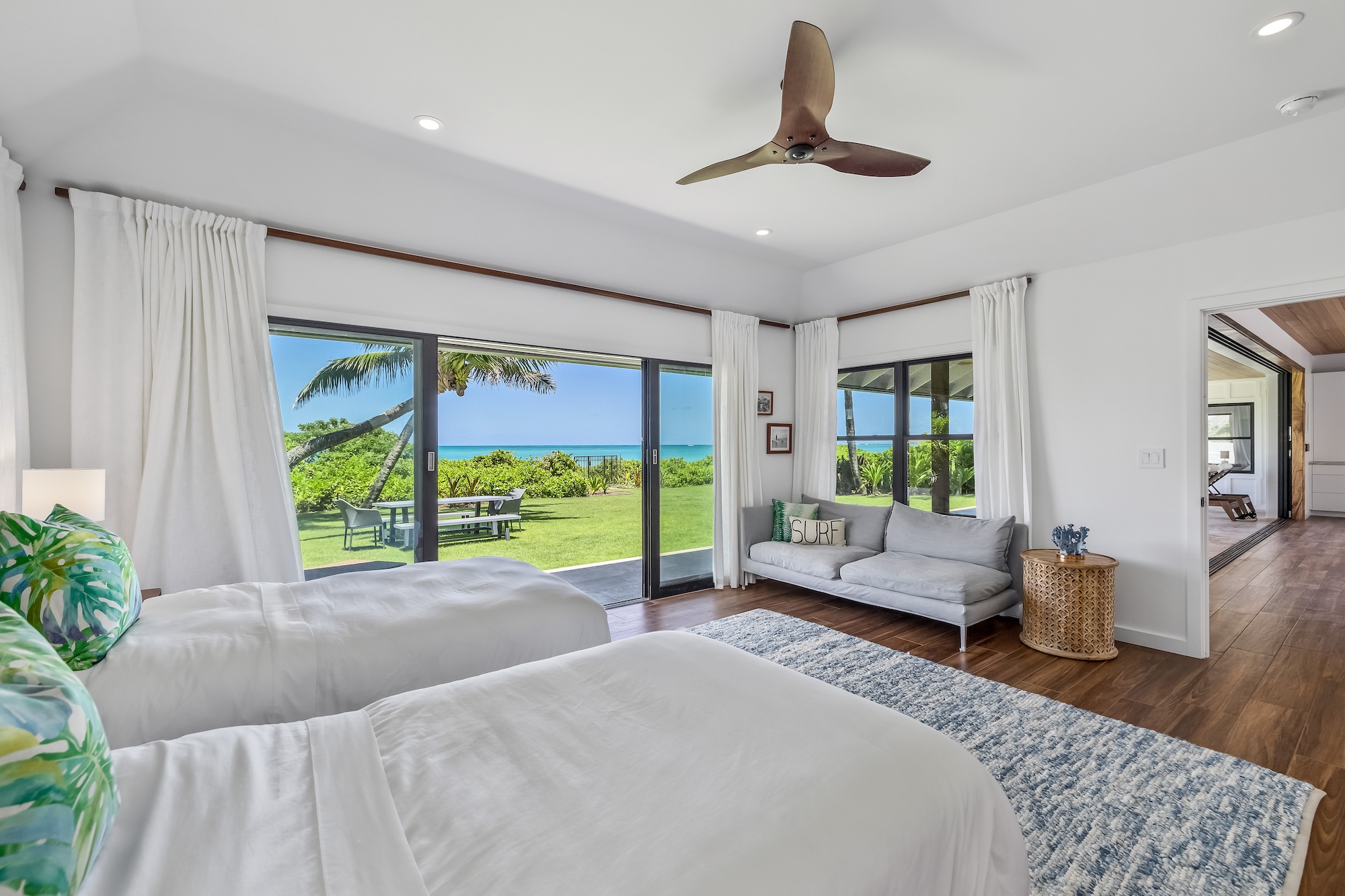 Step into the exquisite Kailua Beach Villa, your ultimate luxury Hawaiian retreat for a beachfront getaway. This expansive, two-level contemporary haven boasts cleanliness and modernity, featuring 5 bedrooms (with an optional additional bedroom), 5 bathrooms, and accommodation for up to 12 guests.