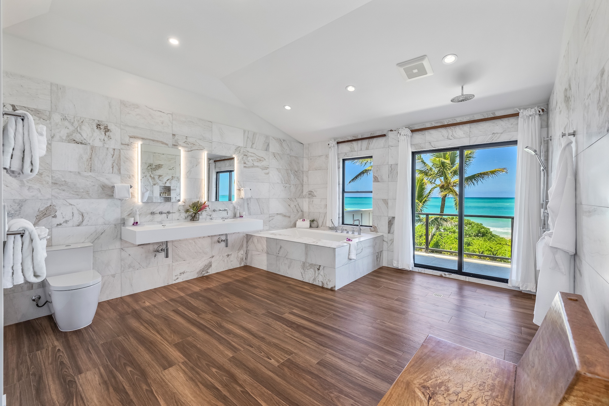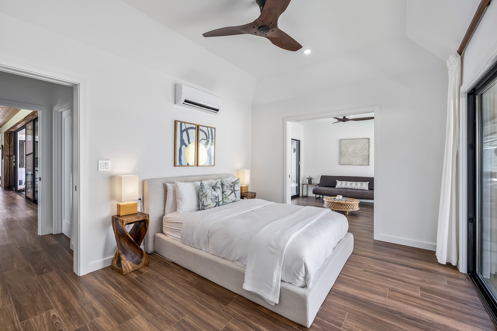 Situated on Oahu’s Eastern shore, the villa offers a spacious, open-air design that allows you to unwind in a tranquil and private tropical paradise, overlooking the crystal-clear blue waters. For optimal comfort, the entire home is equipped with air conditioning.