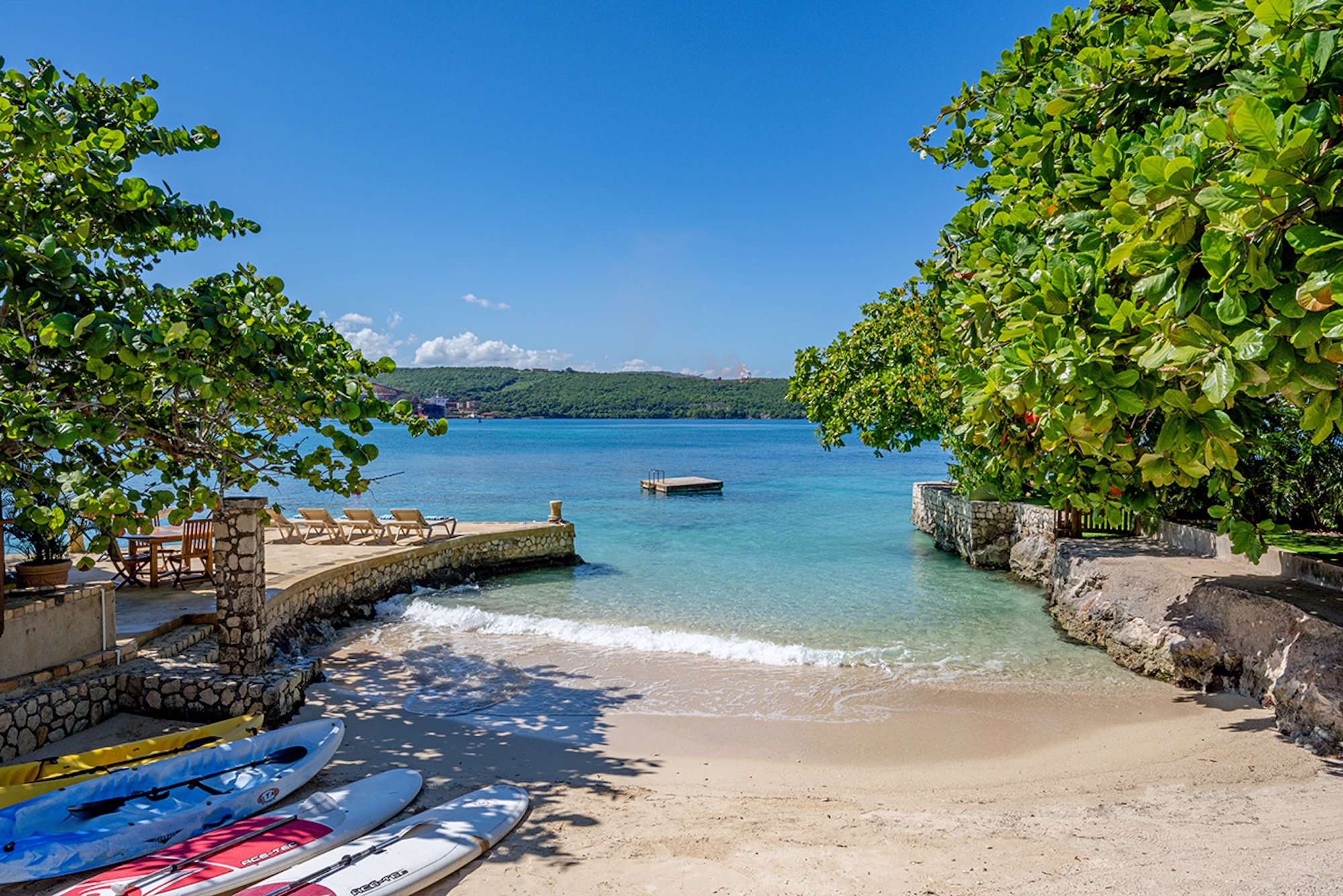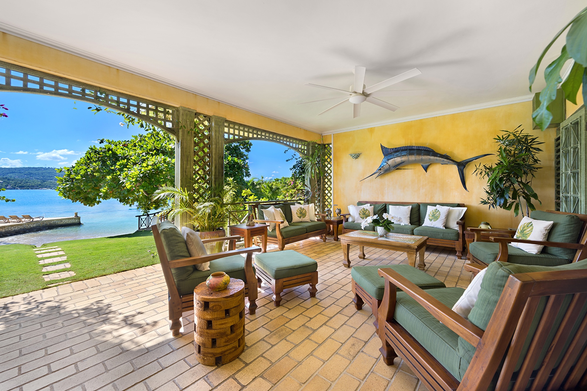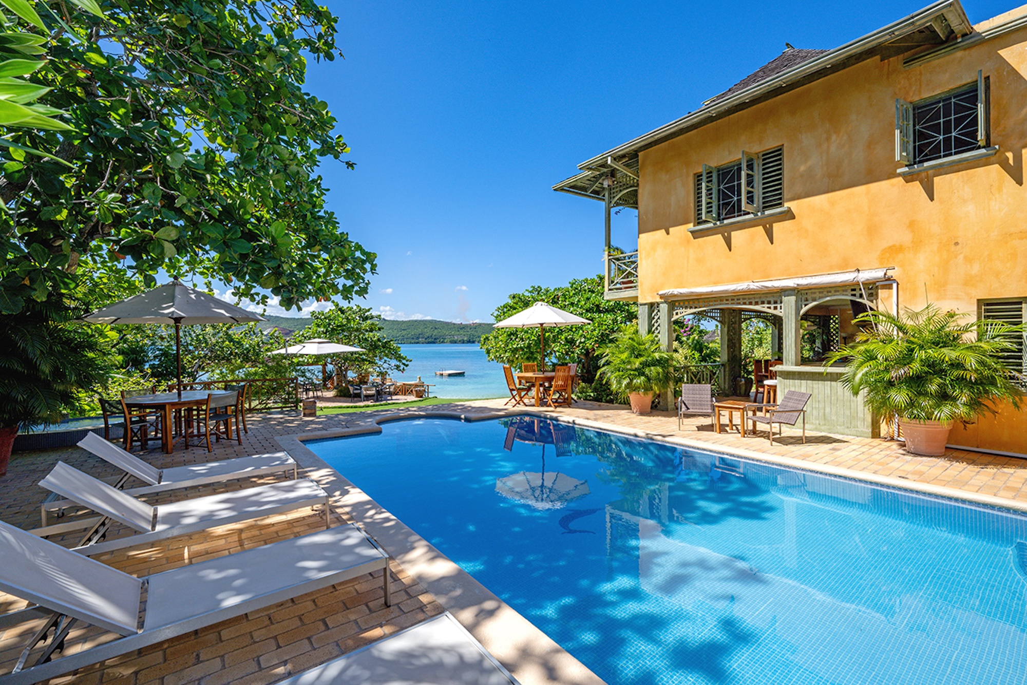 Set on a secluded coral cove, this charming yellow-stone villa gazes out over one of Jamaica’s most beautiful stretches of water, Discovery Bay.