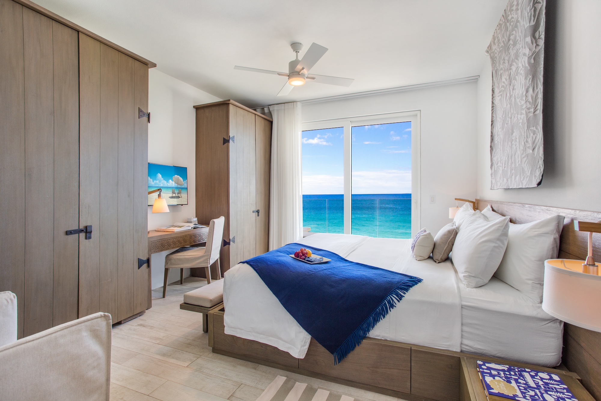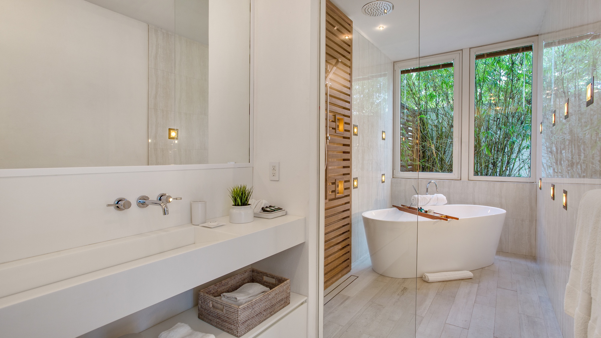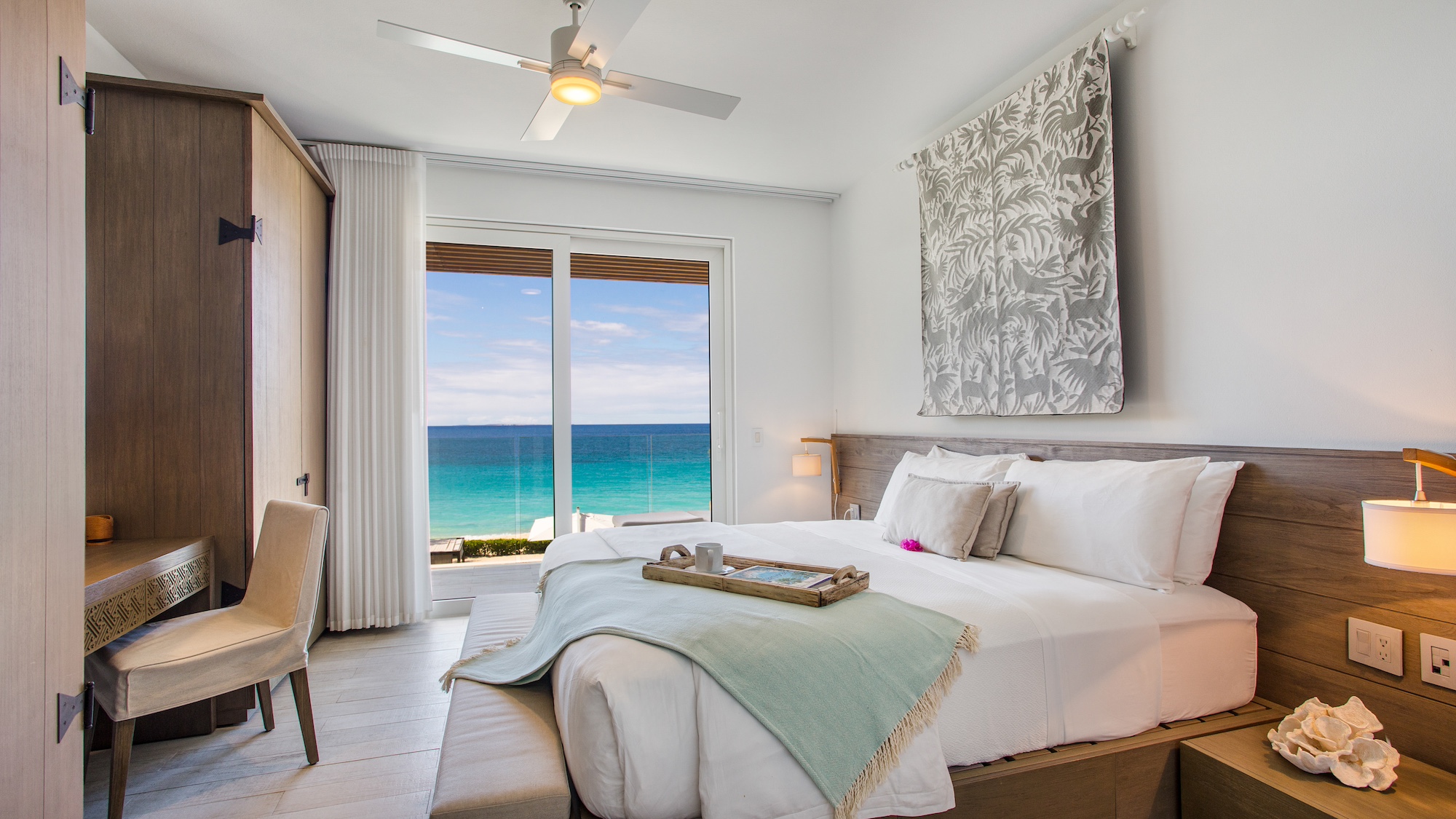 Expansive floor-to-ceiling windows provide stunning views, immersing guests in this exceptional, world-class setting. Enjoy a leisurely stroll to top-notch restaurants and charming beach cafes, or sip a cocktail along a picturesque mile-long beach flanked by 5-star resorts at both ends. Relax on outdoor canopy beds, cool off in the private infinity pool, or unwind in the beachside hot tub.