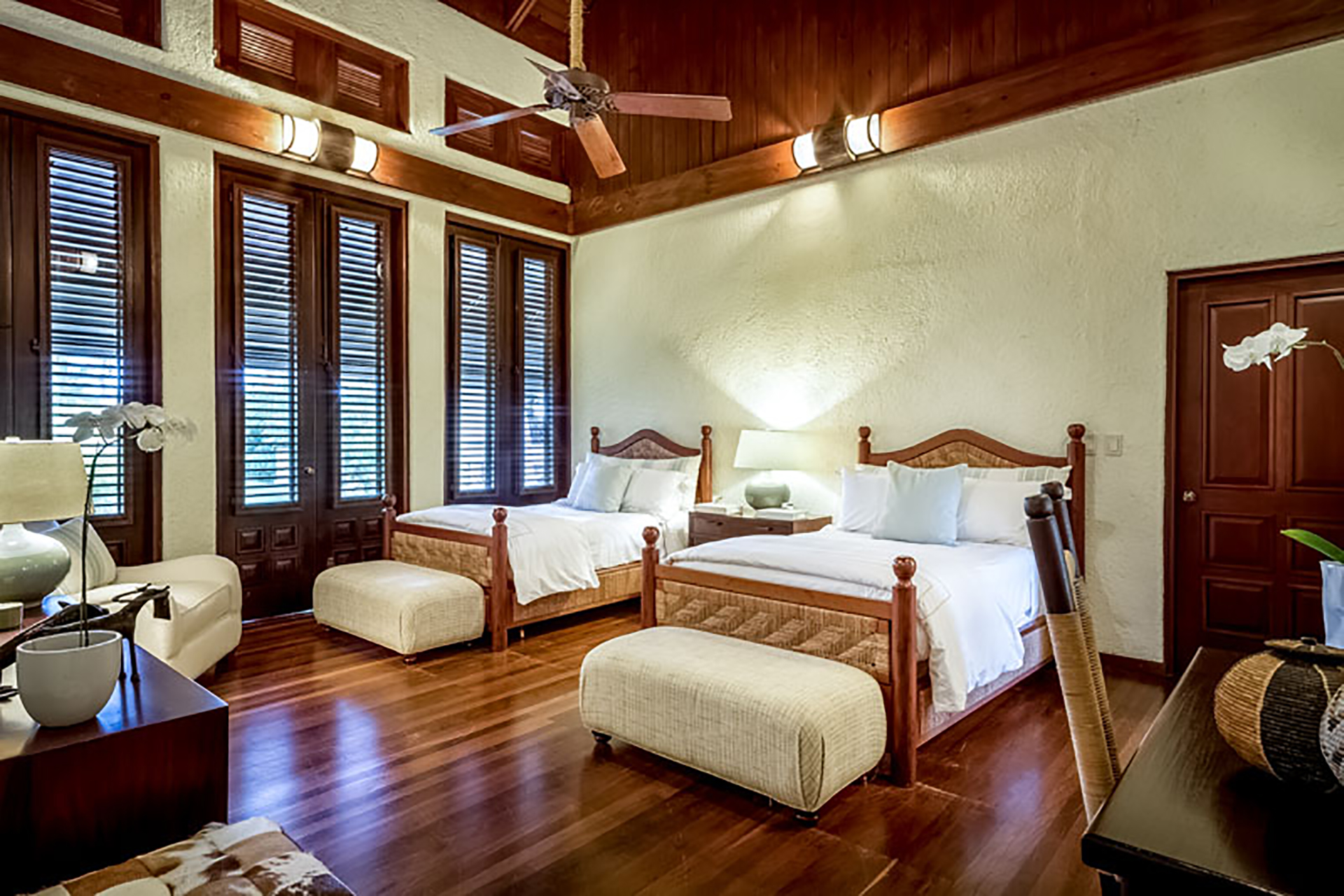 The villa itself measures over one thousand five hundred square meters which makes it a great property for large family gatherings. The bedroom pavilions are divided into two master suites and four guest suites each plus a large children’s bedroom that provide bunk beds, twin beds with a small living area for children to play board and video games. The villa boasts with high ceilings, spacious living and dining areas, and a state-of-the-art kitchen with first class chef and staff. The property also includes its own private beach, pilates equipment gym, a ping pong table, a pickle ball court and a volleyball net court for guest’s enjoyment.