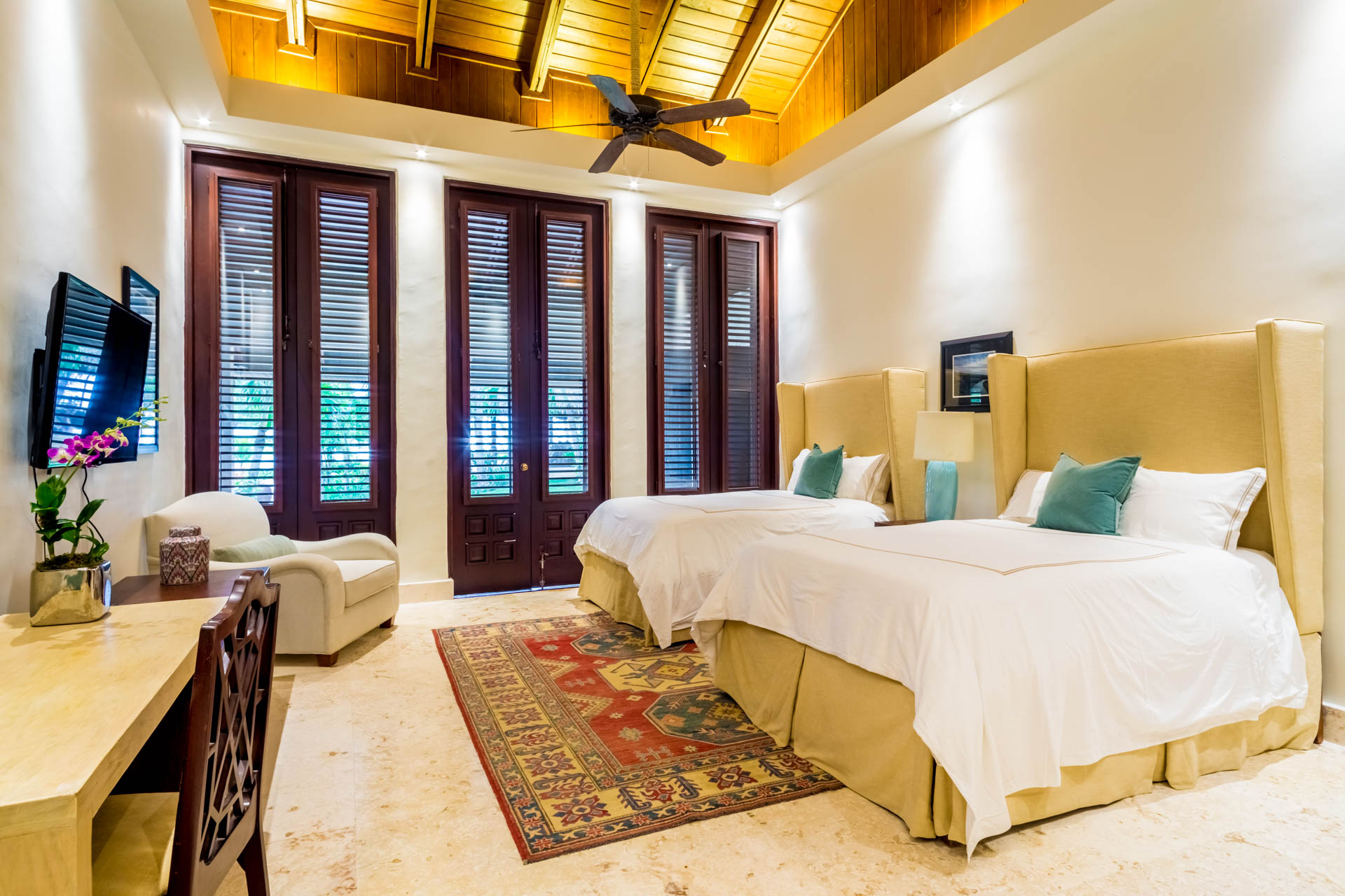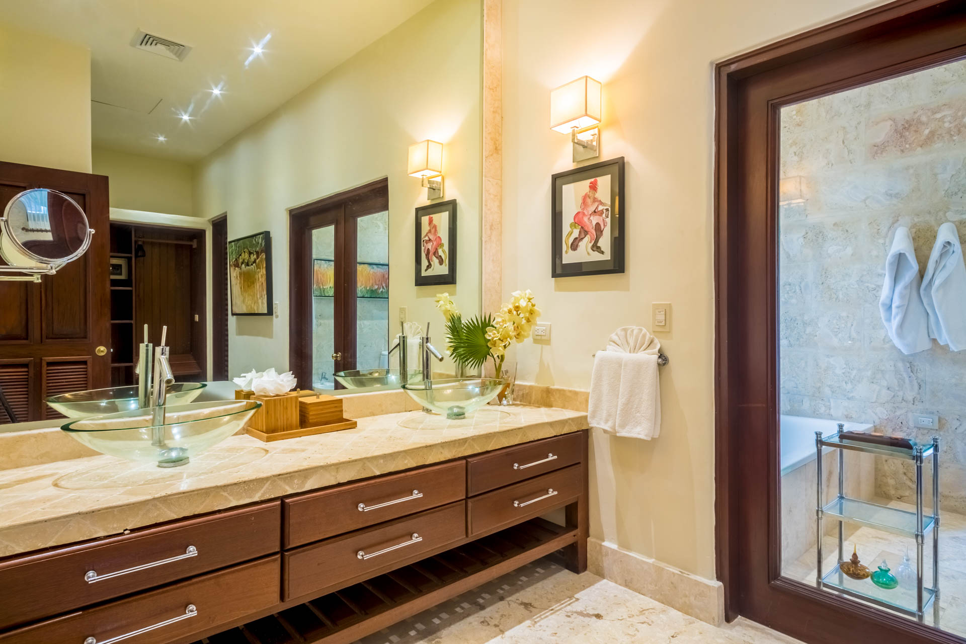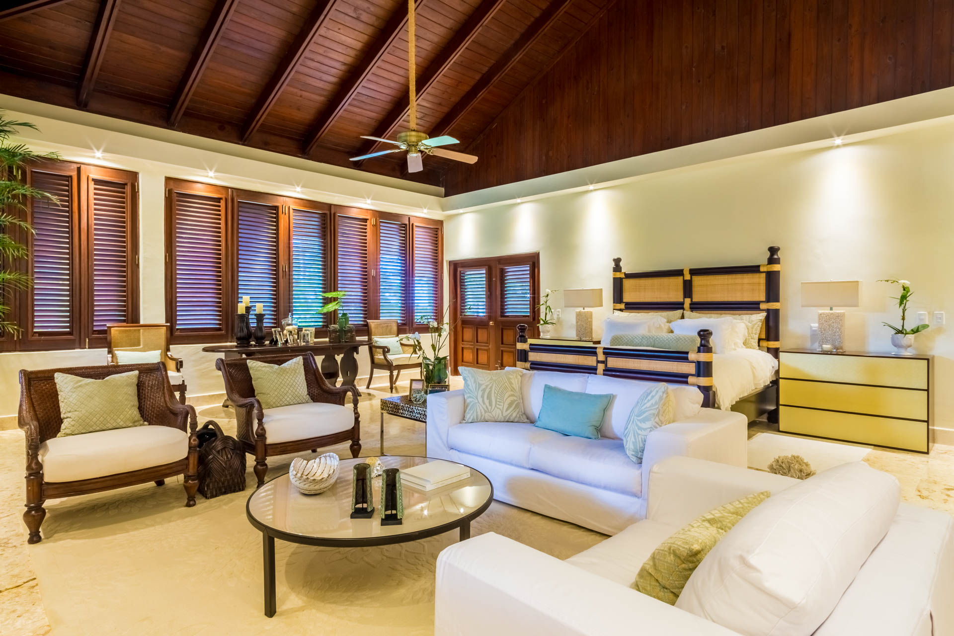 This secluded eight bedroom villa is divided in three living pavilions that open to lush gardens and breathtaking views of Minitas Bay, Catalina Island and the Caribbean Sea. The grounds are impressive, spanning over nine thousand five hundred square meters, it is one of the most private and expansive properties in Casa de Campo Resort.