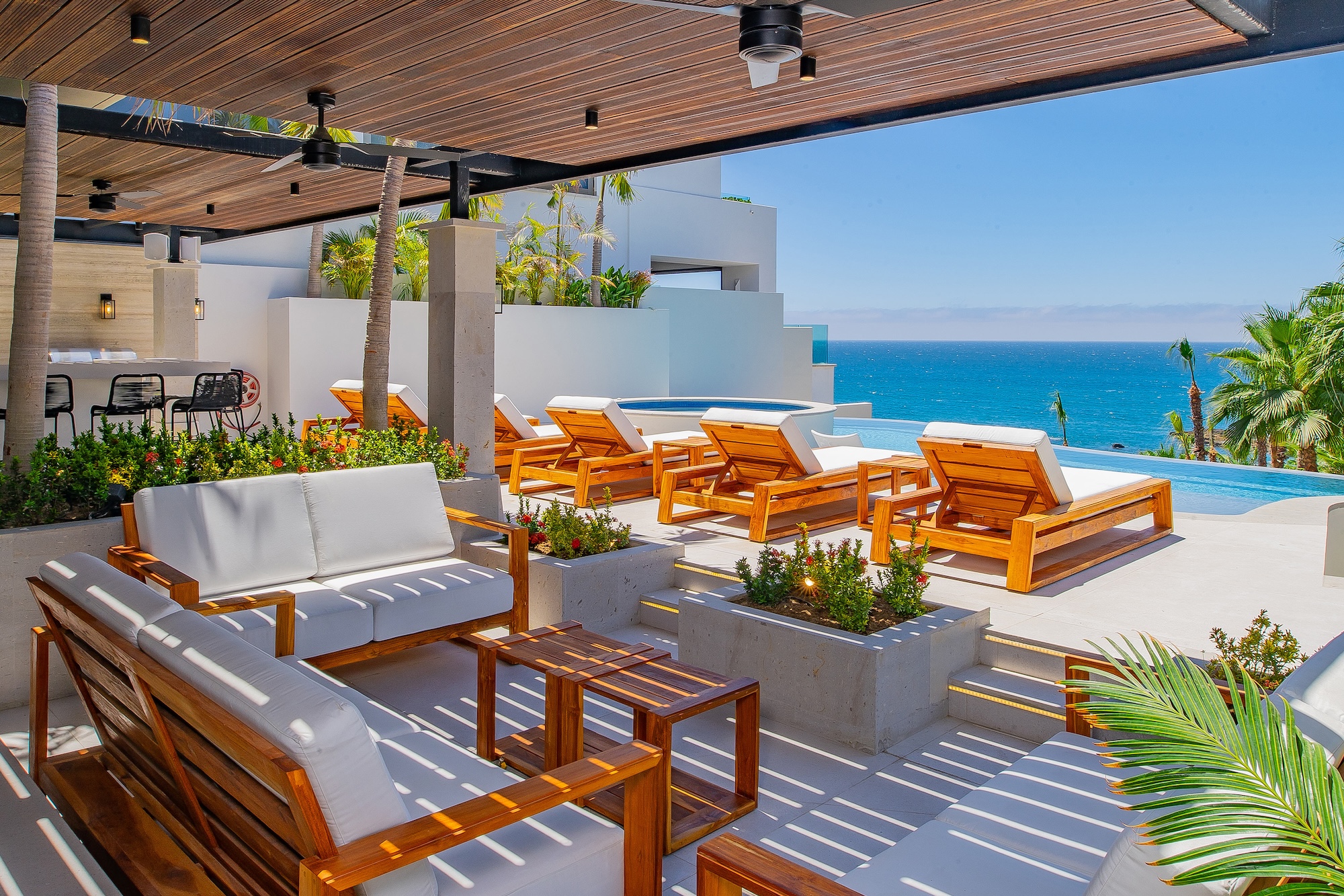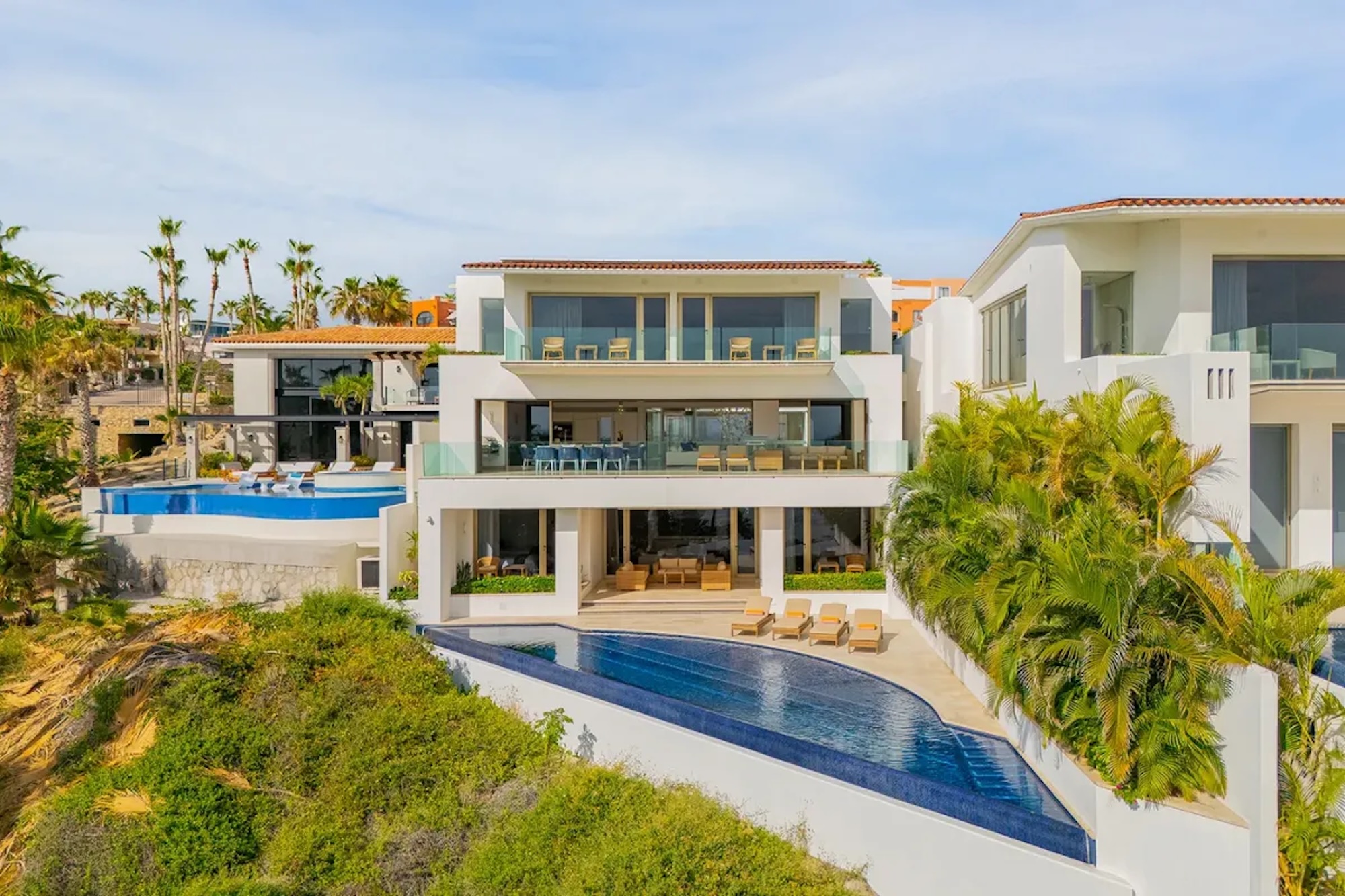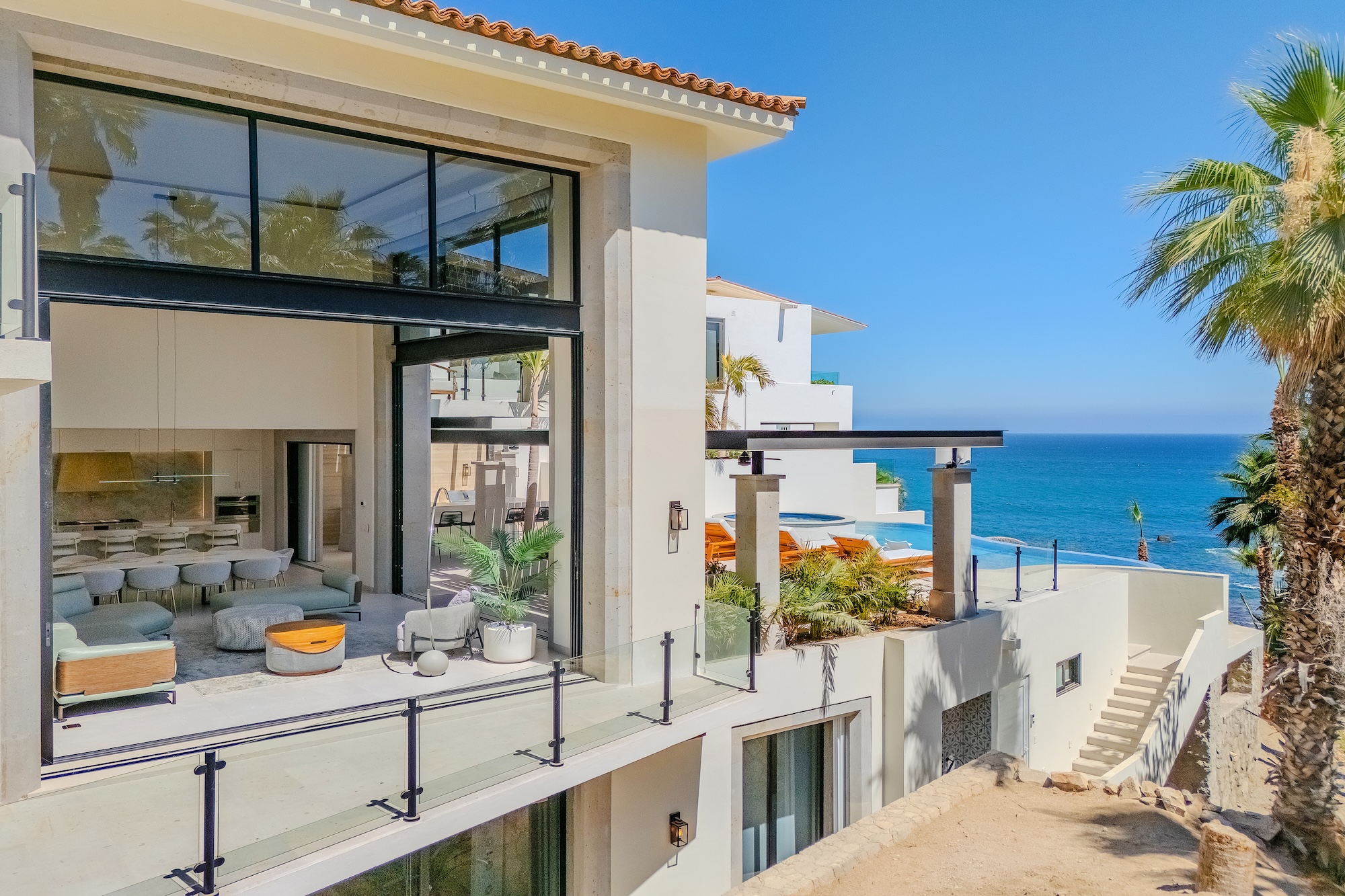 Villa Palma exudes a warm, contemporary coastal feel, thoughtfully designed to foster relaxation and connection. A courtyard anchors the home, while inviting living areas and ocean-view suites provide a calm, elegant retreat. Next door, Villa Mareas brings a bold, modern edge with striking architecture, floor-to-ceiling glass, and a true resort-style ambiance. Highlights include an infinity-edge pool, a private spa with steam room, cold plunge, and Jacuzzi, as well as cutting-edge fitness and entertainment spaces. Together, the villas offer a harmonious blend of understated comfort and elevated luxury.