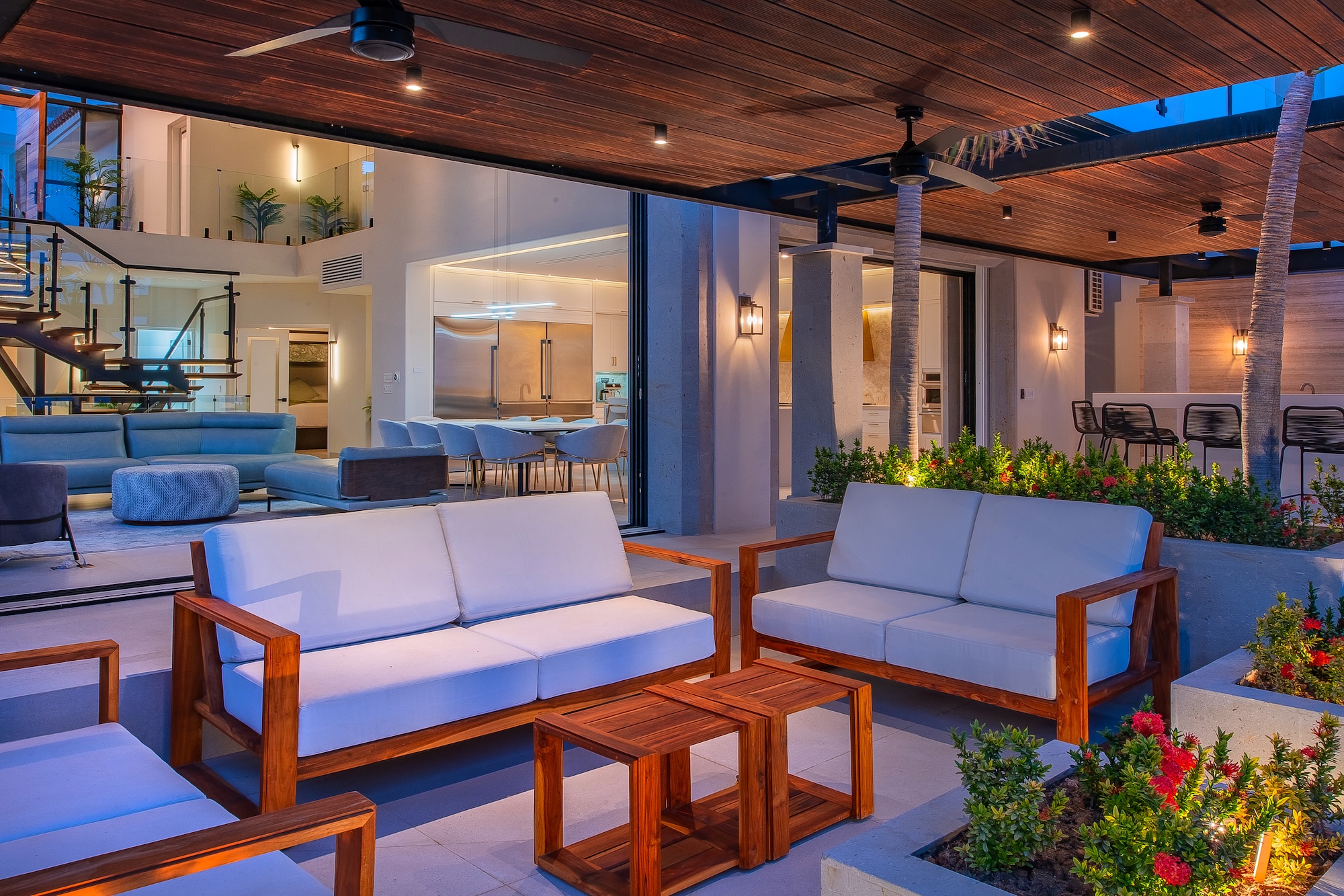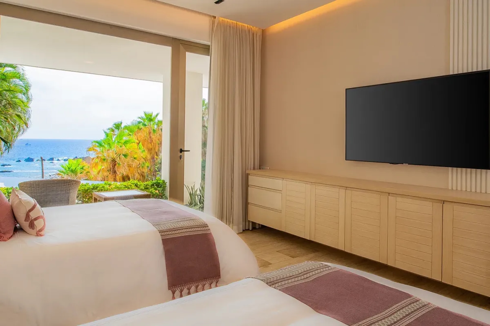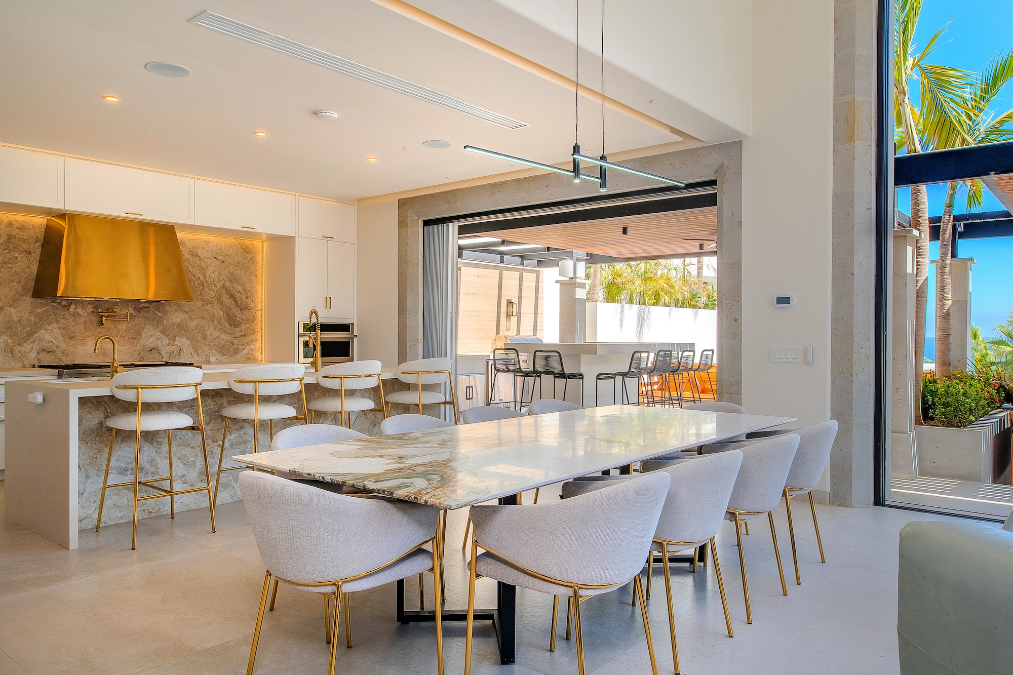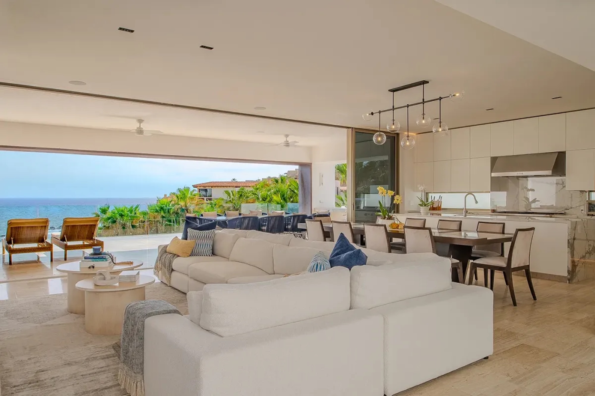 Villa Palma exudes a warm, contemporary coastal feel, thoughtfully designed to foster relaxation and connection. A courtyard anchors the home, while inviting living areas and ocean-view suites provide a calm, elegant retreat. Next door, Villa Mareas brings a bold, modern edge with striking architecture, floor-to-ceiling glass, and a true resort-style ambiance. Highlights include an infinity-edge pool, a private spa with steam room, cold plunge, and Jacuzzi, as well as cutting-edge fitness and entertainment spaces. Together, the villas offer a harmonious blend of understated comfort and elevated luxury.