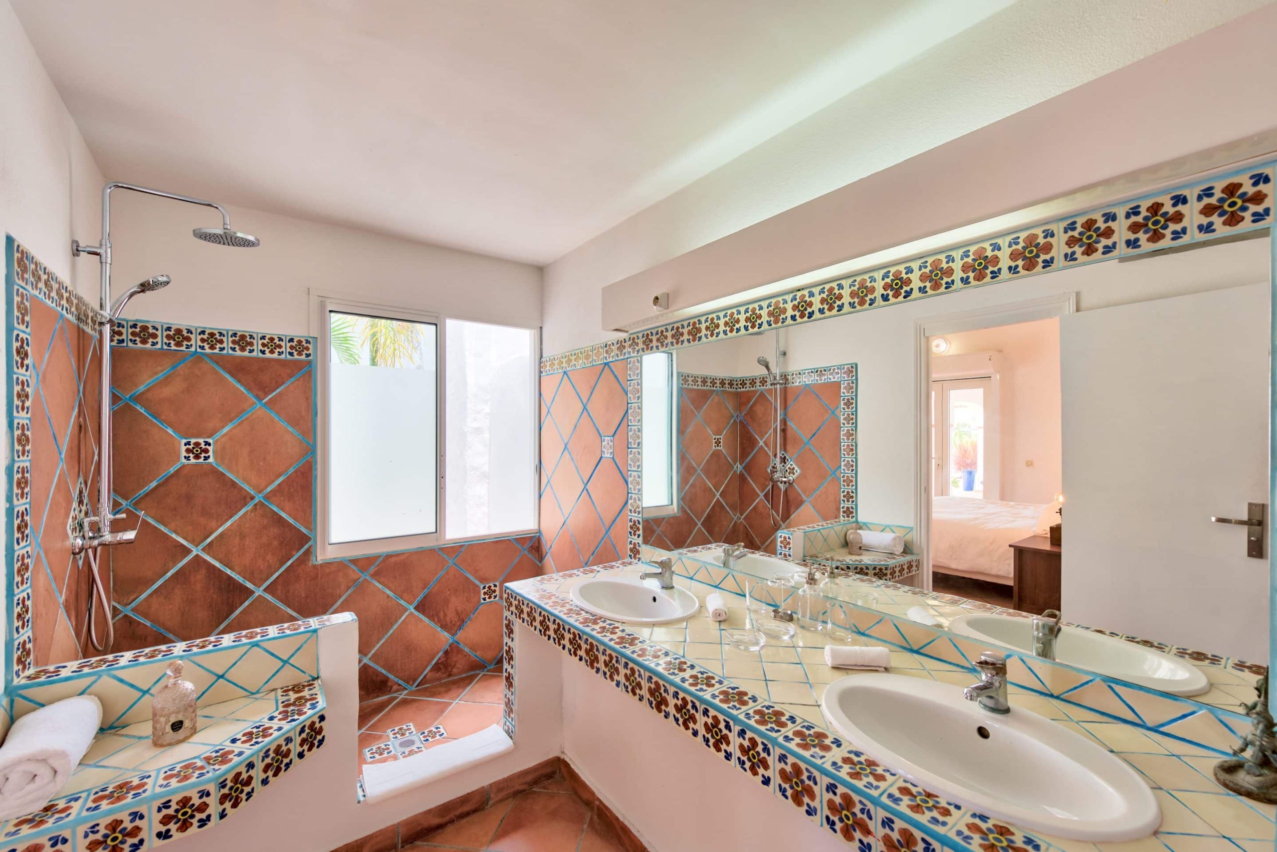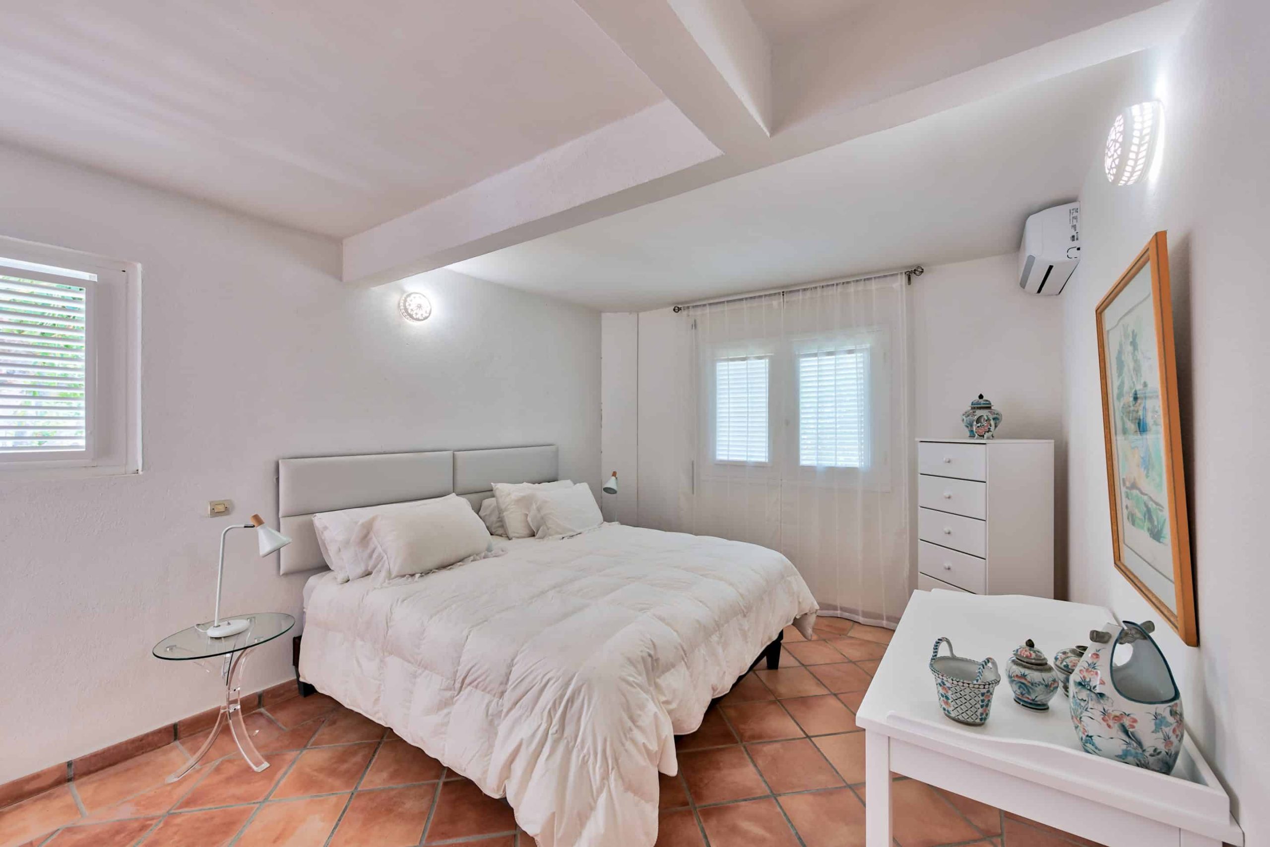 Just off the living area is a fully-equipped kitchen and breakfast dining area. 3 bedrooms with their en suite bathrooms are located on the pool level with fabulous ocean views and direct access to the pool terrace while the 2 remaining bedrooms with their en suite bathrooms are on the lower level.