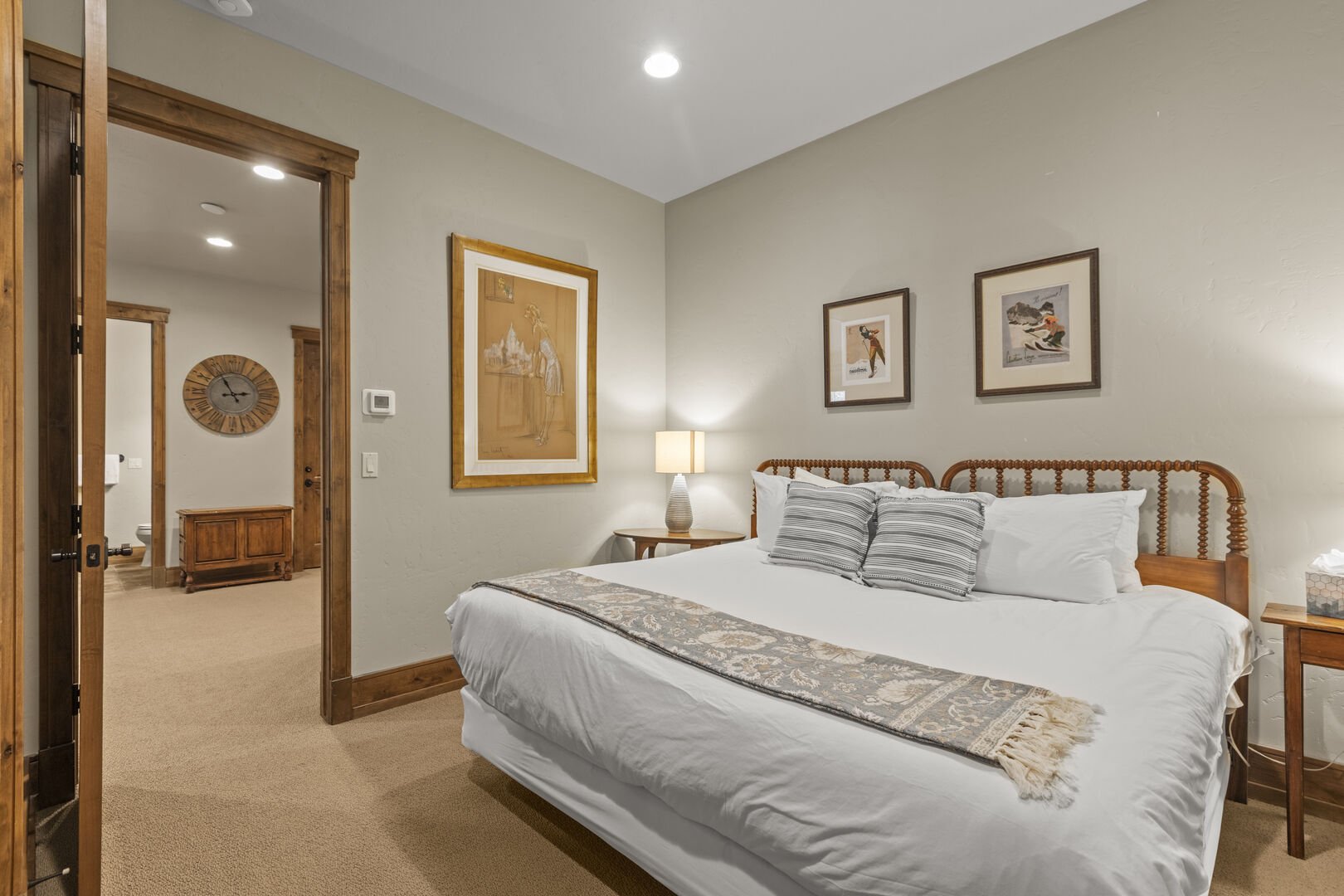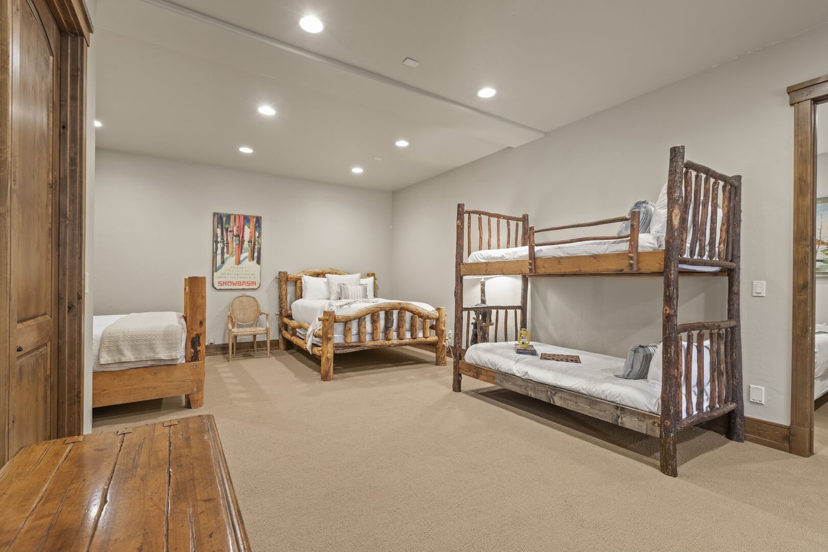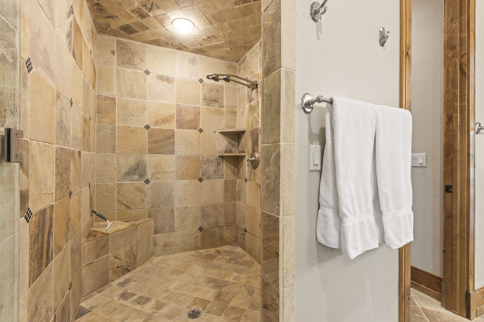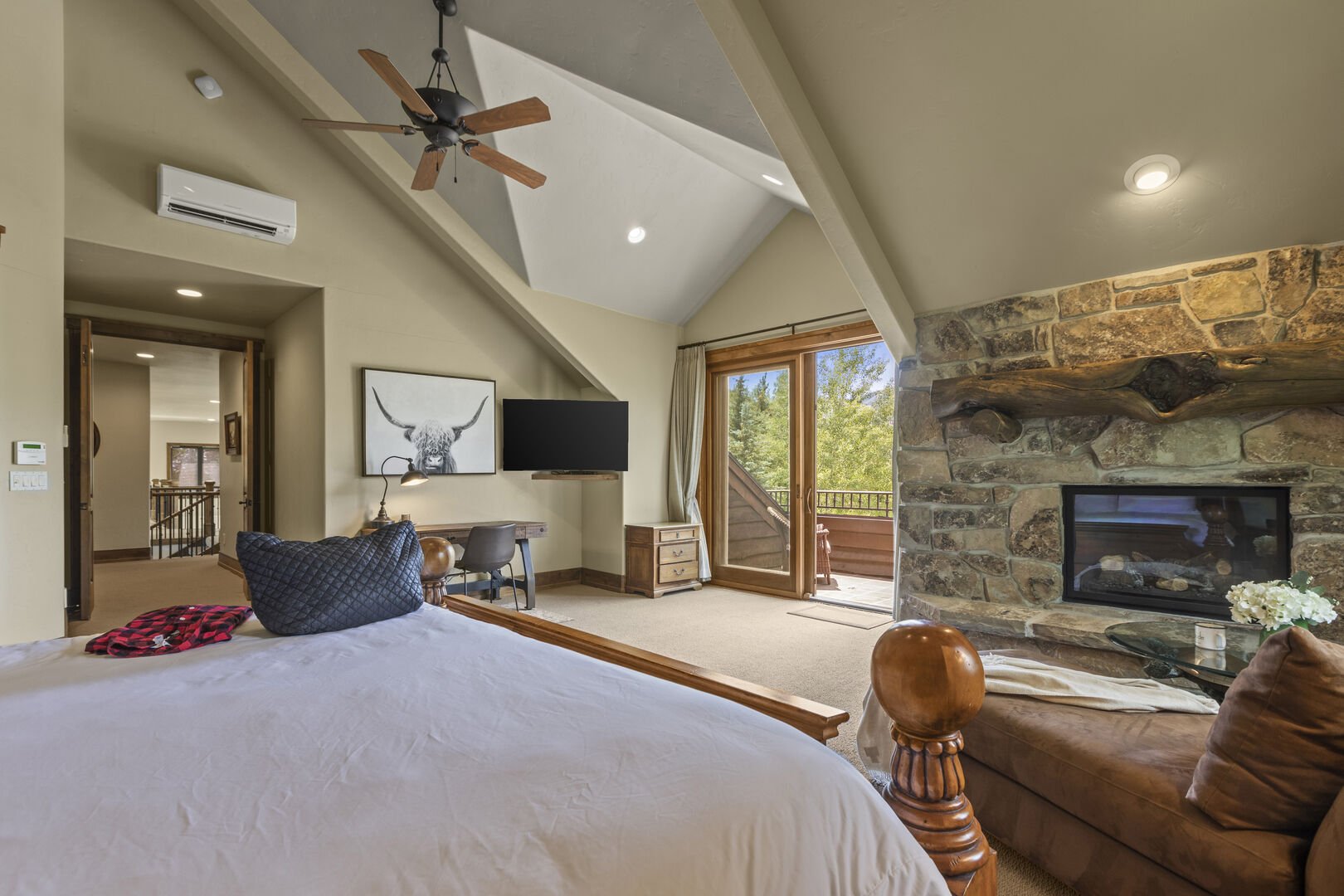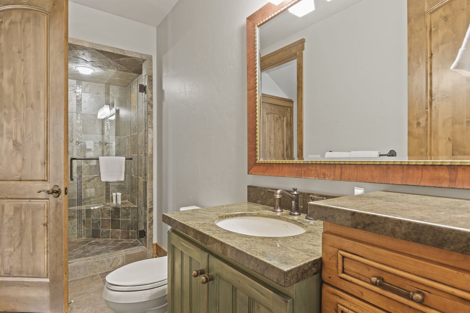 Each of the five bedrooms has been designed to offer serenity and comfort, creating an atmosphere of calm after a day in the mountains. Whether you prefer a spacious room with a king bed and flagstone fireplace, a cozy space with balcony views of the slopes, or a suite with a luxurious ensuite bathroom, there’s something here for everyone. It’s an ideal layout for families, groups of friends, and corporate retreats alike.
